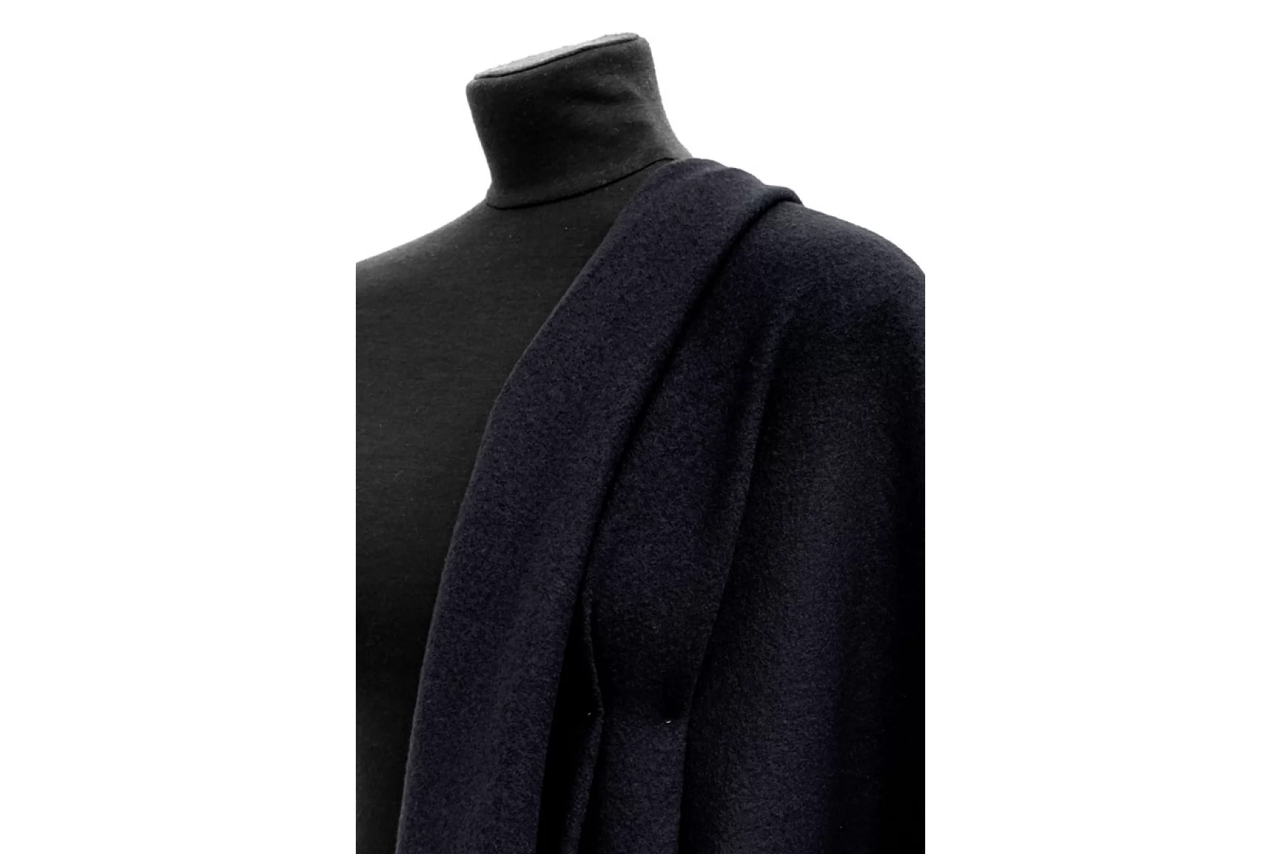 Шикарный пальтовый шерстяной лоден иссиня-черного оттенка. Тактильно сухой, гладкий, мягкий и не колется. С красивым лоском. Растяжим за счет плетения. Плотненький, около 1-1,5 мм толщиной. Не просвечивает. Слегка сминается, но восстанавливается. Неплохо держит форму и складки, хорошо драпируется. Срезы, как и у любого лодена, не осыпаются. Отличный вариант для пальто, а также пальто-рубашки, жакета и не только. Уход, как за любой шерстью деликатный.