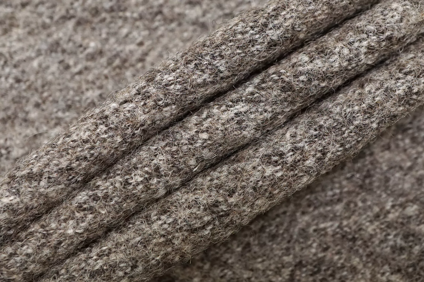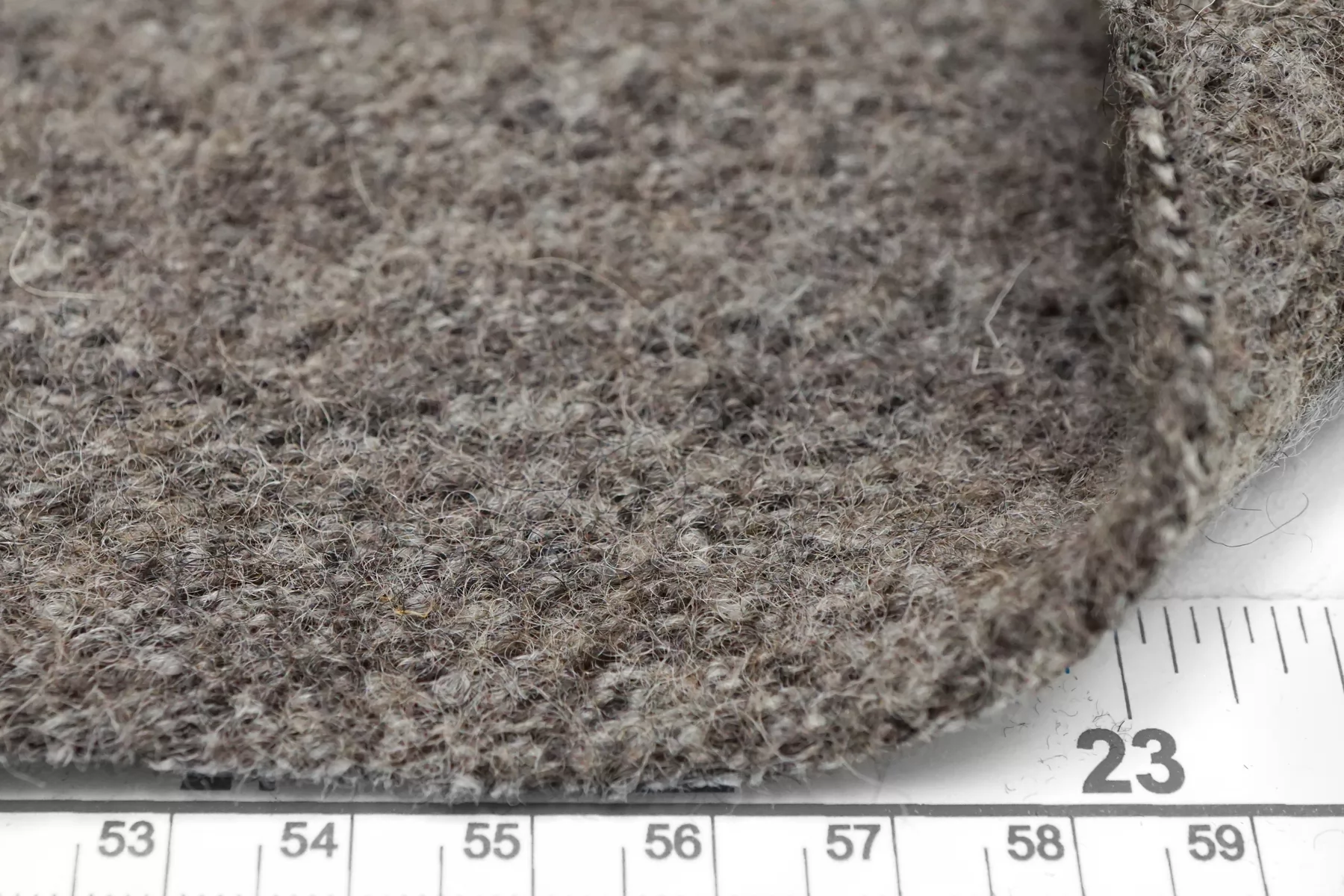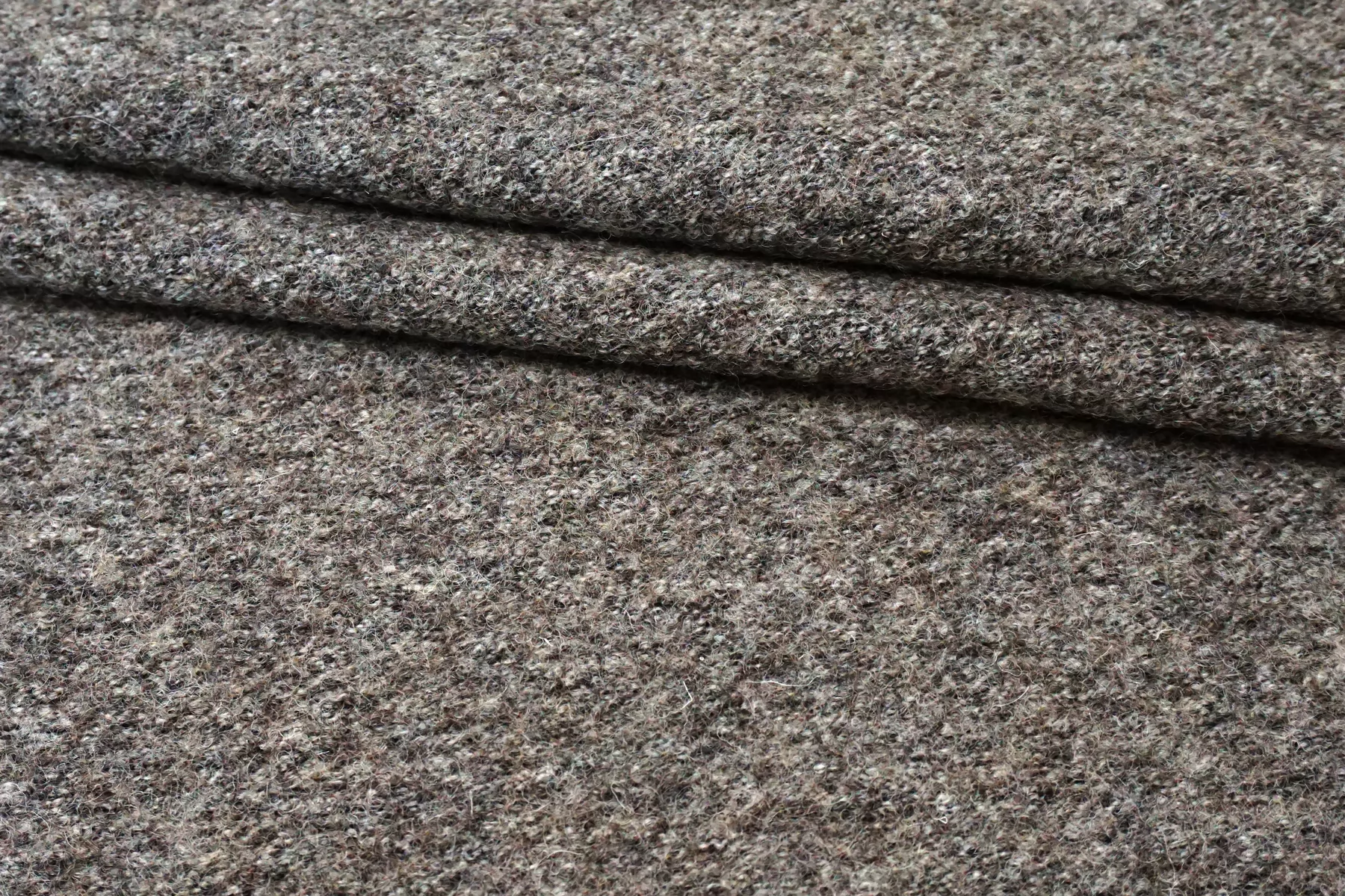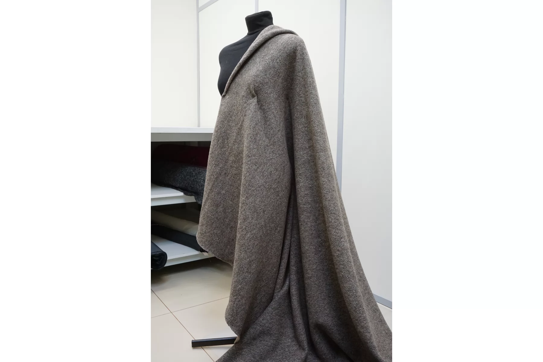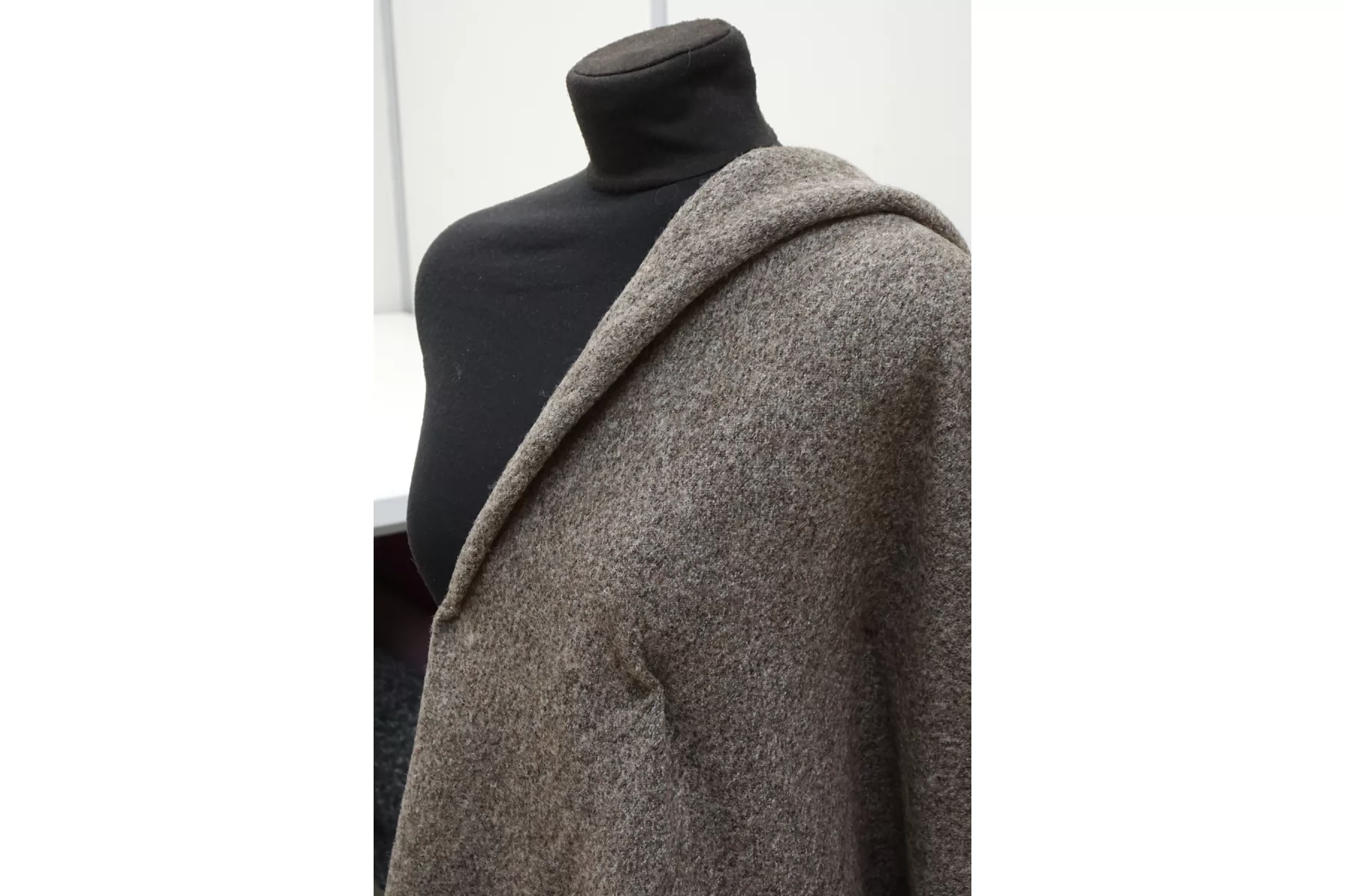 Шерстяной лоден серого цвета с небольшим коричневым подтоном. Тактильно чуть суховат, шерсть ощущается. Растяжим за счет плетения. Плотненький, около 2 мм толщиной. Не просвечивает. Слегка сминается, но восстанавливается. Неплохо держит форму и складки, хорошо драпируется. Срезы, как и у любого лодена, не осыпаются. Отличный вариант для пальто, а также пальто-рубашки. Уход, как за любой шерстью деликатный. После декатировки лоден становится чуть плотнее и даёт усадку.