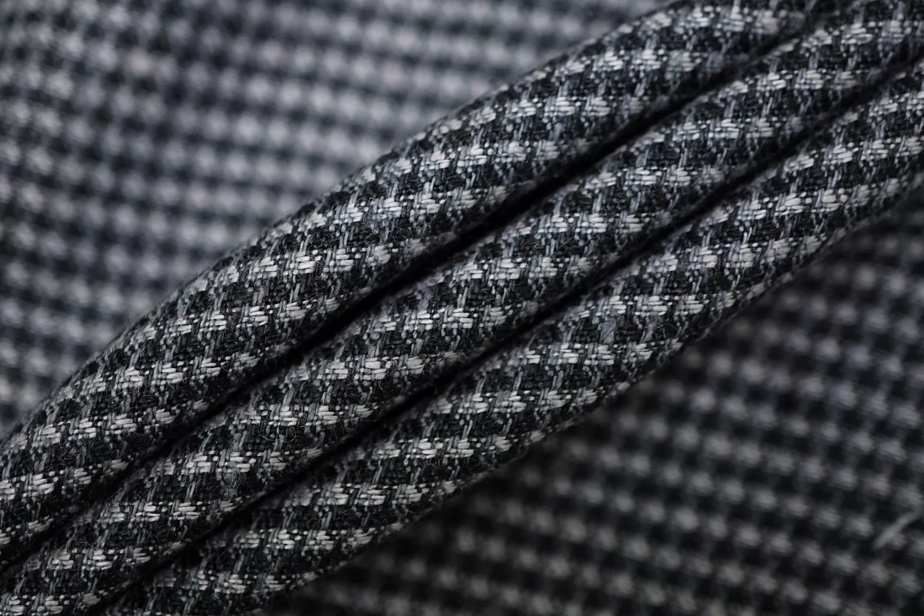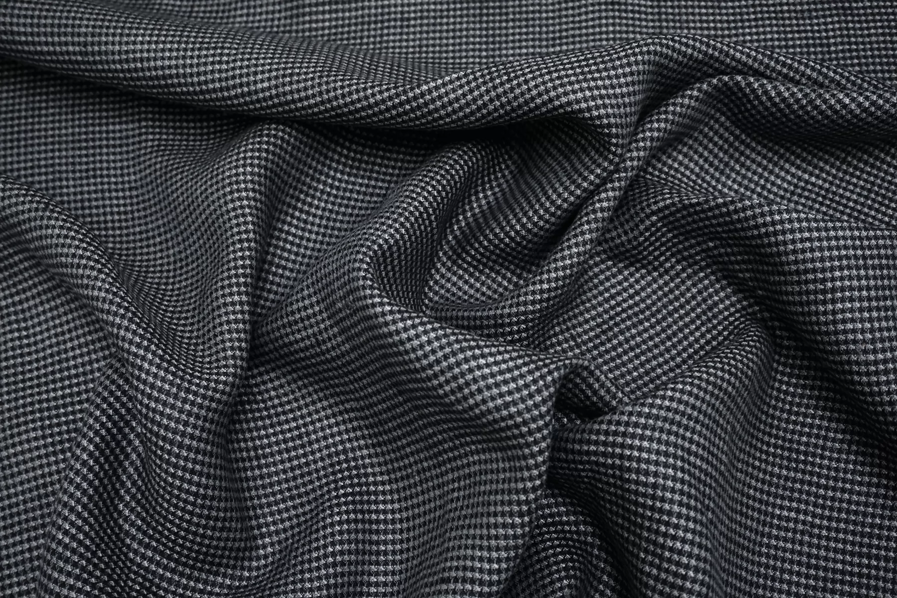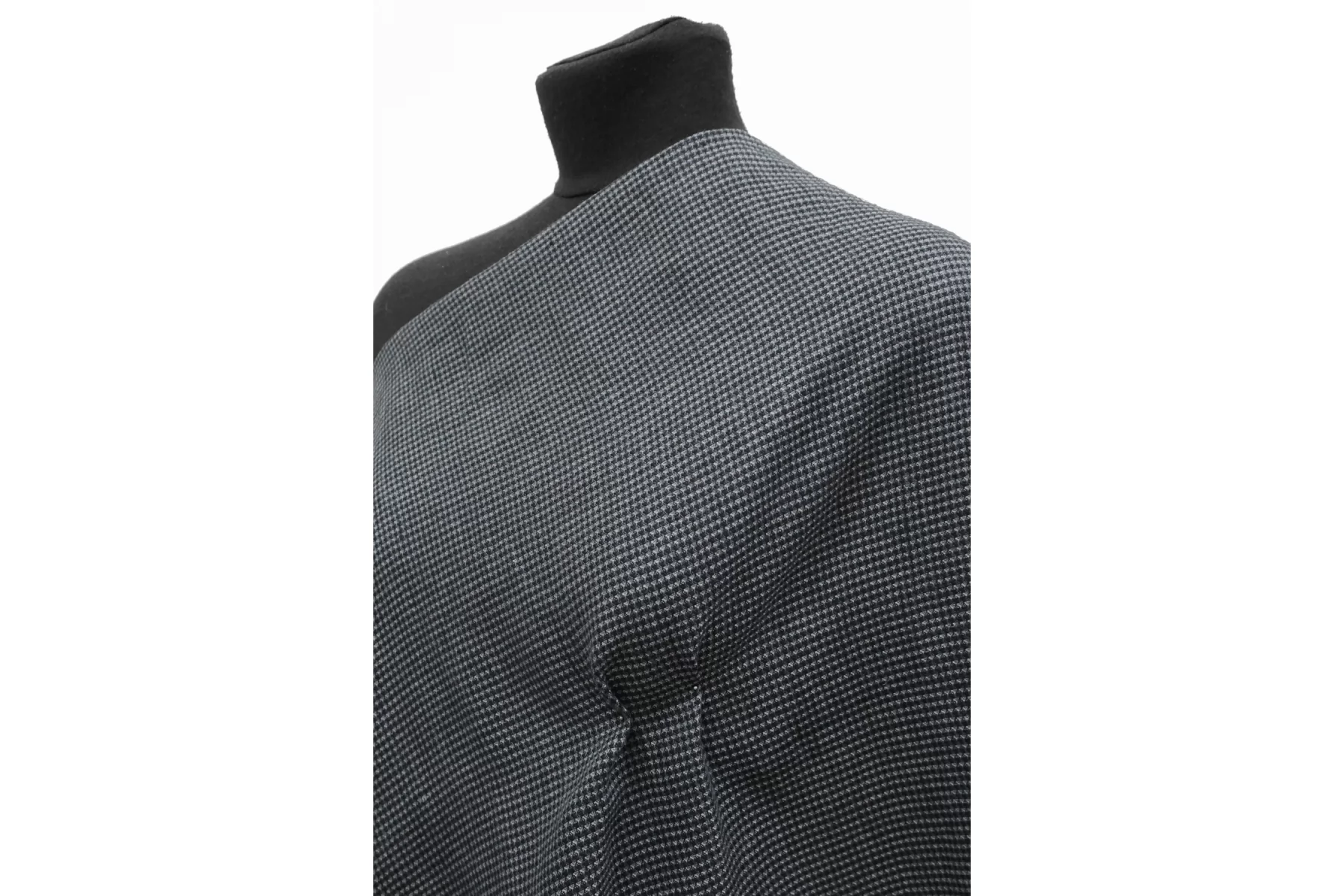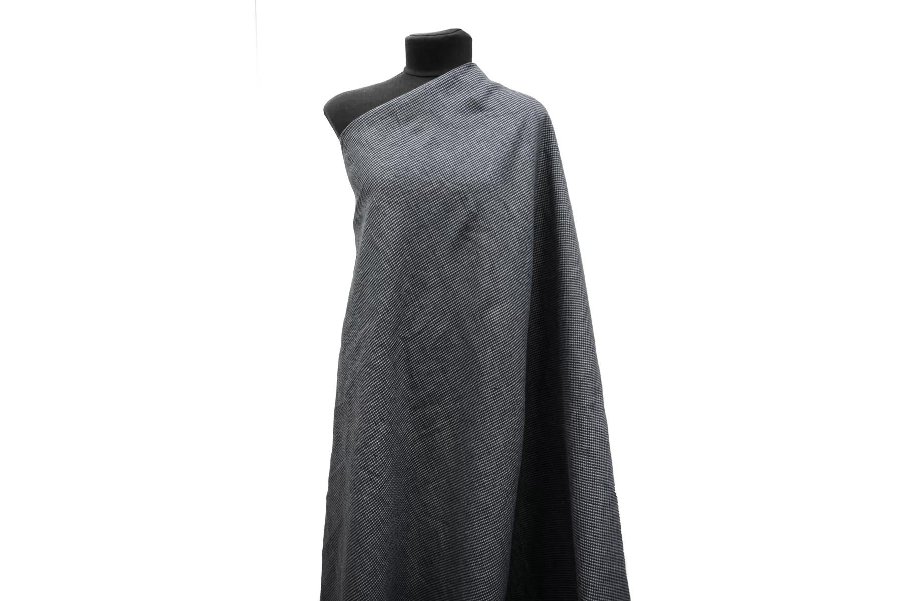 Итальянский лён костюмно-плательной плотности от Thom Brownв сером цвете в мелкую клетку. Материал приятный наощупь, не сухой, сминается. Форму не держит. Пластичный. Не тянется. Не просвечивает. Отличный вариант для летнего изделия - платья, юбки, сарафана, кимоно, рубашки, летнего костюма.