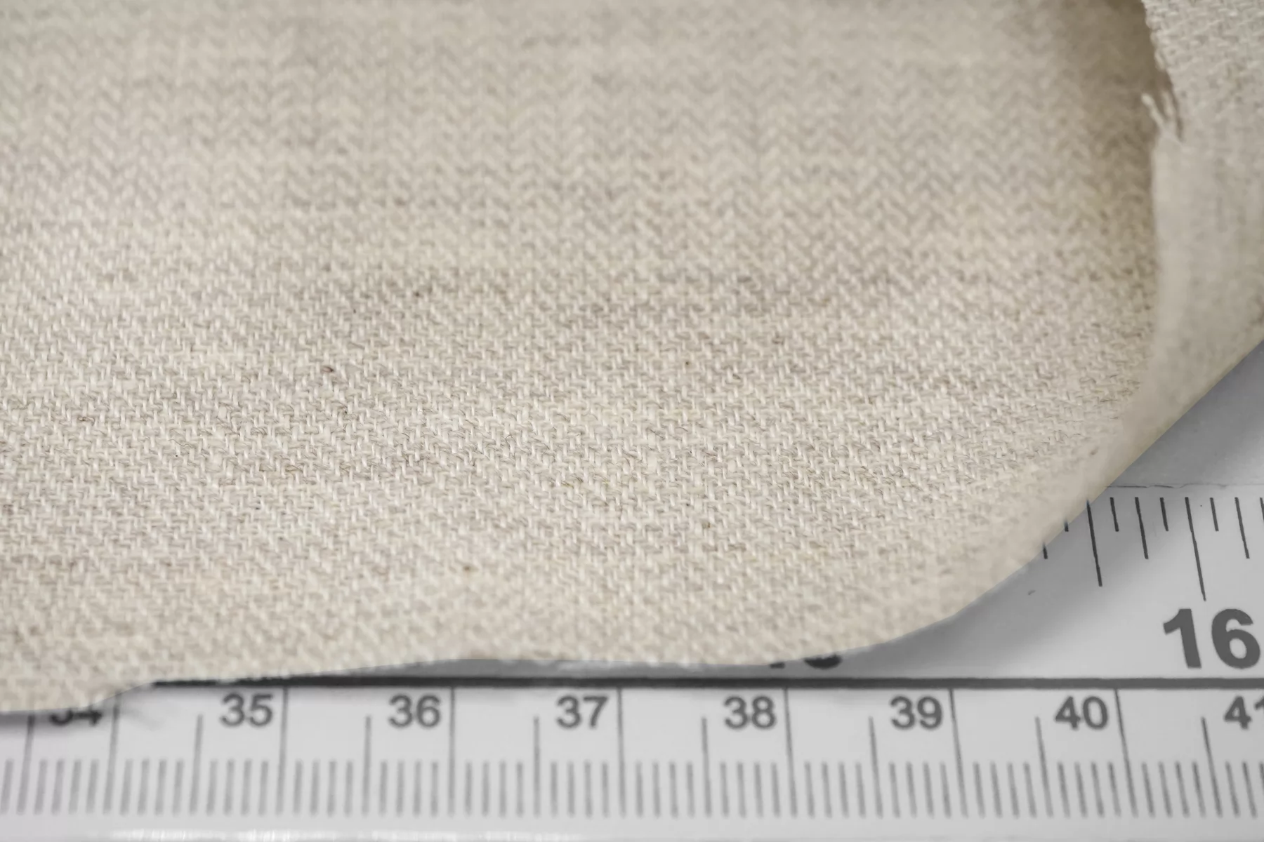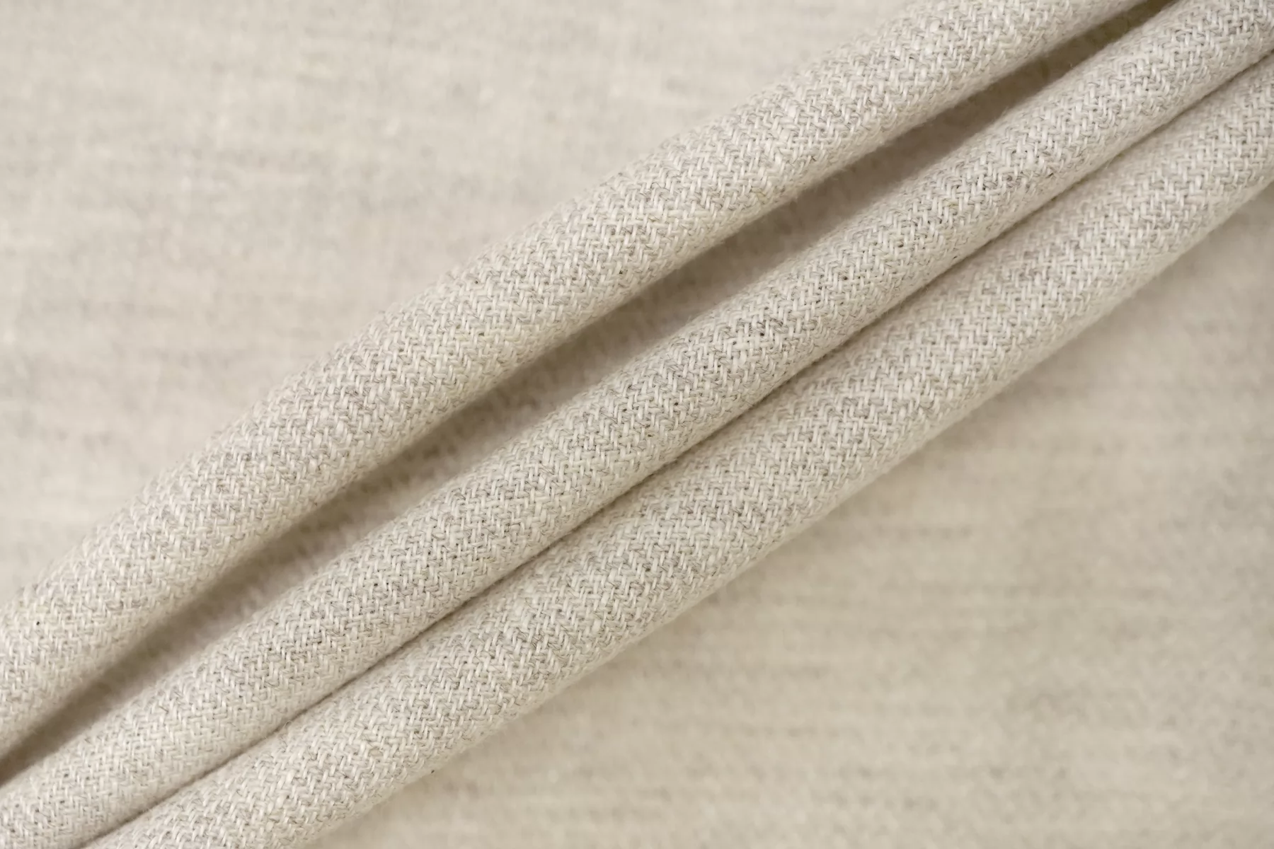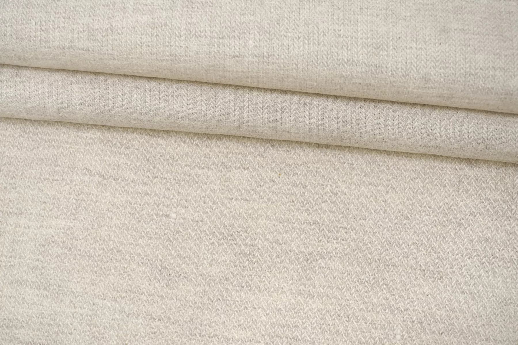 Лён костюмно-плательной плотности, с узором-мелкой ёлочкой, нити белого и бежевого цвета. Средней плотности, не толстый, тактильно приятный, слегка суховатый. Не тянется, умеренно держит форму. Минимально просвечивает силуэт в один слой. Отличный вариант на юбки, сарафаны, рубашки верхнего слоя, костюмы из рубашек с шортами или брюками. При необходимости используйте подкладочный материал.