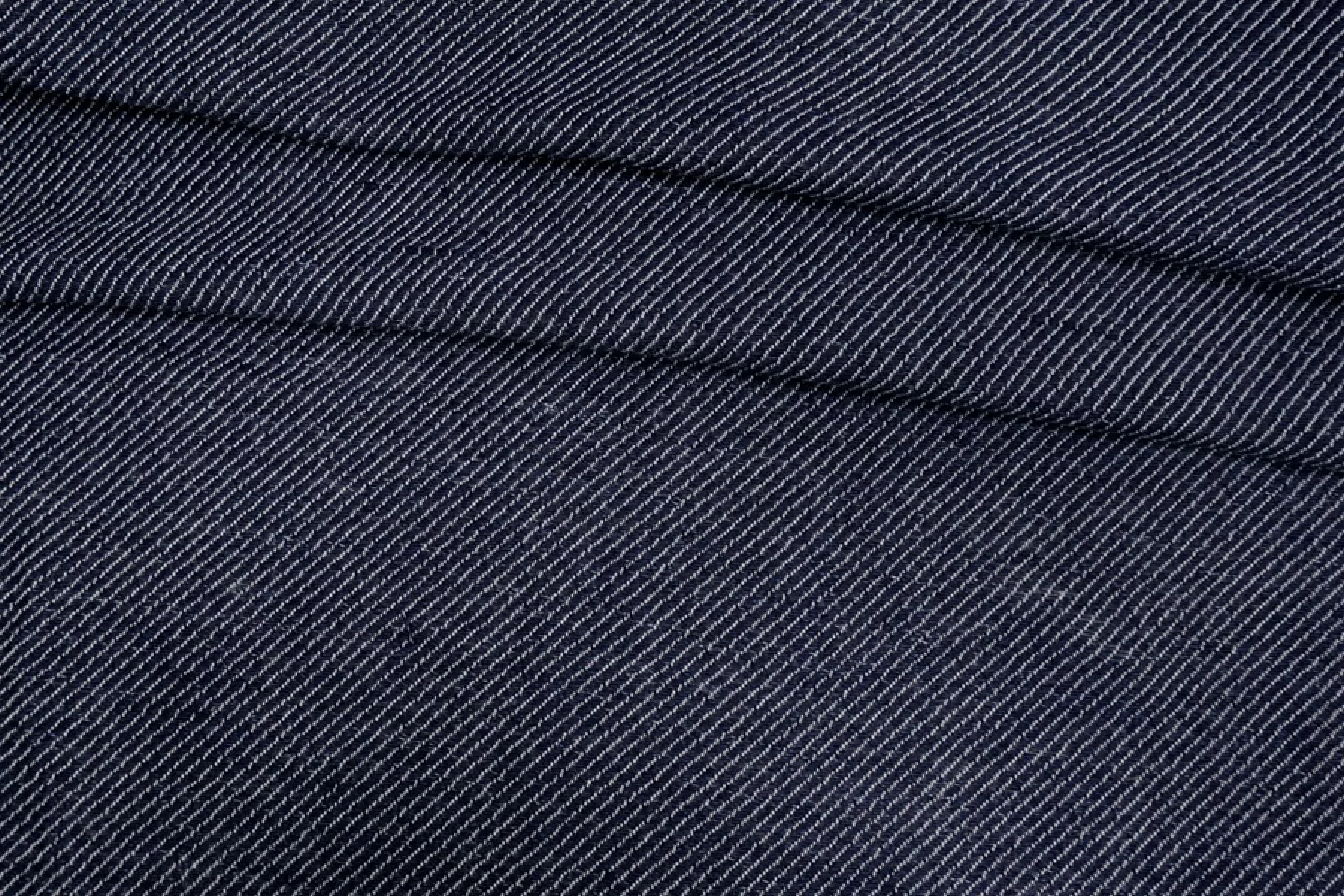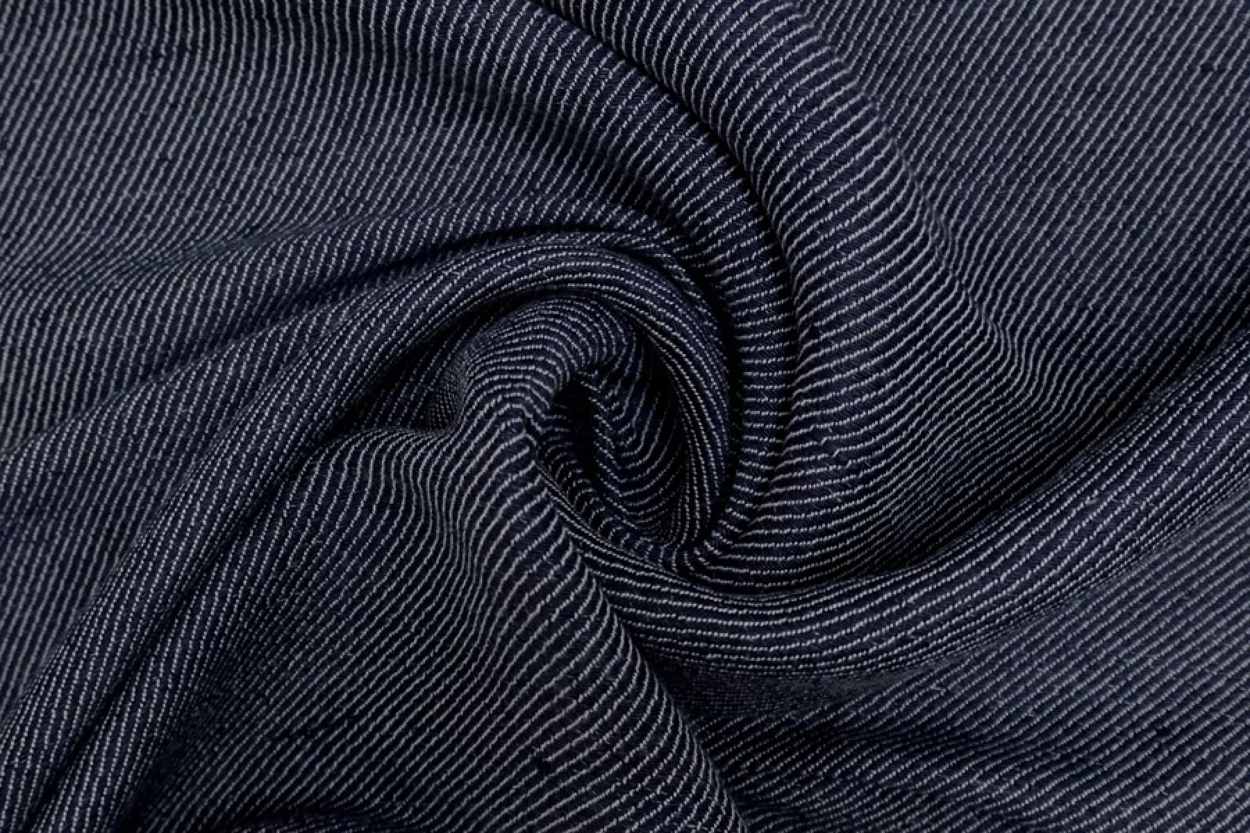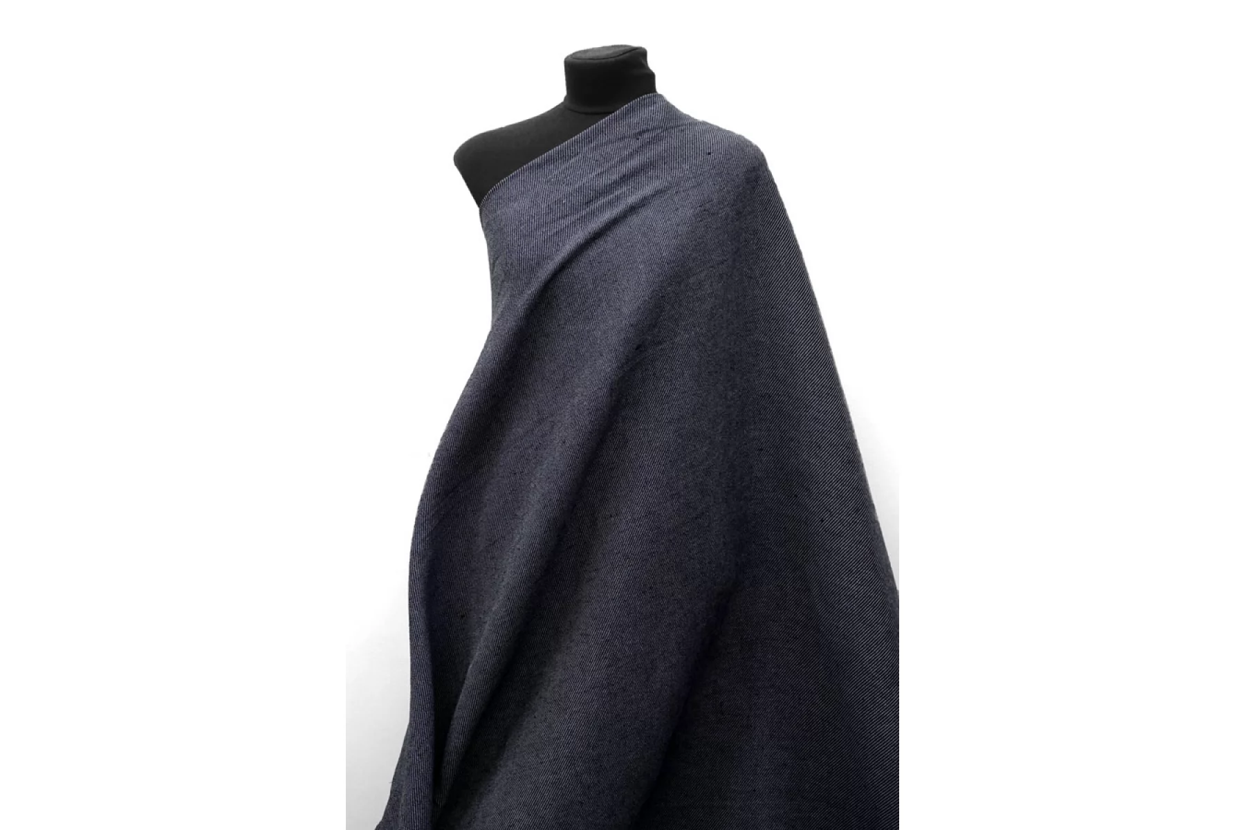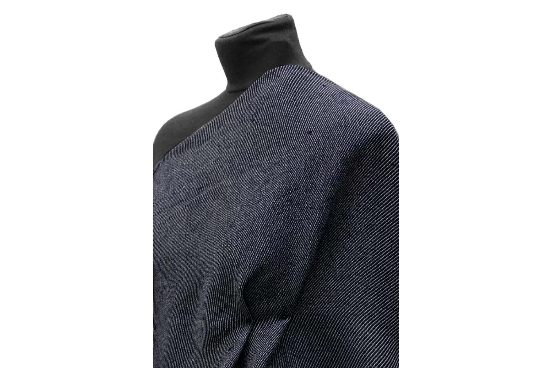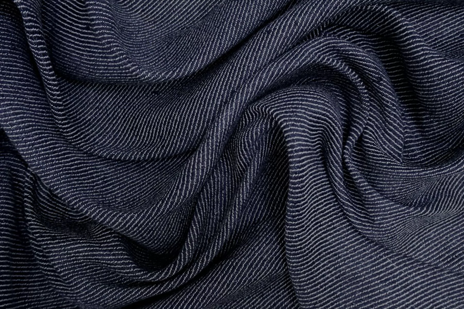 ВНИМАНИЕ!! Часто встречаются уплотнения и зацепки, а также каждые 6 м еде заметные полосы см. на фото и видео. Прекрасный костюмно-плательный лён с добавкой вискозы от бренда Max Mara, диагональное плетение и сочетание темно-синих и белых нитей напоминает джинсу. Не тянется, не просвечивает. Тактильно с лицевой стороны сухость льна ощущается больше, изнанка мягкая. Сминаемость средняя. Пластичная, держит форму, образовывает округлые складки. Вариант на летние костюмы, платья, юбки и не только.