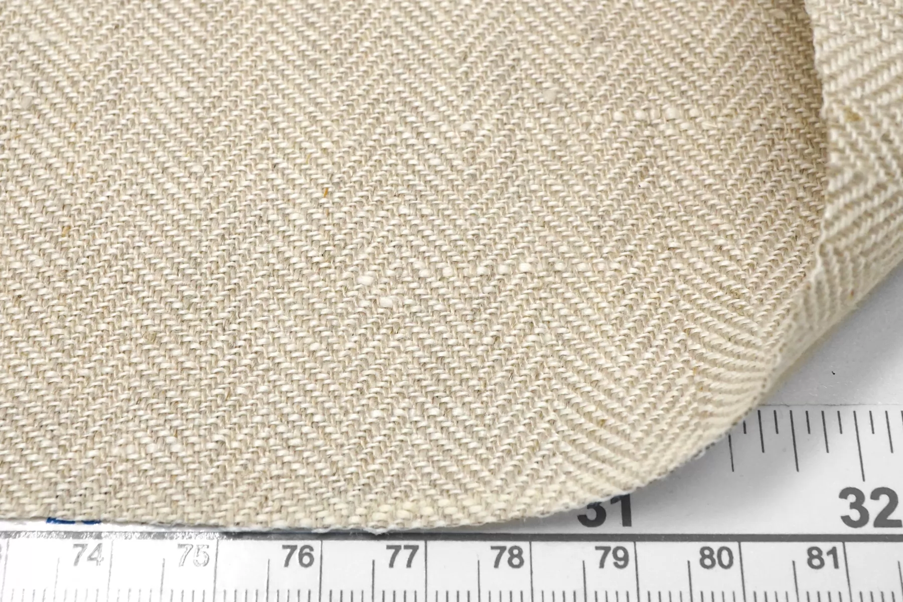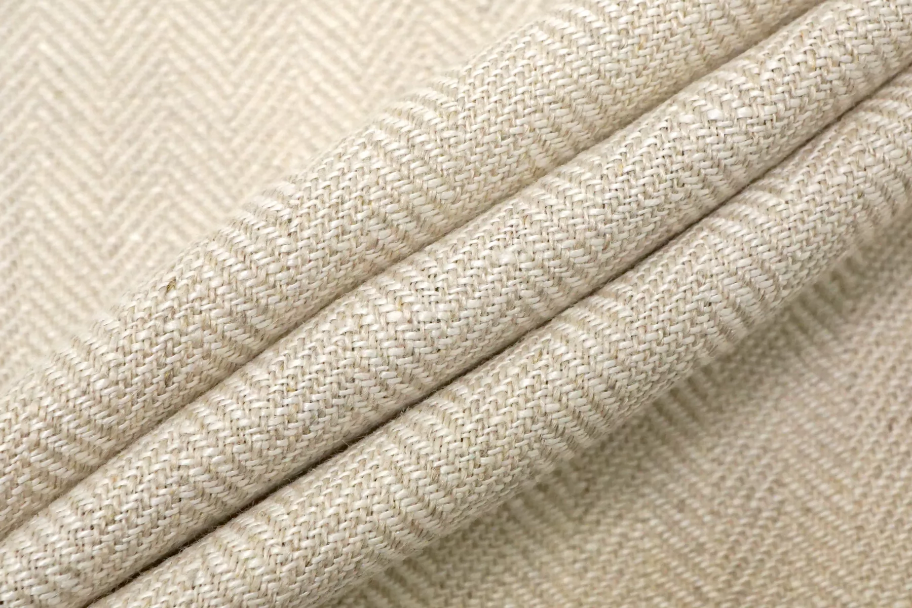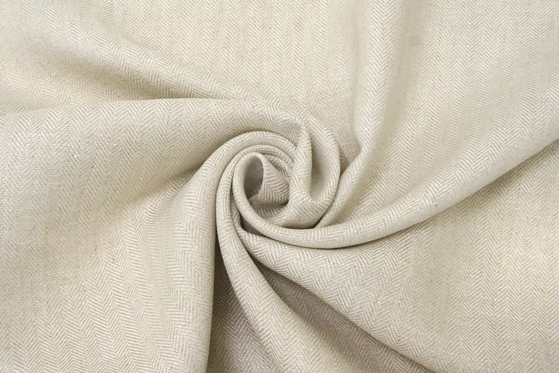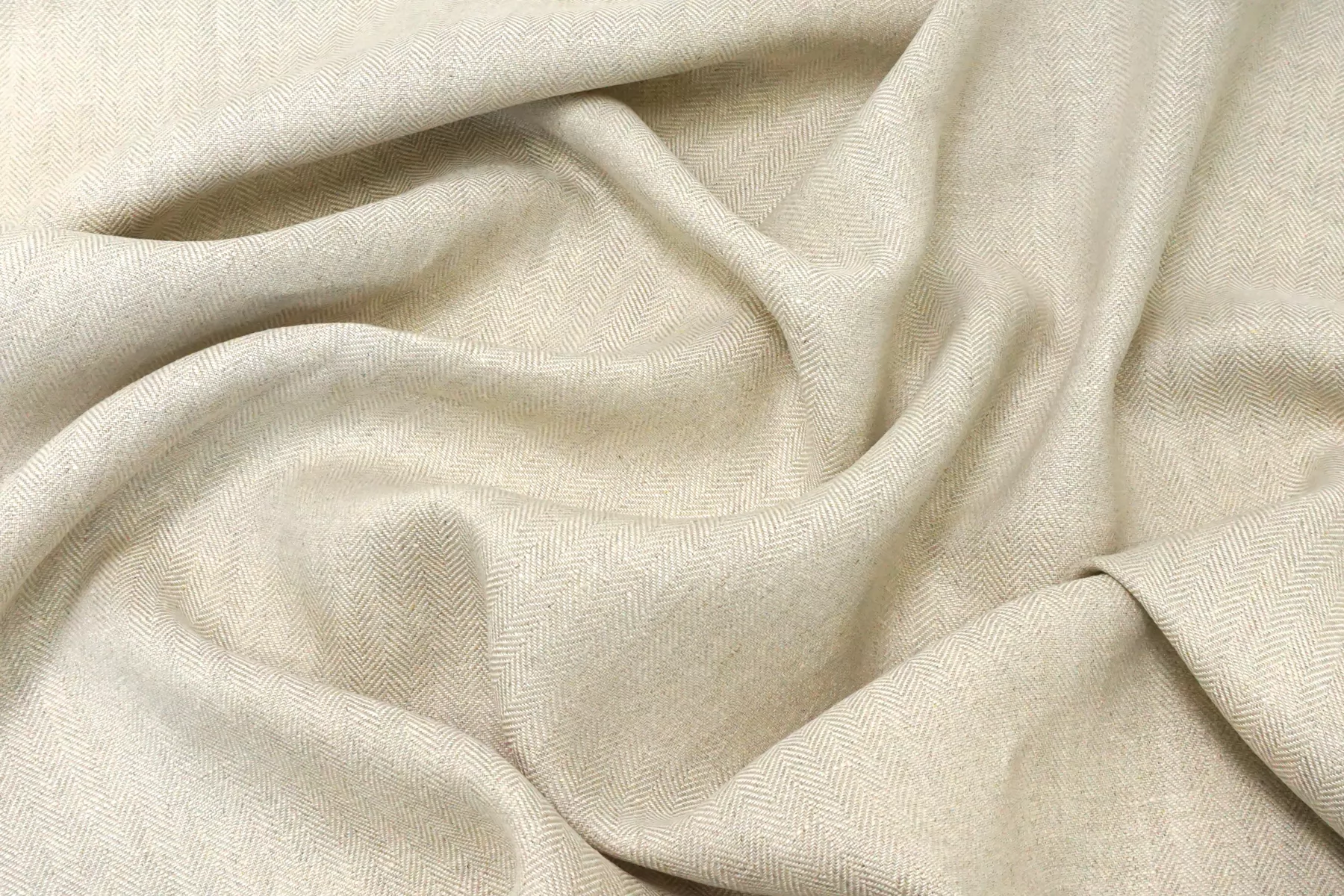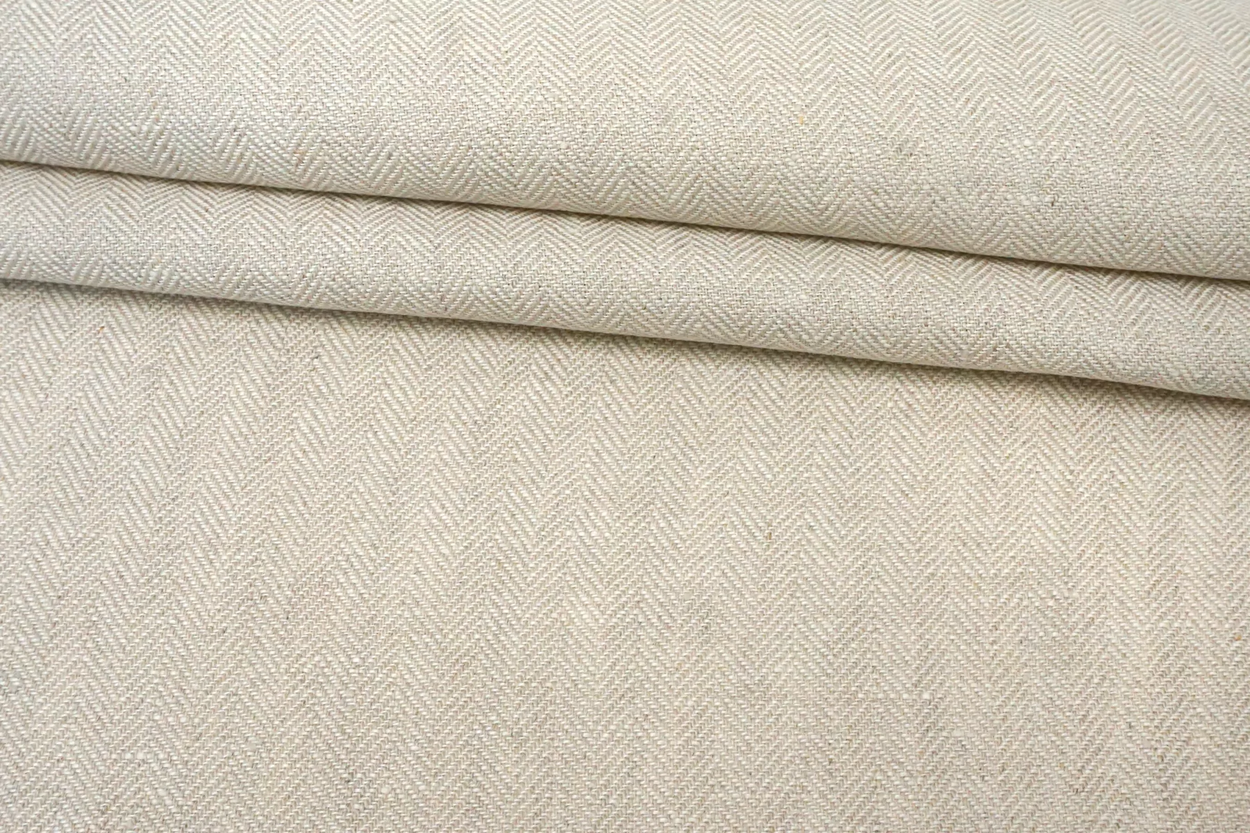 Лён костюмной плотности, с узором-ёлочкой, нити белого и бежевого цвета. Средней плотности, не толстый, тактильно приятный слегка суховатый. Не тянется, держит форму. Не просвечивает. Отличный вариант на летние костюмы и жакеты. При необходимости используйте подкладочный материал.