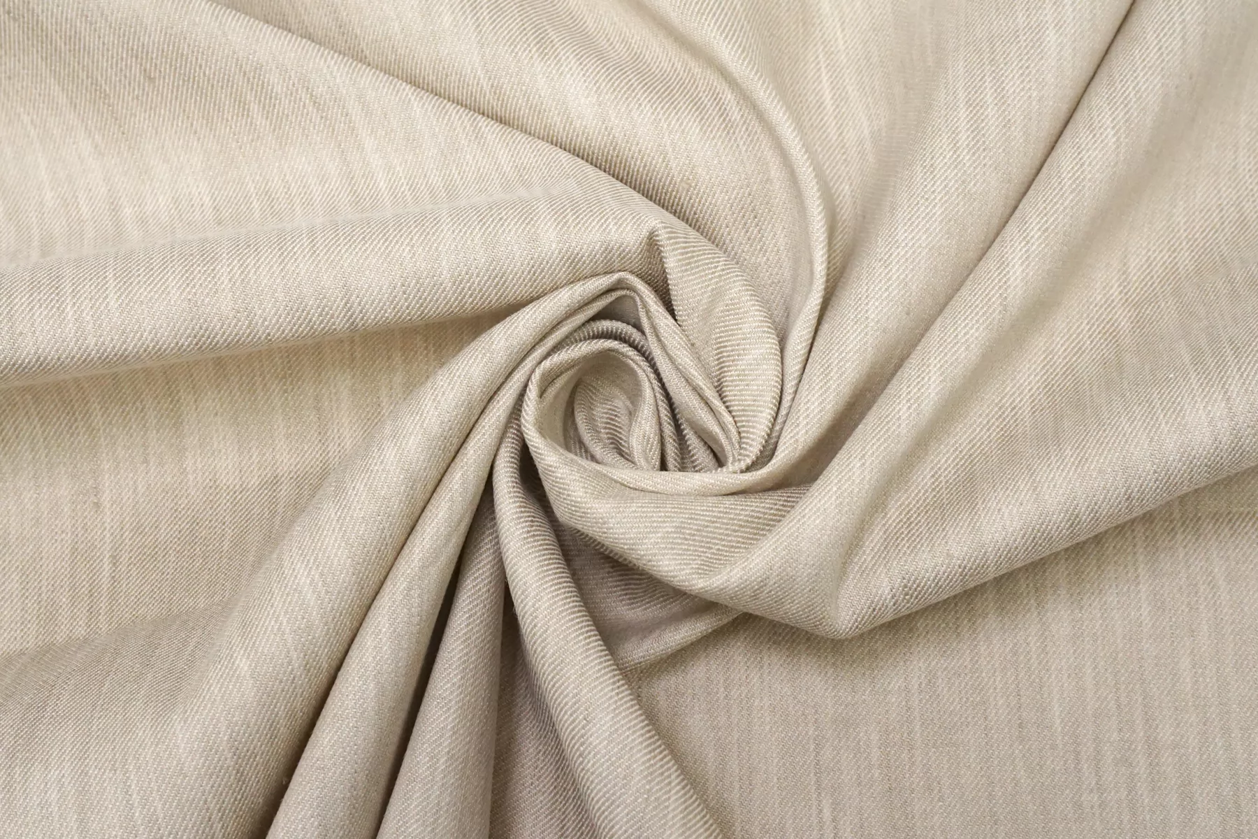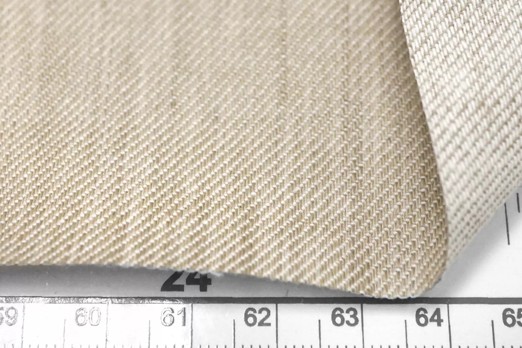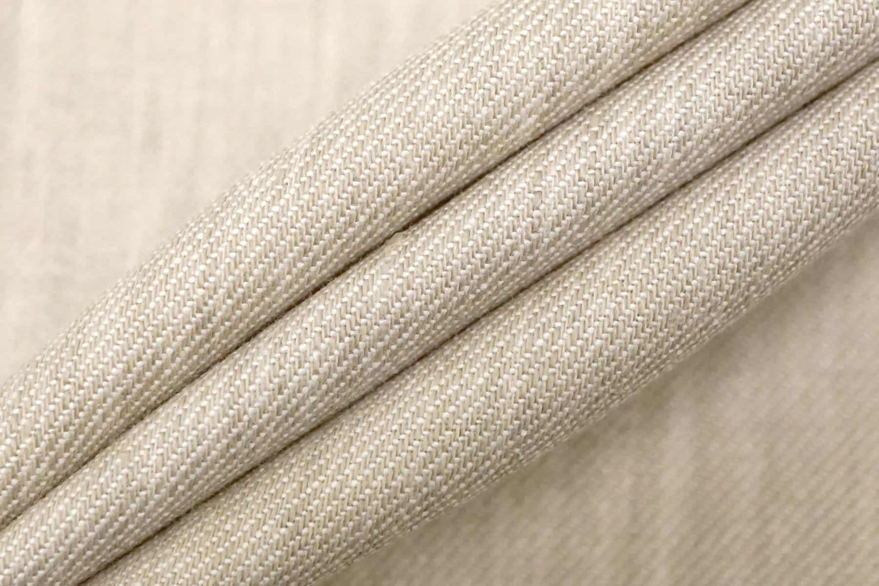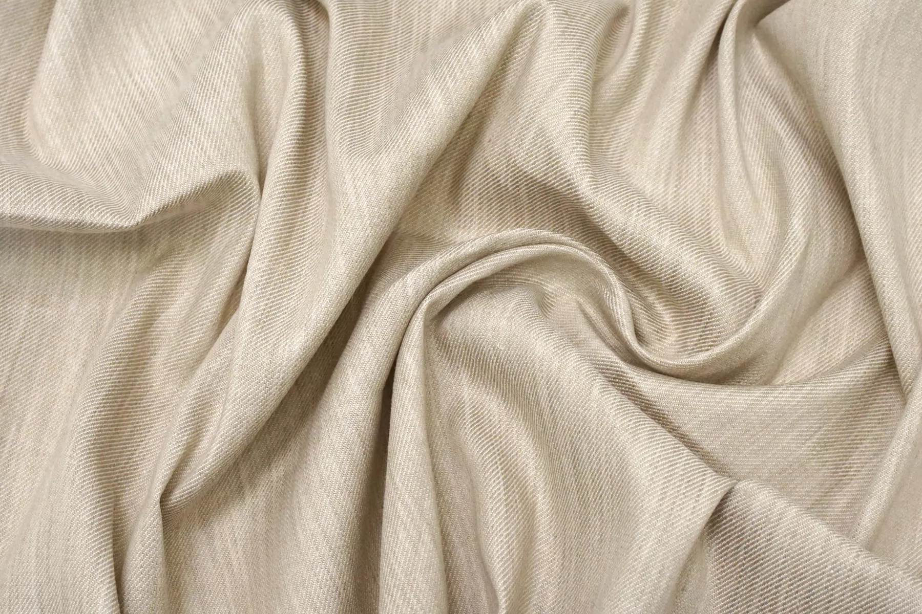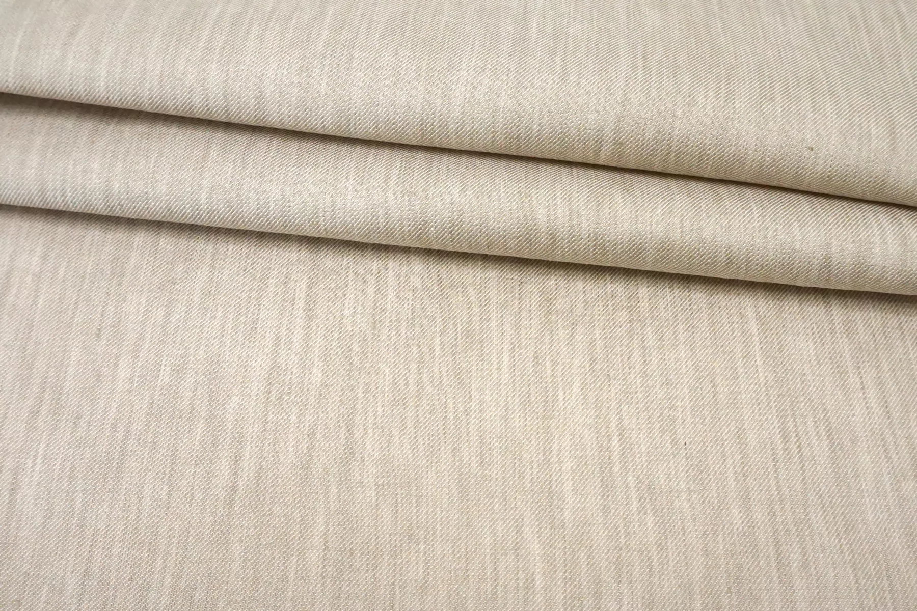 Костюмный лён диагонального плетения, из нитей песочно-бежевого и молочно-белого цвета. Тактильно немного суховатый, что свойственно льну. Мнется. Не тянется. Слегка просвечивает силуэт, в изделии заметно не будет. Умеренной пластичности, формодержащий. Прекрасно подойдет на костюмы, платья, юбки и не только. При необходимости используйте подкладочный материал.