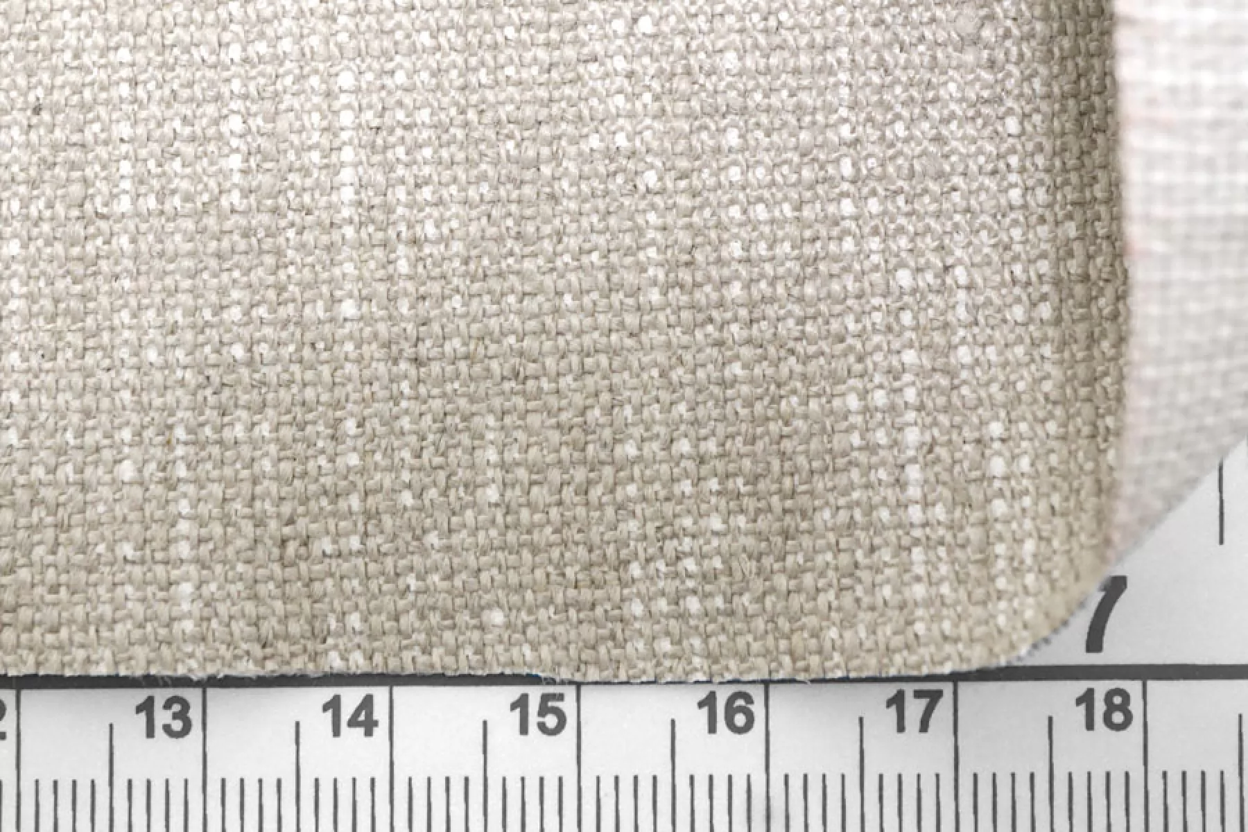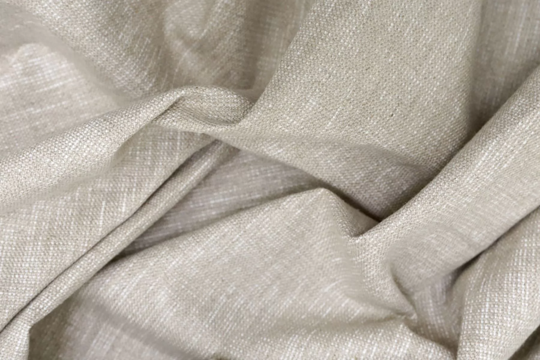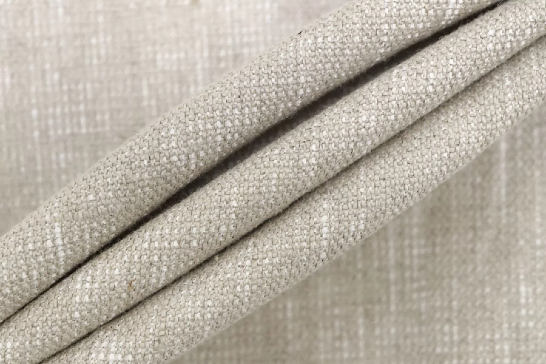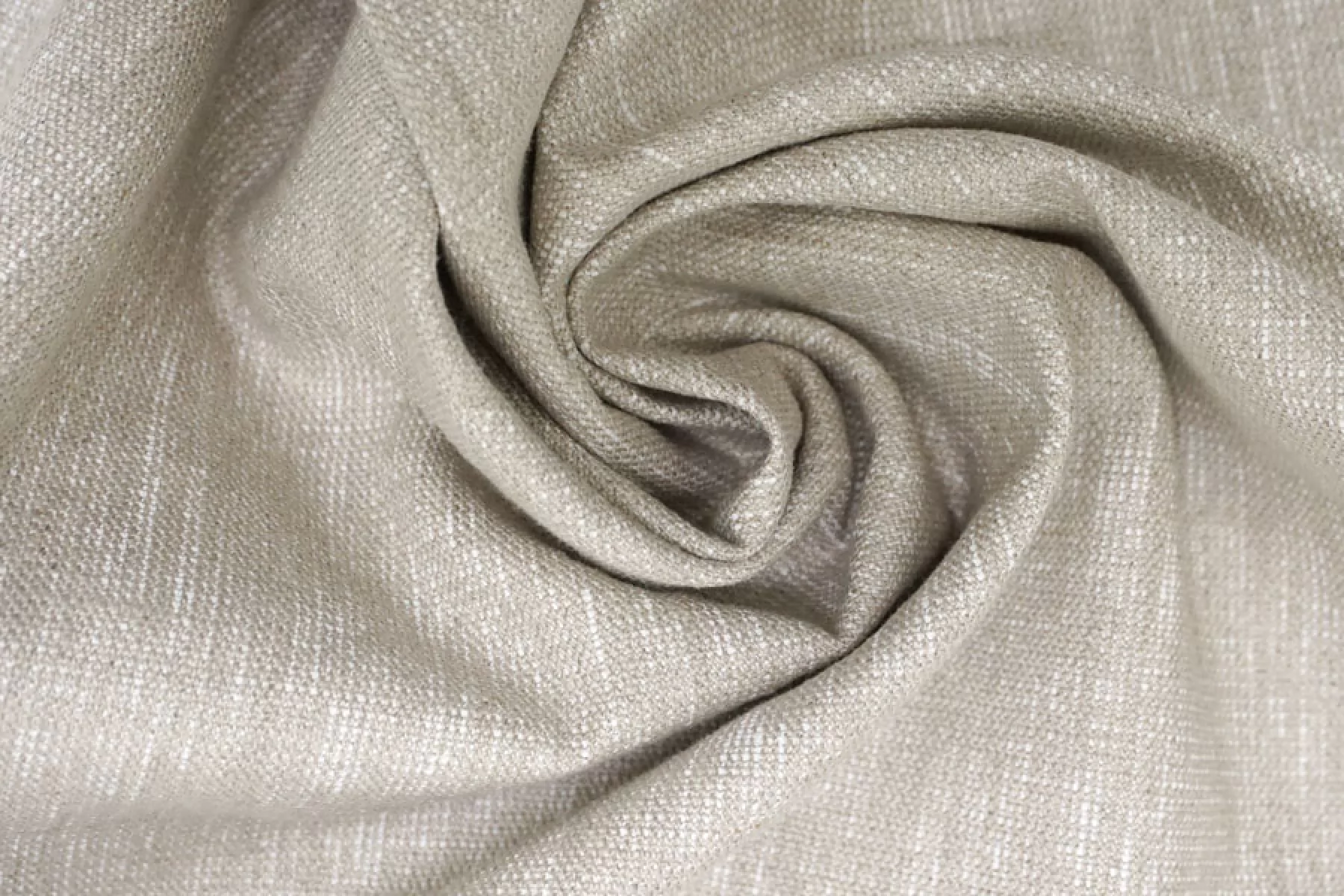 Костюмный лён полотняного переплетения, светлого серо-бежевого оттенка. Изнаночная сторона с пропиктой, позволяющей держать воду. Тактильно материал гладкий и приятный. Обладает красивым лоском. Хорошо держит форму. Не просвечивает. Не тянется. Мнется. Отличный вариант на жакеты, тренчи, куртки.