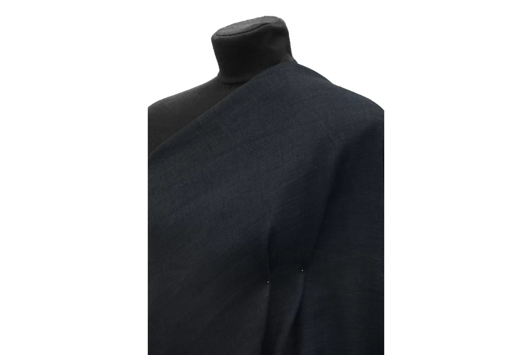 Плательный лён-рогожка темно-серого оттенка. Мягкий и приятный наощупь. С легким лоском. Плетение слегка разряженное, но не рыхлое. Сминается. Просвечивает. Немного тянется и мнется. Форму держит. Пластичный. Шьем платья, рубашки, юбки, брюки и мягкие жакеты. При необходимости используйте подкладочный материал.