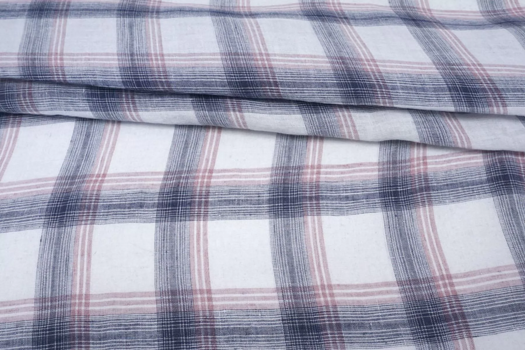Лён рубашечно-плательный в клетку Сиренево-лилово-синий BRS H16/2 G10 13082530