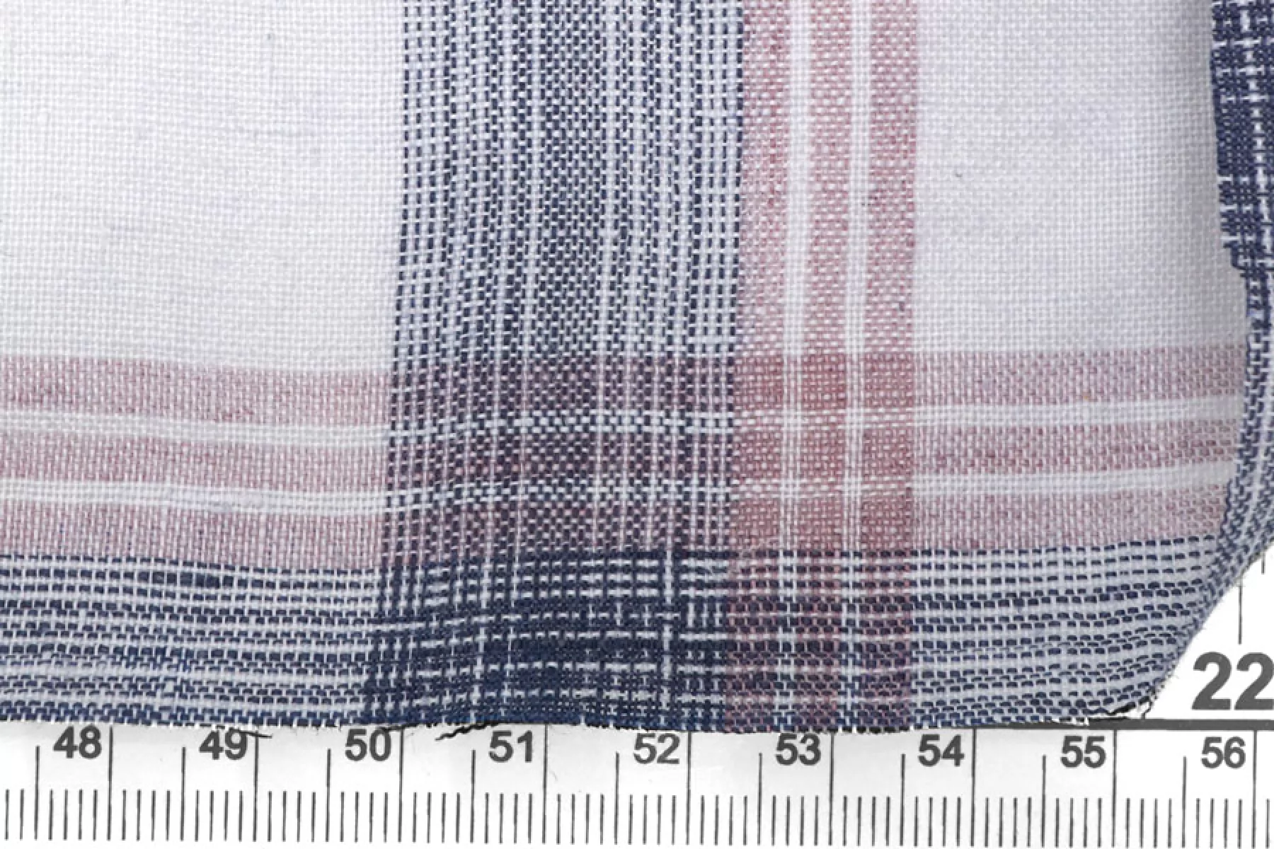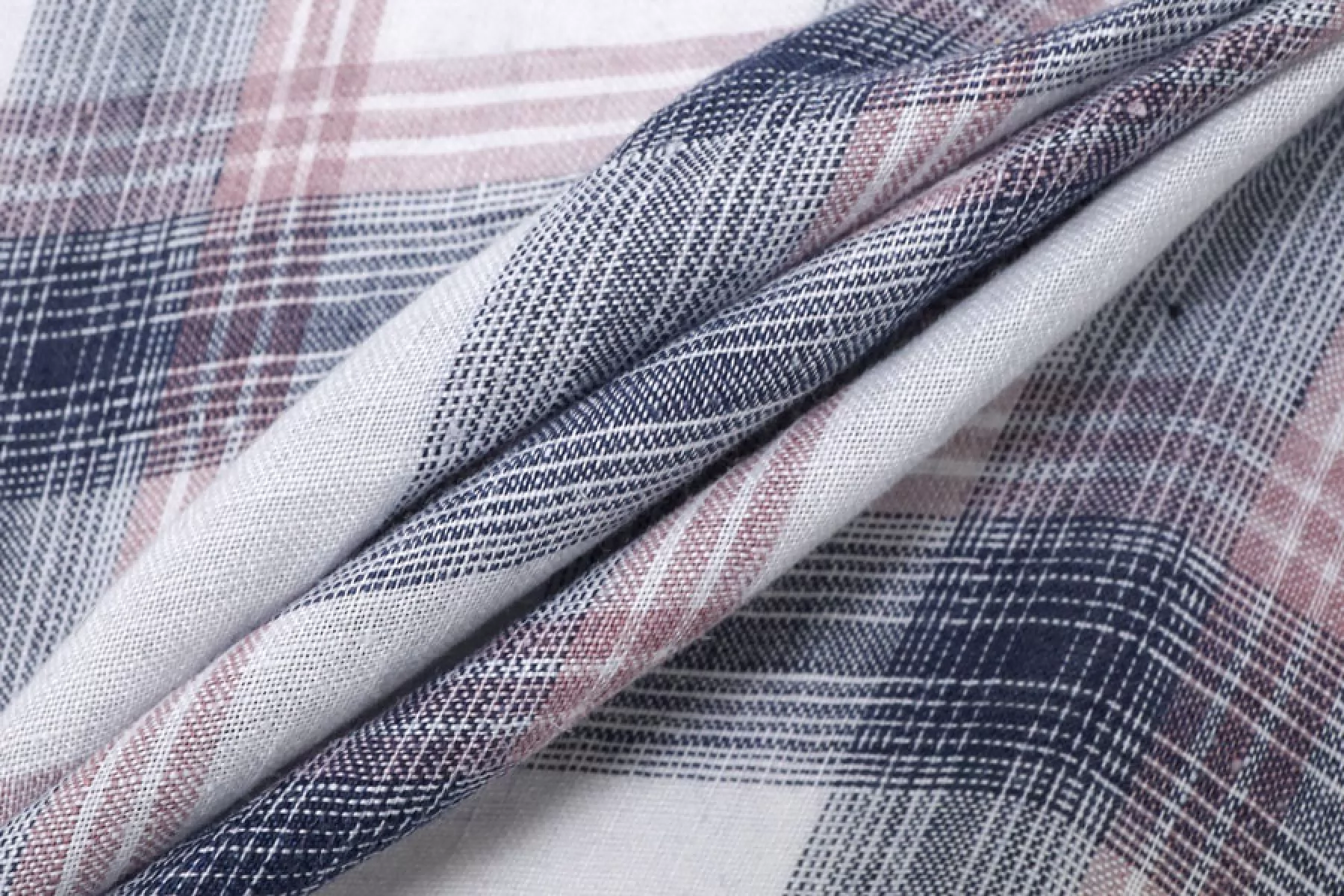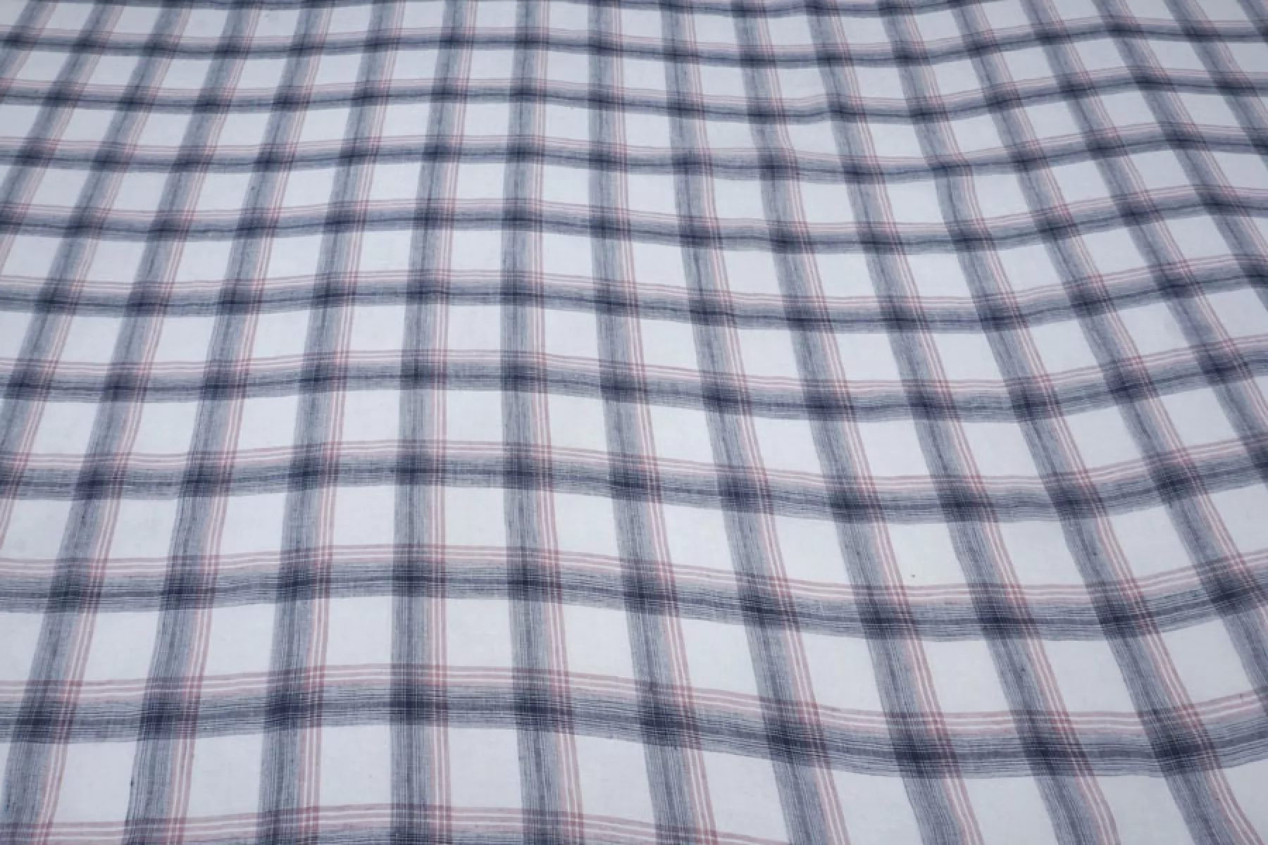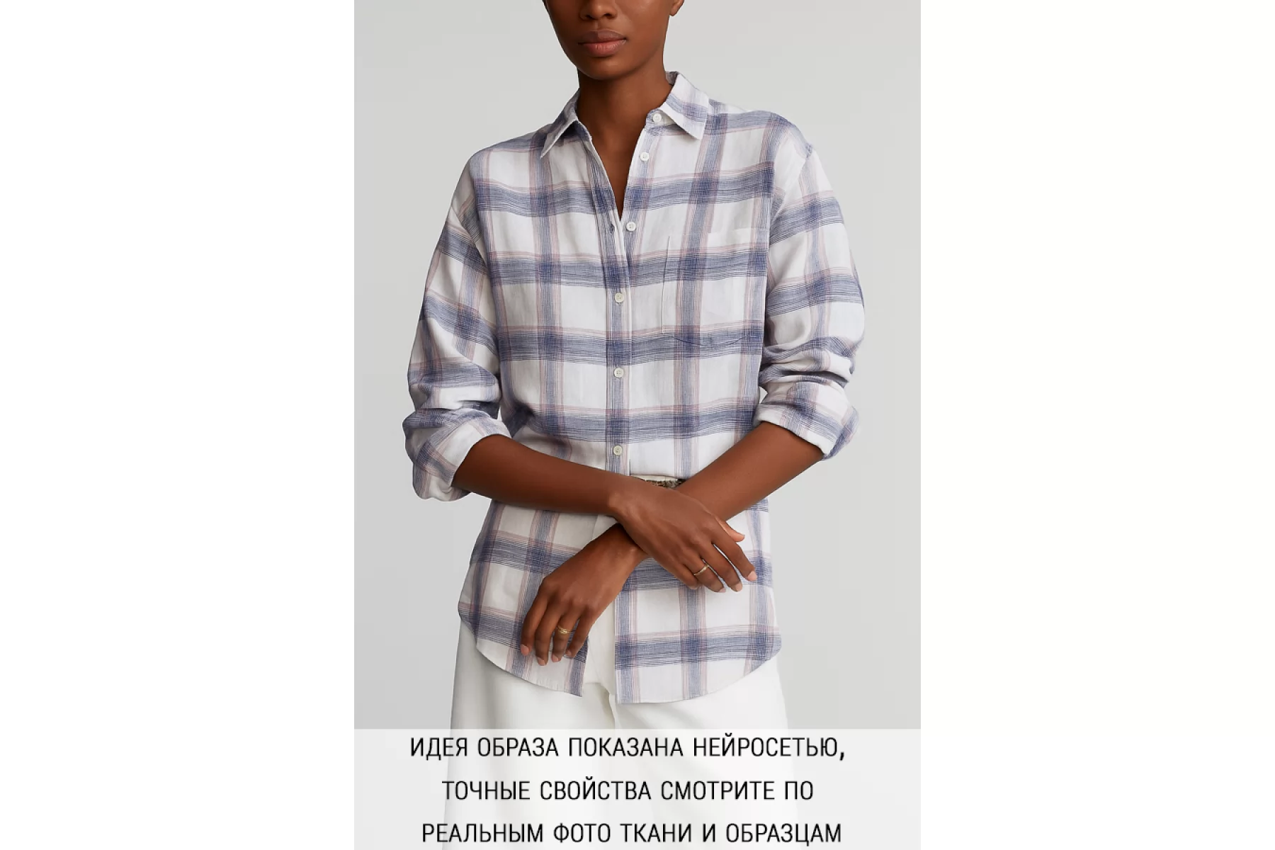 Итальянский лён полотняного плетения, рубашечно-плательной плотности, с узором-клеткой. Нити тёмного сине-фиолетового, светлого голубовато-сиреневато-серого и сложного, пыльного лилового оттенка. Присутствуют классические льняные утолщения нити. Ткань тонкая, тактильно суховатая, просвечивает, мнется. Плетение не плотное. Отличный вариант для летнего изделия - платья, юбки, сарафана, кимоно, рубашки.