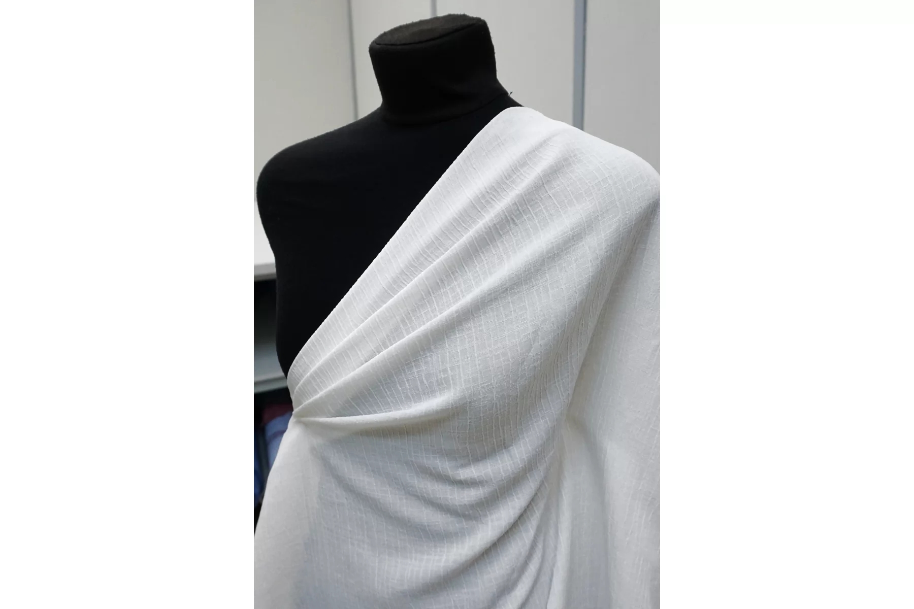 Прекрасный костюмный фактурный лён с хлопком и вискозой в белом цвете. Умеренной плотности, тактильно шероховатый. Не тянется. Пластичный. Немного мнется. Не просвечивает и немного держит форму. Шьем сарафаны, платья, юбки, летние не строгие костюмы.