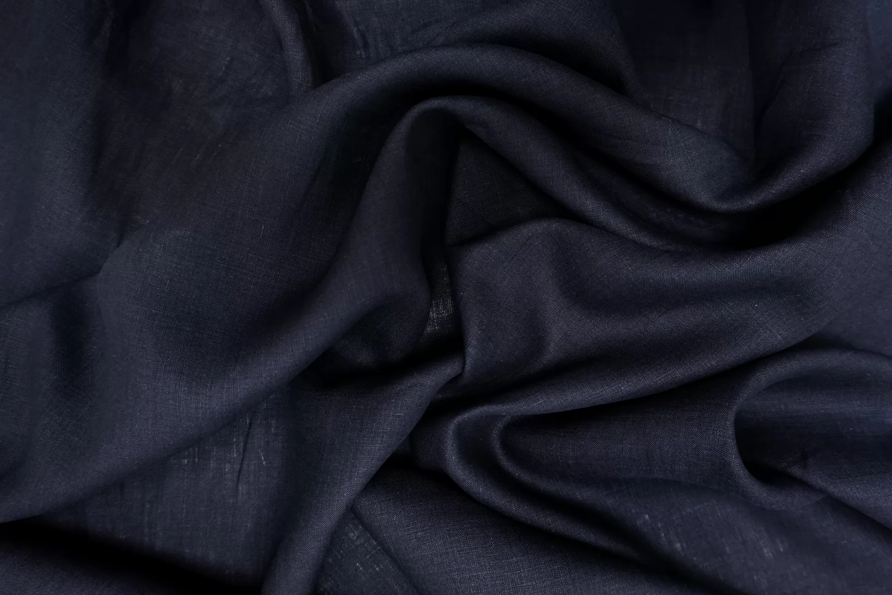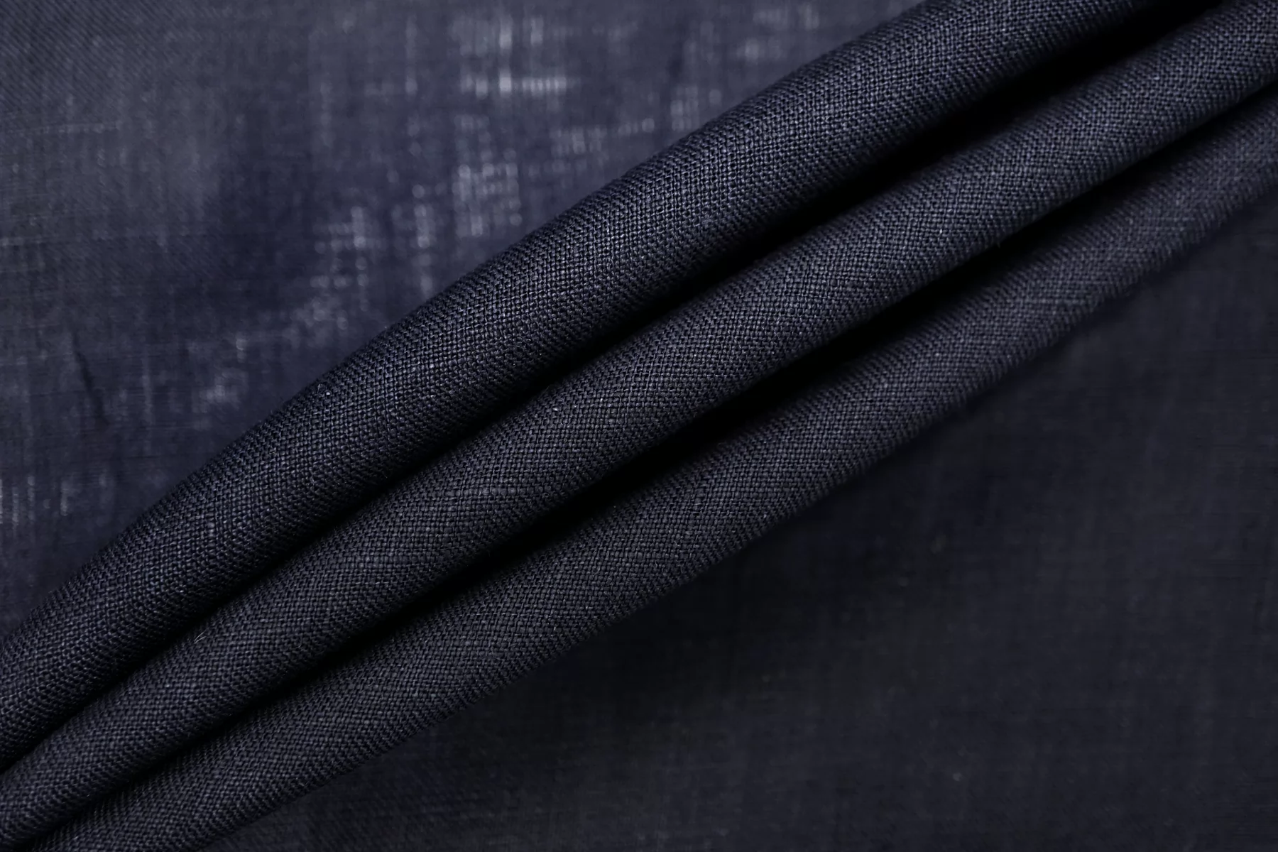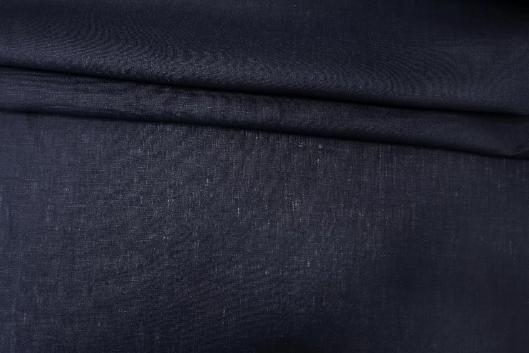 Итальянский лён с хлопком плательно-рубашечной плотности, тёмно-синего цвета. Не толстый, плетение не очень плотное. Просвечивает в один слой. Мягкий, слегка суховатый тактильно. Пластичный, немного держит форму, мнется. Отличный летний вариант на летние платья, юбки, рубашки. При необходимости используйте подкладочный материал.