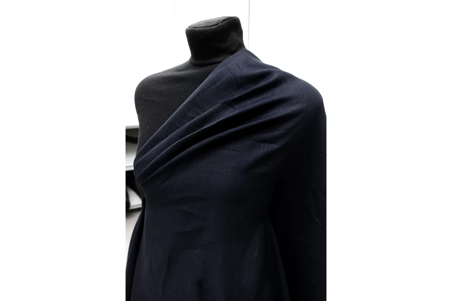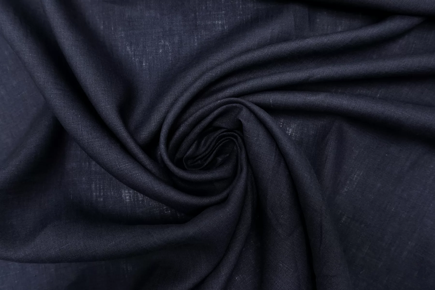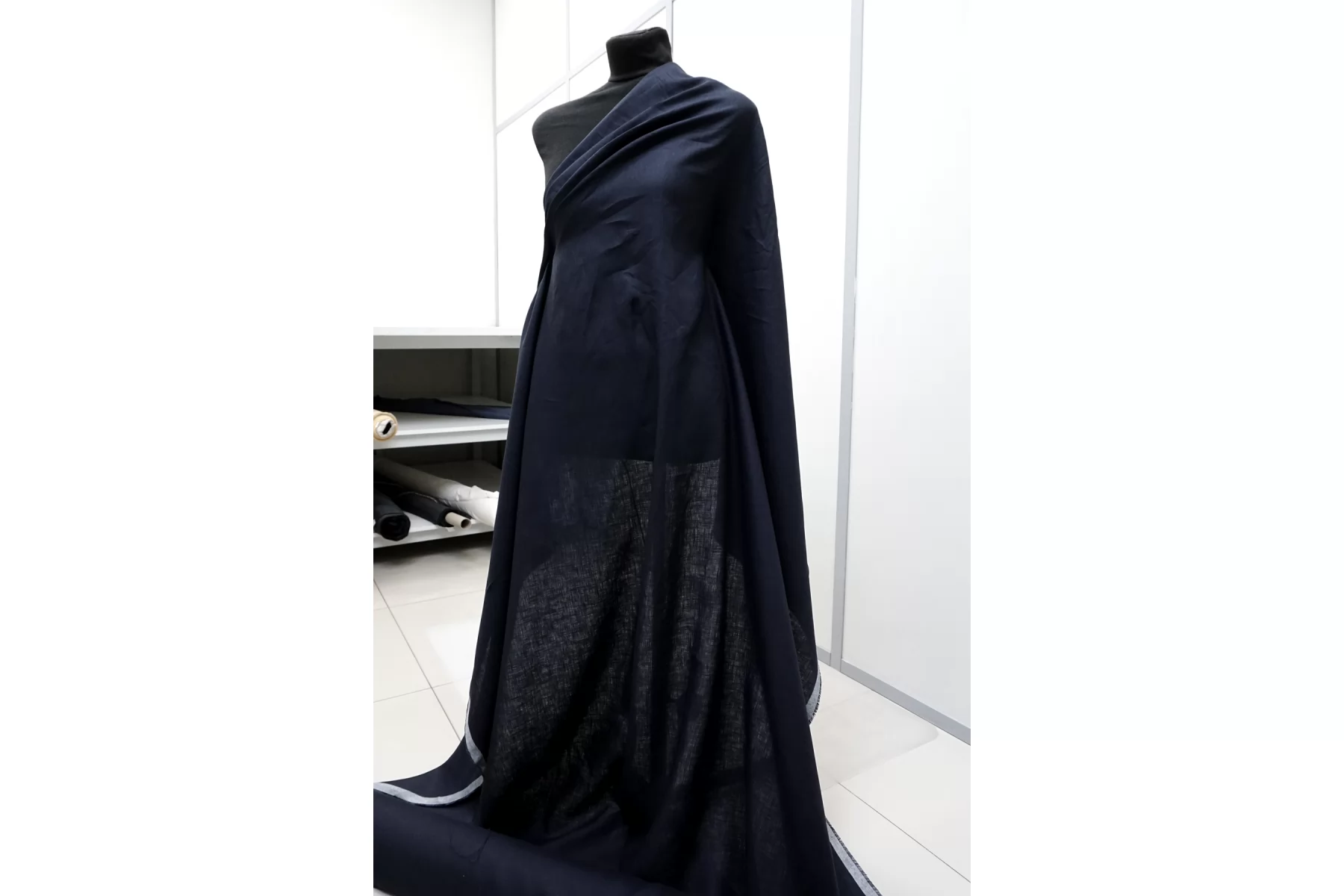 Итальянский лён с хлопком плательно-рубашечной плотности, тёмно-синего цвета. Не толстый, плетение не очень плотное. Просвечивает в один слой. Мягкий, слегка суховатый тактильно. Пластичный, немного держит форму, мнется. Отличный летний вариант на летние платья, юбки, рубашки. При необходимости используйте подкладочный материал.