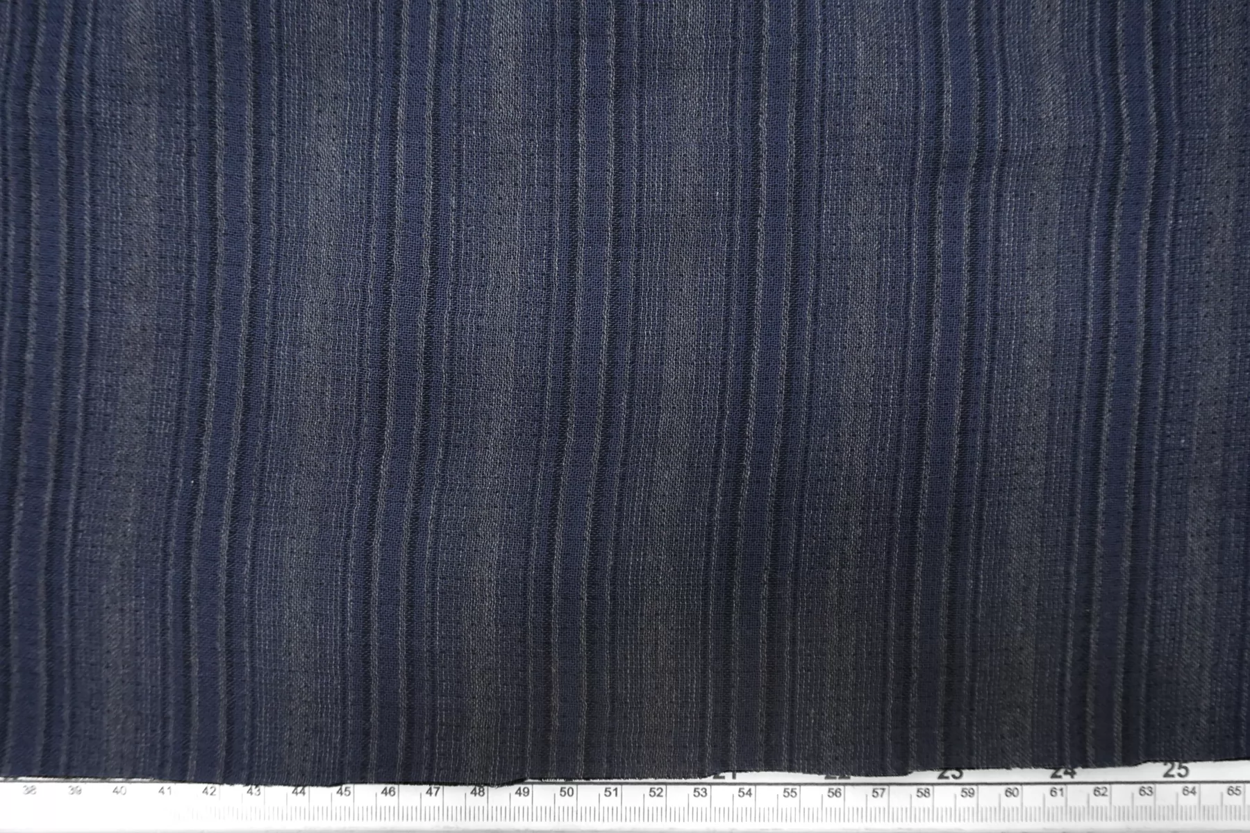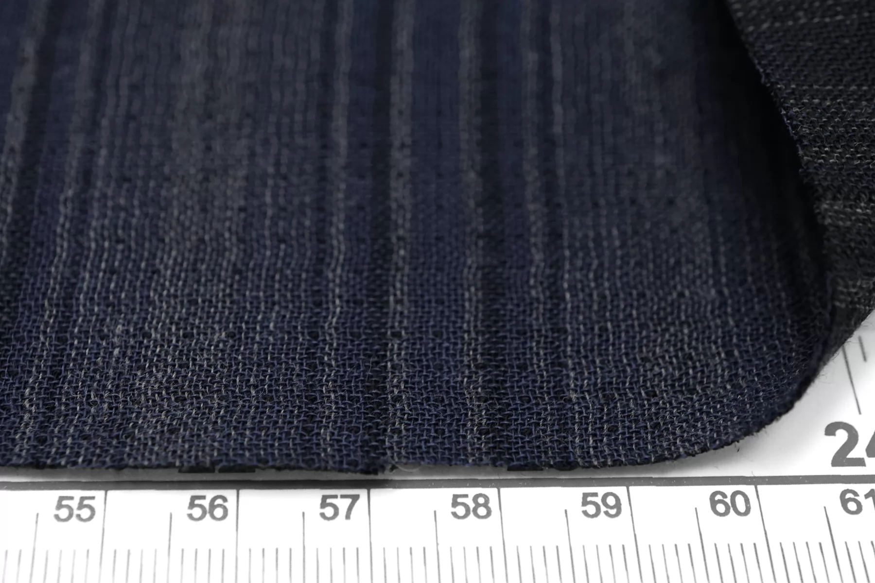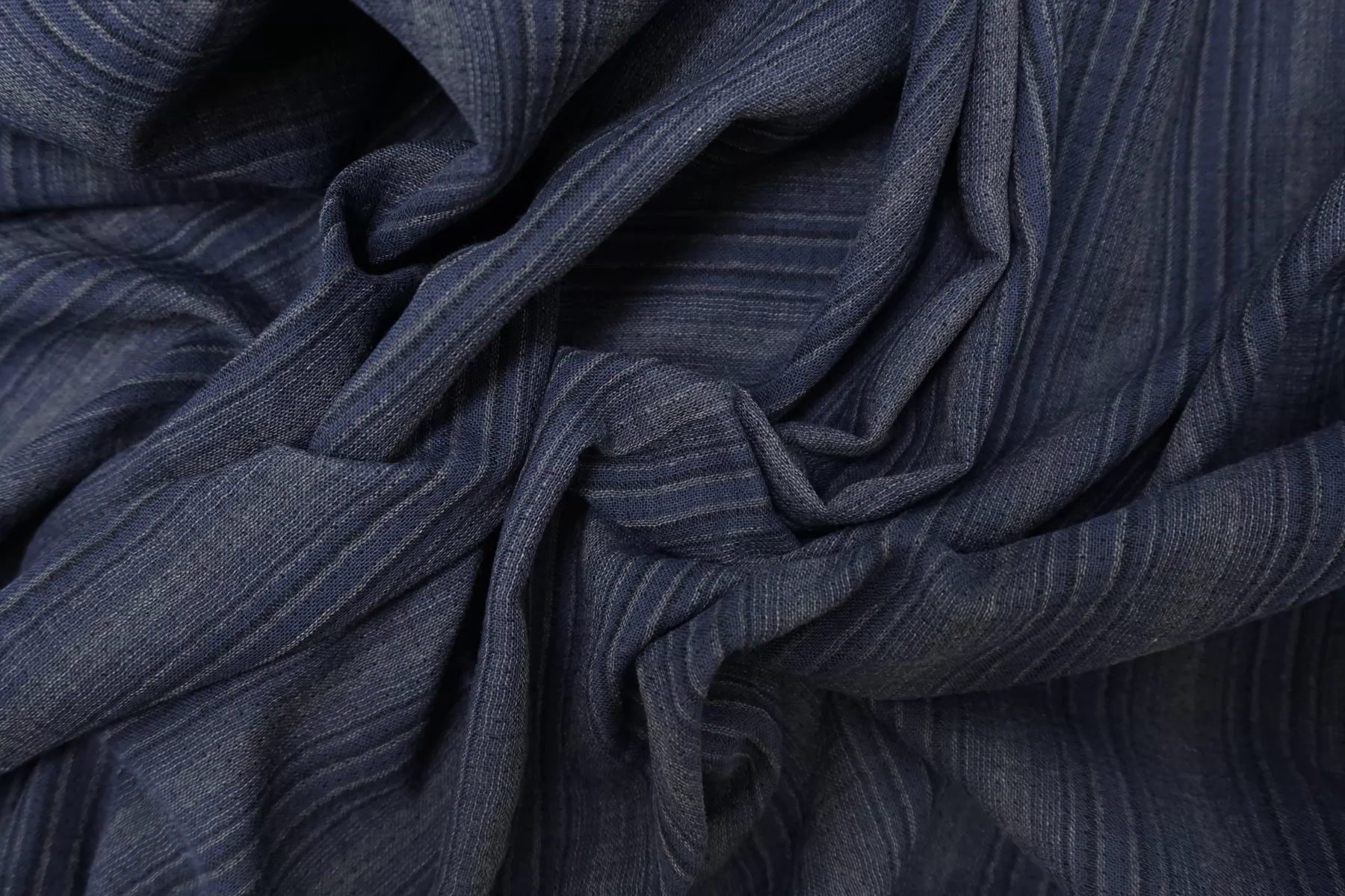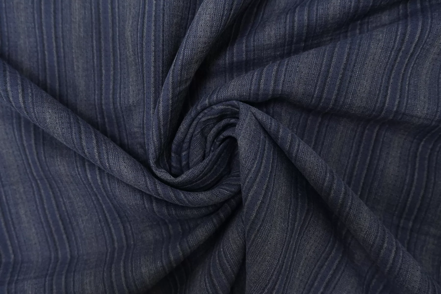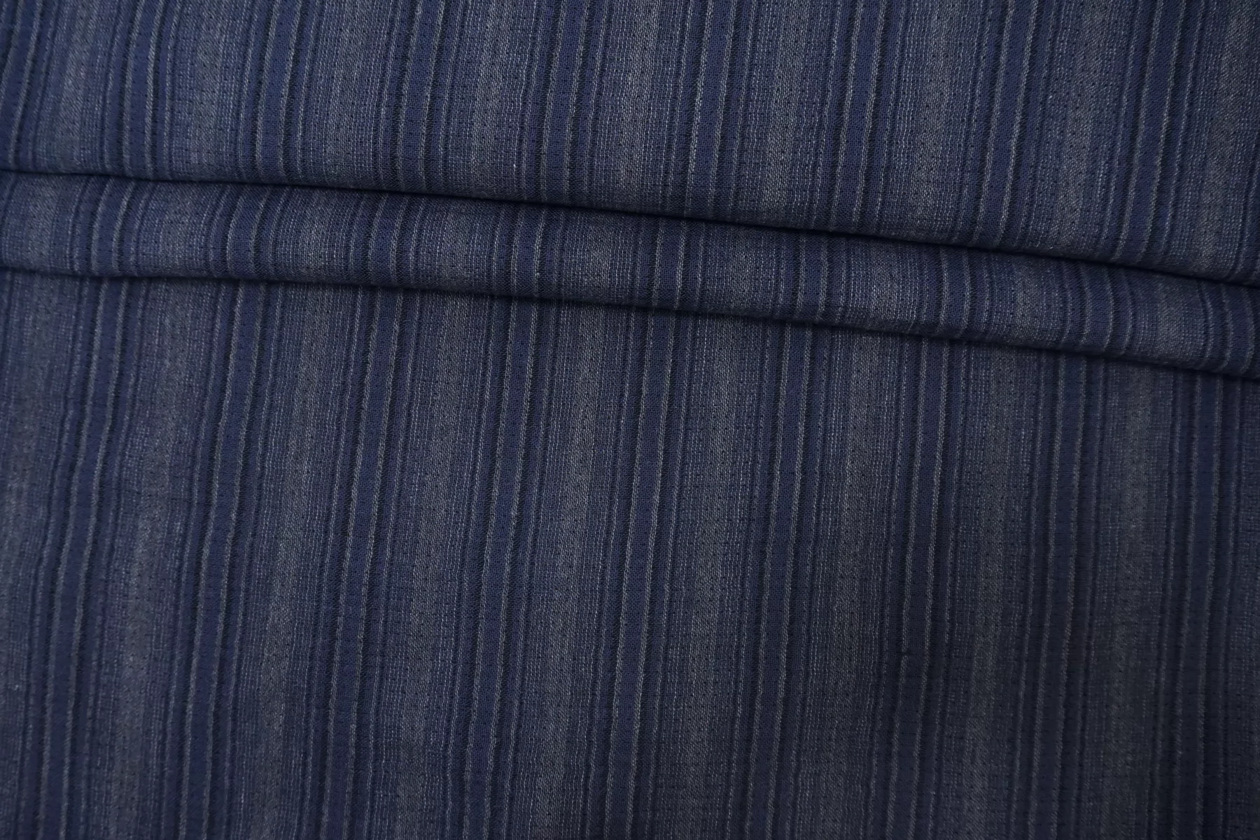 Итальянская двойная марлевка из хлопка с небольшой добавкой льна, с узором-полоской из нитей тёмно-синего и серого цвета. Материал мягкий и приятный наощупь. Просвечивает, пластичный, легкий. Подойдет для пошива туники, платья, юбки (на подкладе или многослойной).