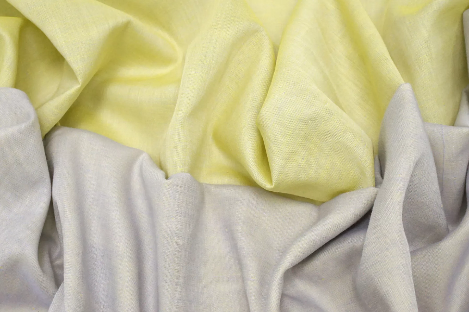 Двухслойная марлевка из хлопка нити лимонно-жёлтого и светлого сиренево-голубого цвета, с эффектом шанжан. Слои не повреждаются при разделении. Материал мягкий и приятный наощупь. Плетение слегка тянется. Просвечивает, пластичный, легкий. Подойдет для пошива рубашки, туники, платья, юбки (на подкладе или многослойной).