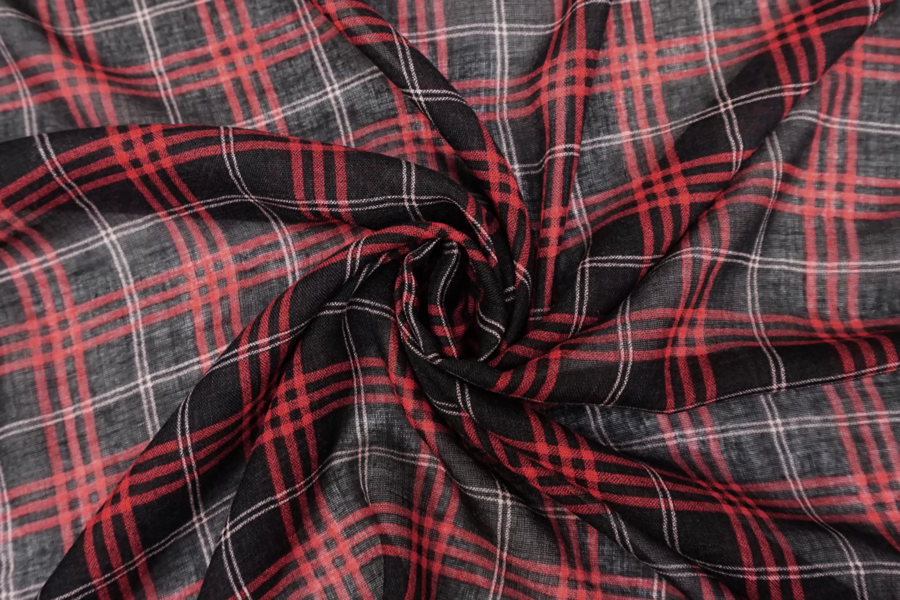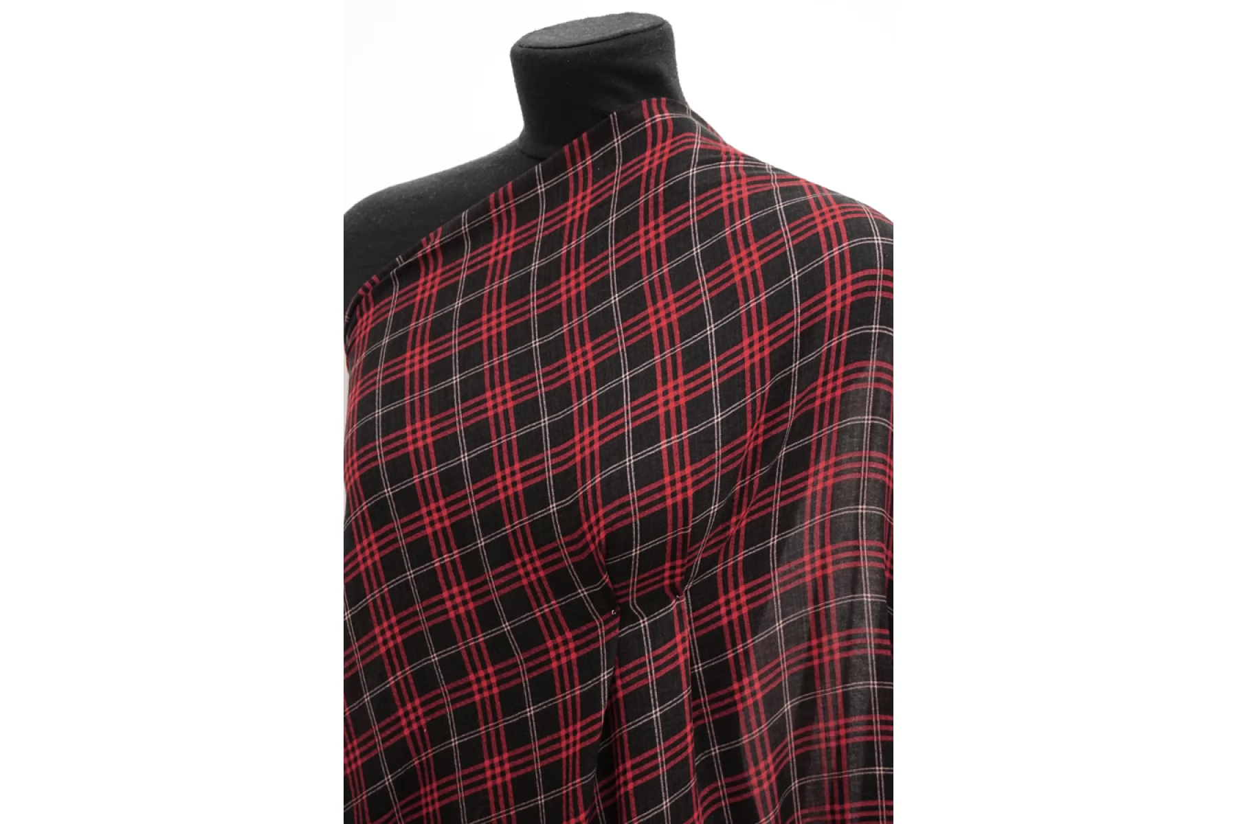 Классная марлевка из вискоза с добавлением шерсти в клетку черного цвета. Тонкая, мягкая и приятная наощупь. Просвечивает. Не тянется. Немного сминается и немного держит форму. Идеальный вариант на рубашки, платья, накидки. Уход деликатный.