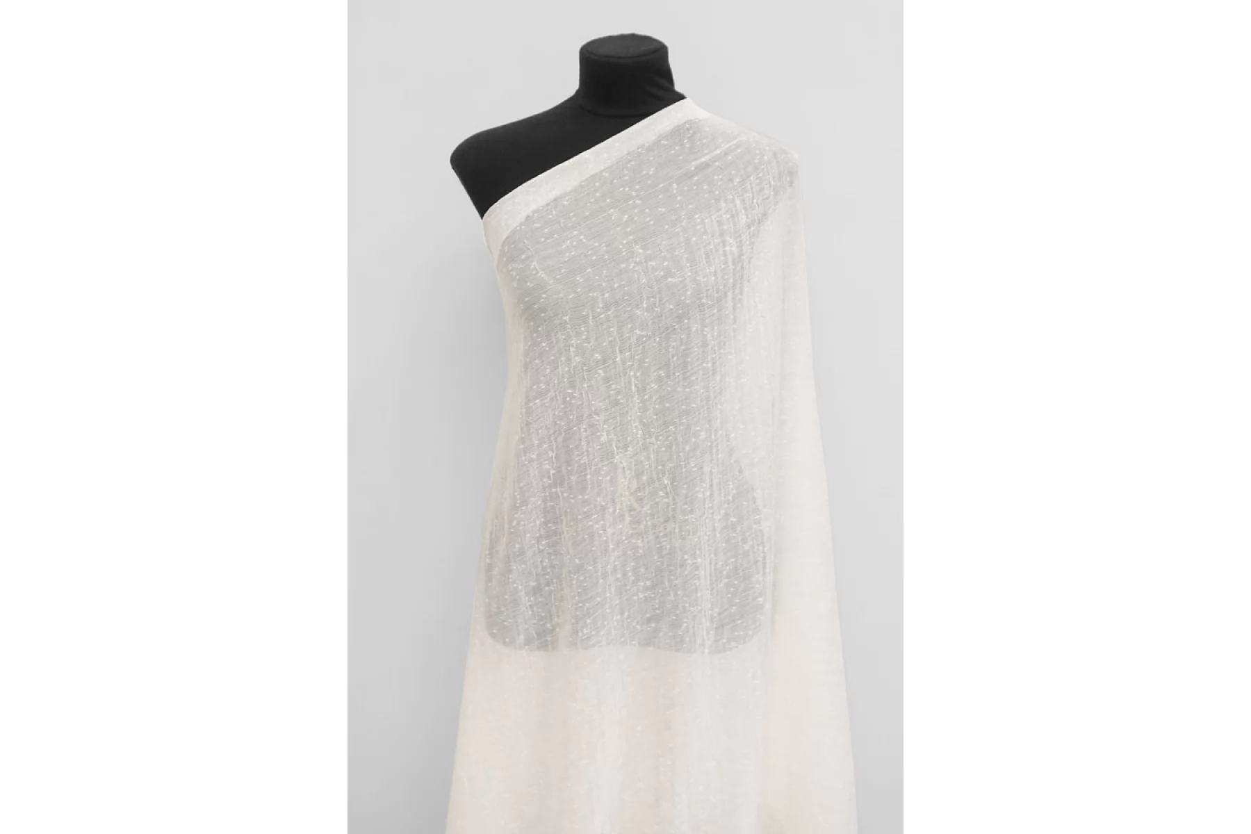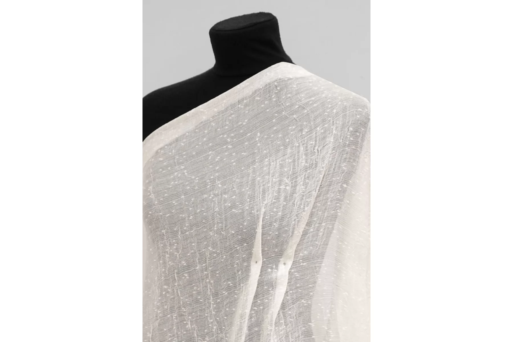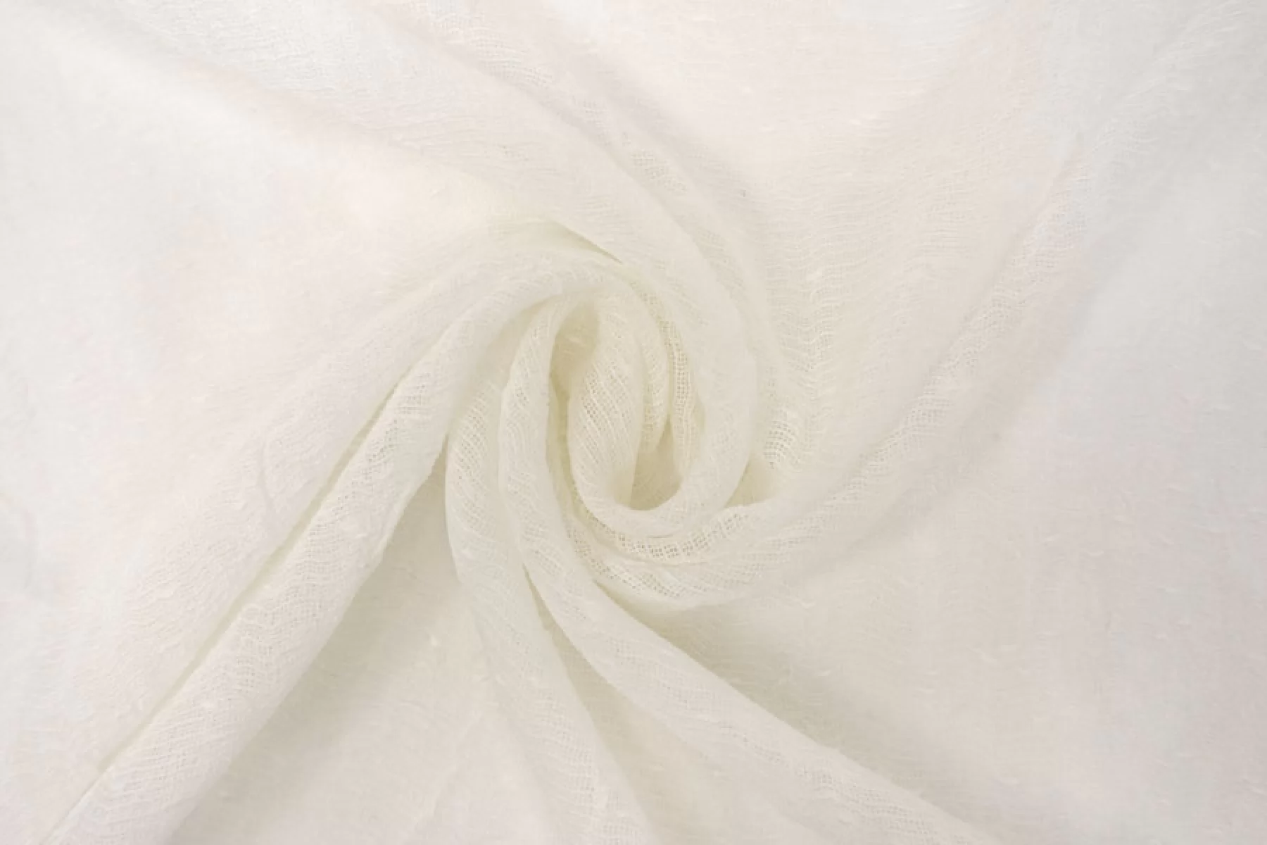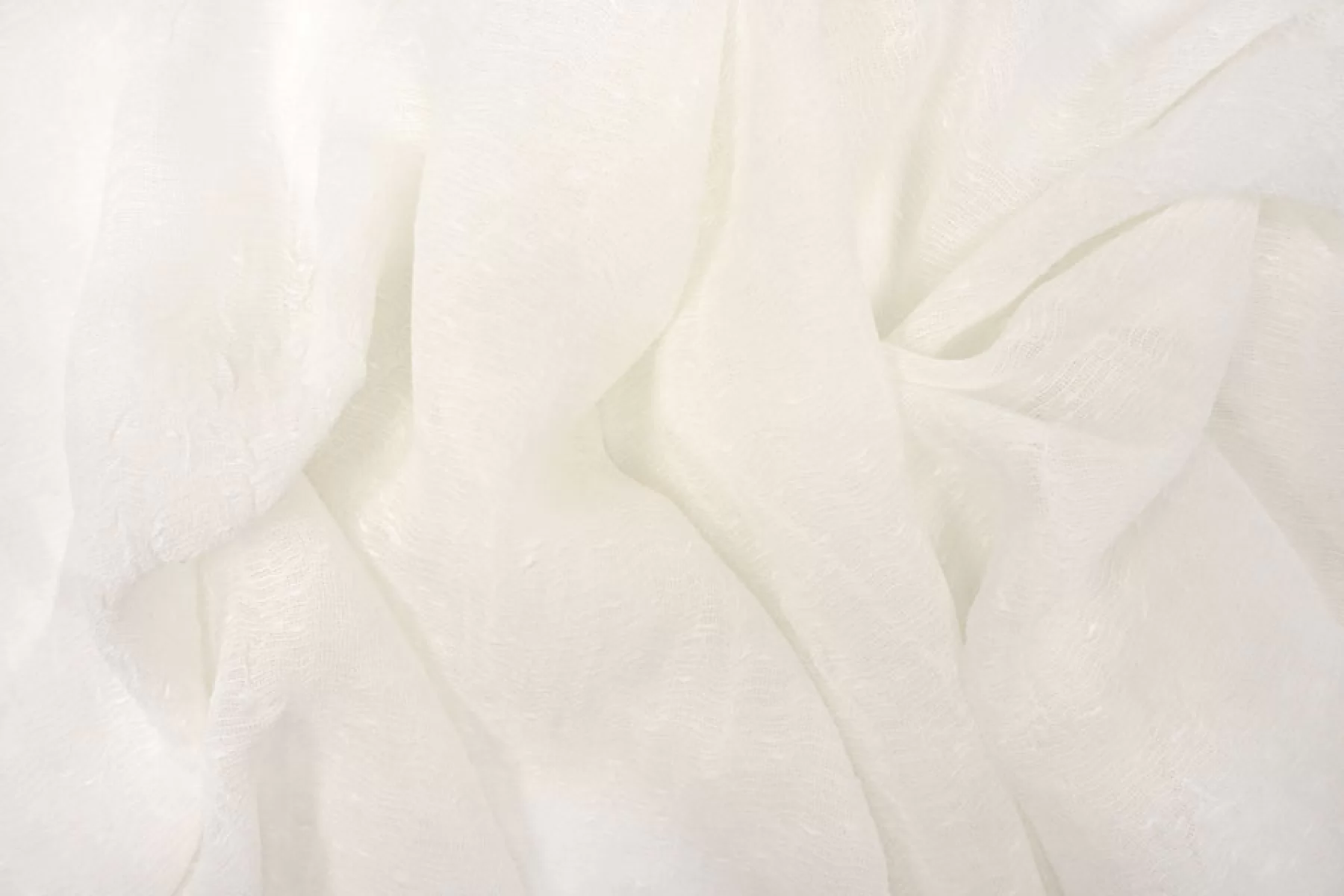 Итальянская тонкая плательная марлевка в молочном оттенке. Шероховатая и жестковатая наощупь. Просвечивает, пластичная, не тянется. Форму держит. Подойдет для пошива платья, блузки, палантина, юбки, для декора.