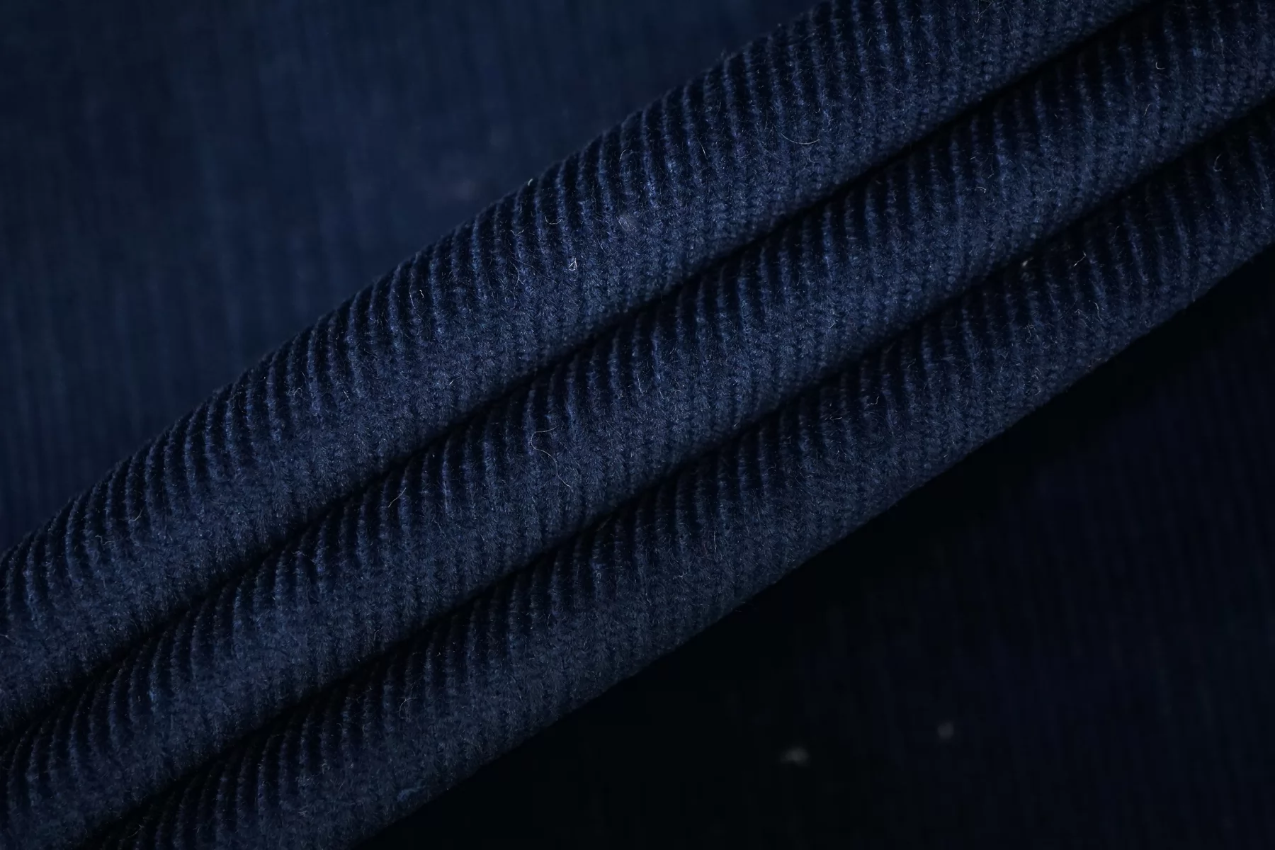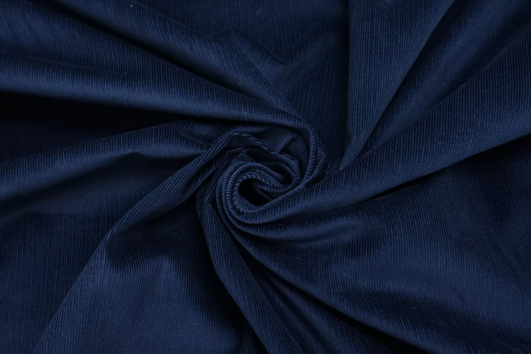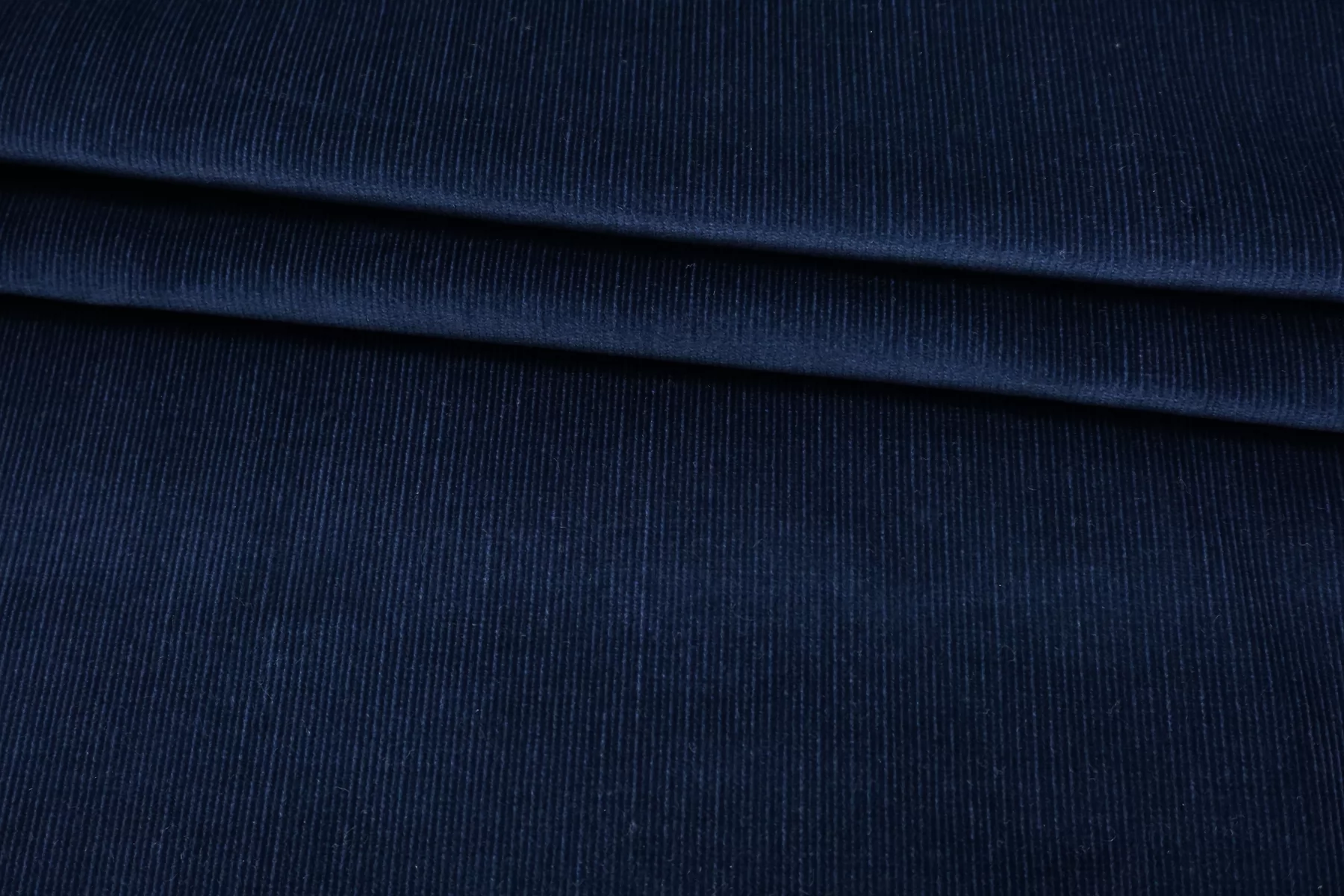 Шикарный костюмно-плательный микровельвет в красивом, глубоком тёмно-синем цвете. Ширина рубчиков 1,5 мм. Материал плотный, но тонкий. Приятный и мягкий тактильно, тянется. Пластичный. Практически не мнется. Хорошо драпируется и неплохо держит форму. Отличный вариант для пошива костюма, шорт, юбки, мягкого жакета, рубашки. Кроить в одном направлении.