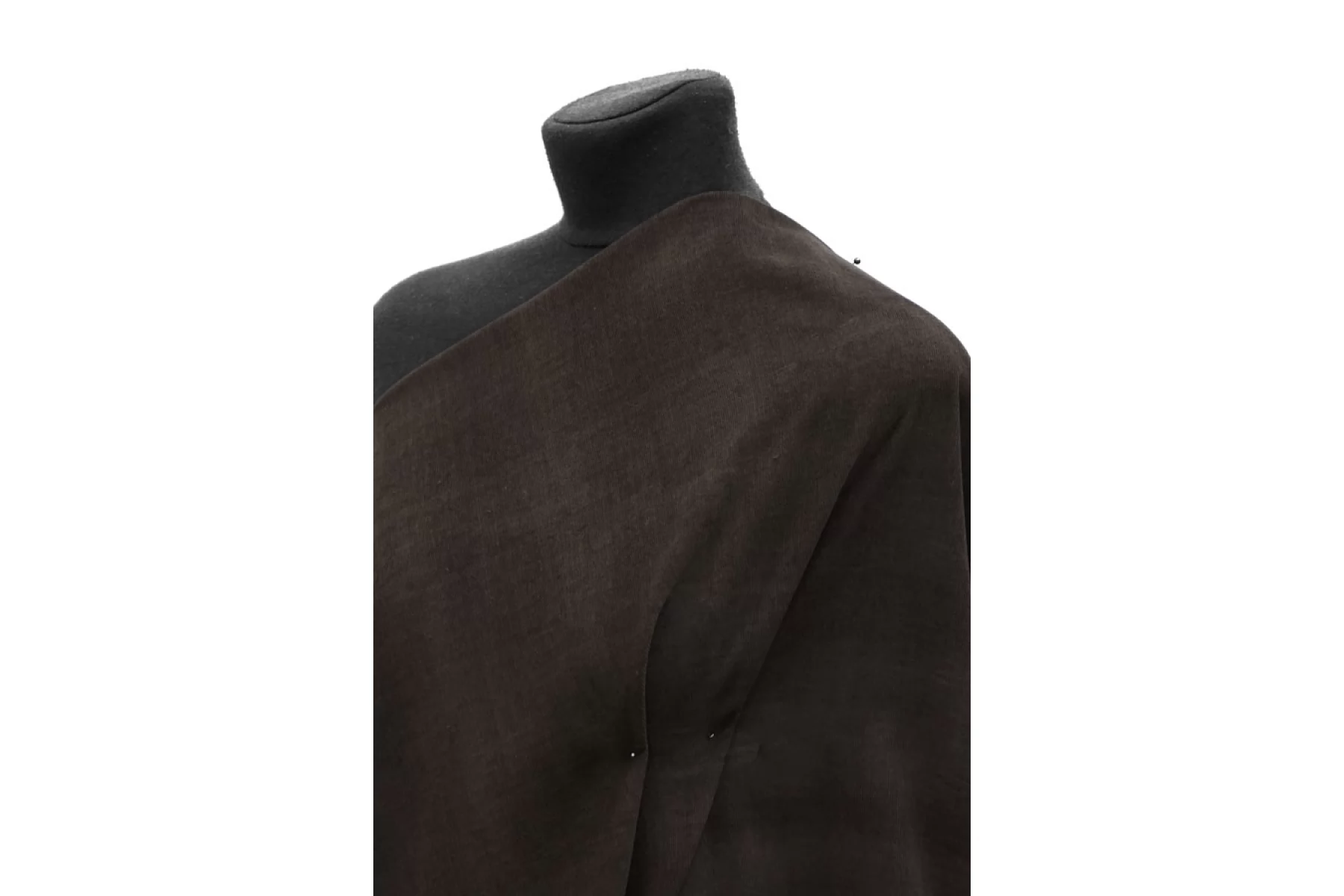 Классный хлопковый микровельвет рубашечно-плательной плотности в актуальном коричневом оттенке. Очень мягкий и приятный наощупь и с лица и с изнанки. Пластичный, тонкий. Немного тянется плетение. Не просвечивает. Сминает несильно. Форму держит хорошо. Подойдет для пошива платья, рубашки, юбки, шорт.