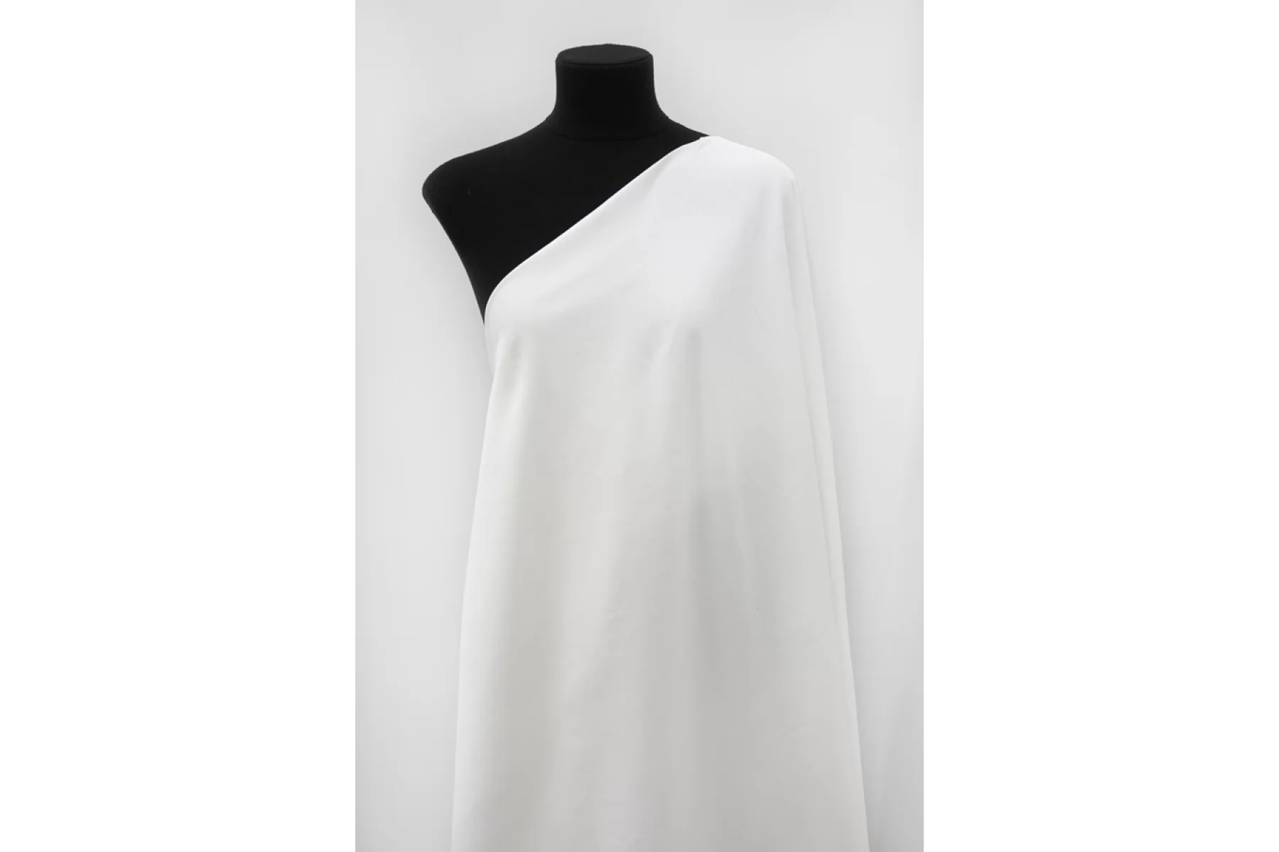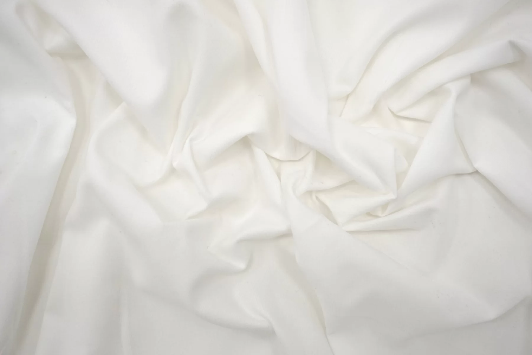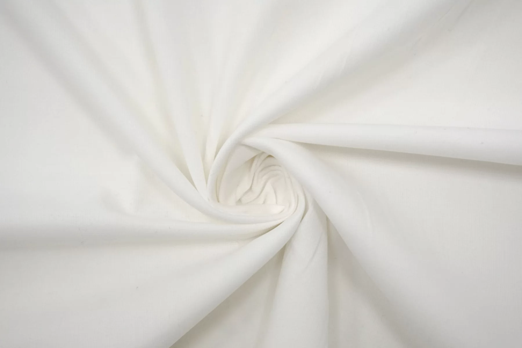 Итальянский микровельвет в белом цвете с молочным подтоном. Очень приятный тактильно, не тянется, немного просвечивает. Подойдет для пошива платья, рубашки, юбки, шорт.