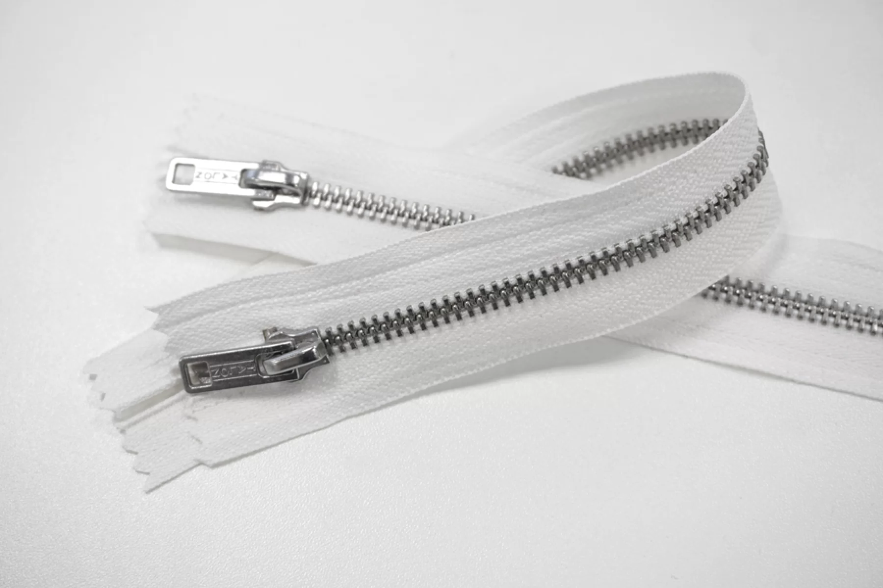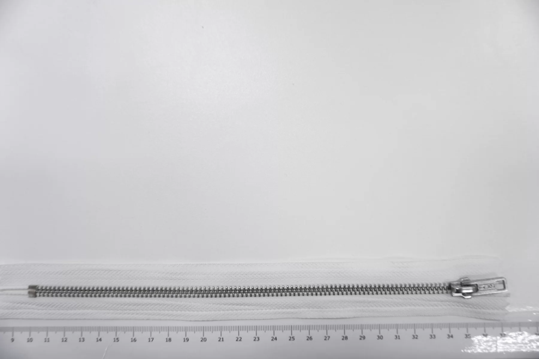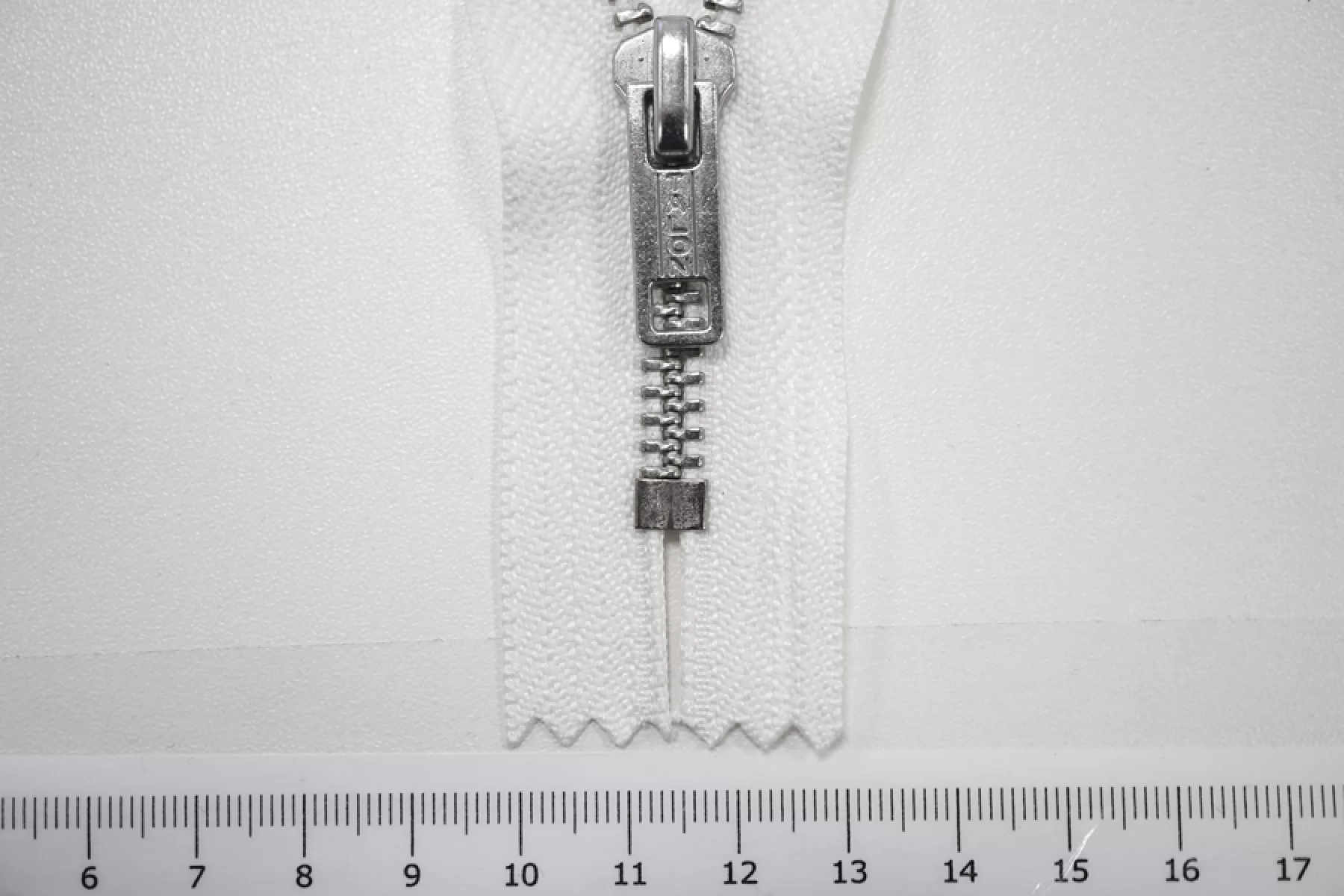 Молния от TALON неразъемная. Белая, цвет зубцов серебристый стальной. Длина 24 см.