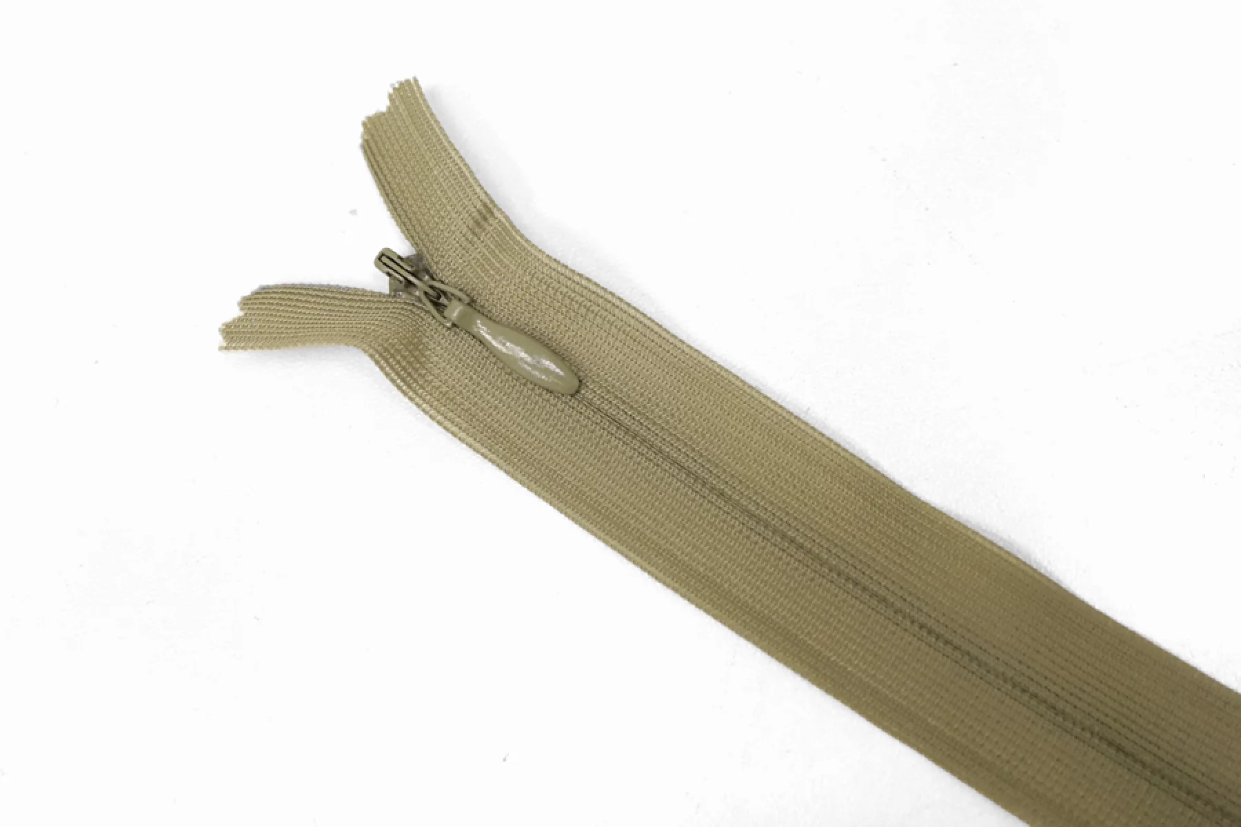 Потайная молния блекло-оливкового цвета от UZ MARELLA , длина 20 см. Слайдер и пуллер метал. в цвет молнии. Ширина молнии 2.2 см , ширина зубцов 4мм.