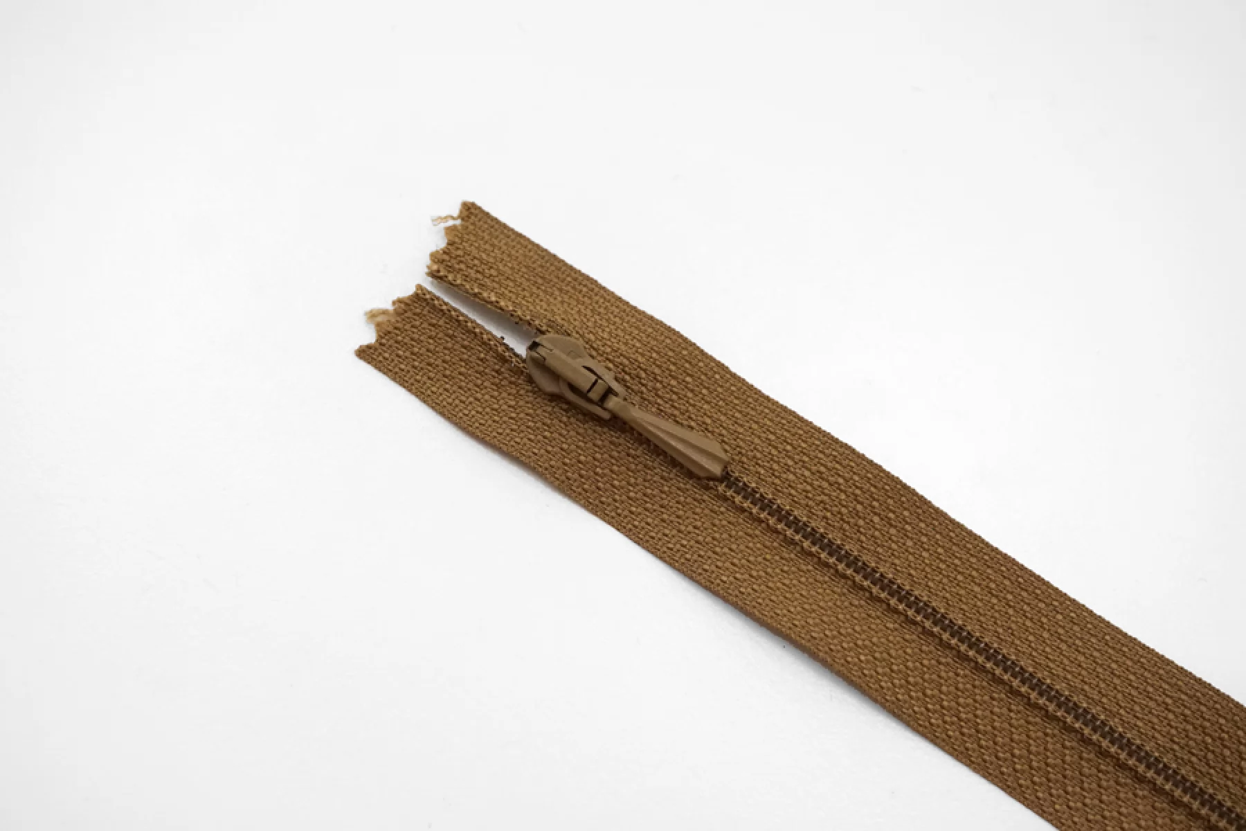 Брючная молния коричневого цвета от YKK, длина 15 см.