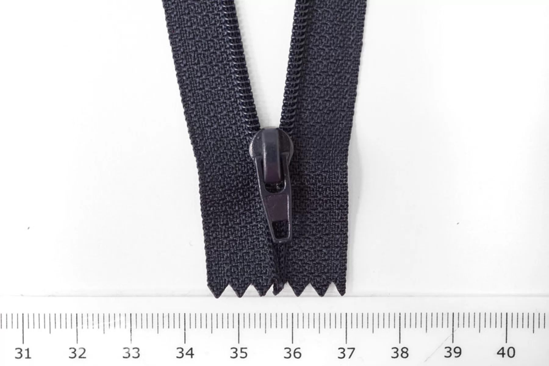 Молния брючная спиральная неразъёмная, однозамковая, очень темного синего оттенка. Зубцы пластиковые. Пуллер - металл. Длина 16 см. Ширина 2,5 см. Ширина зубцов 4 мм.