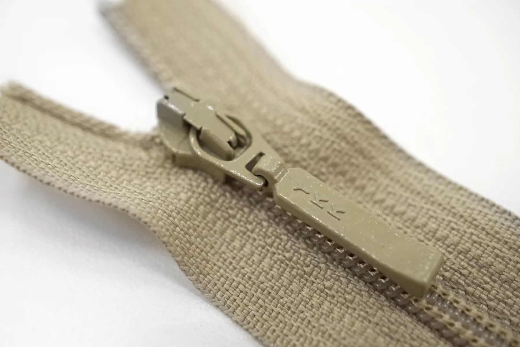 Брючная молния серо-бежевого цвета от YKK, длина 14 см.