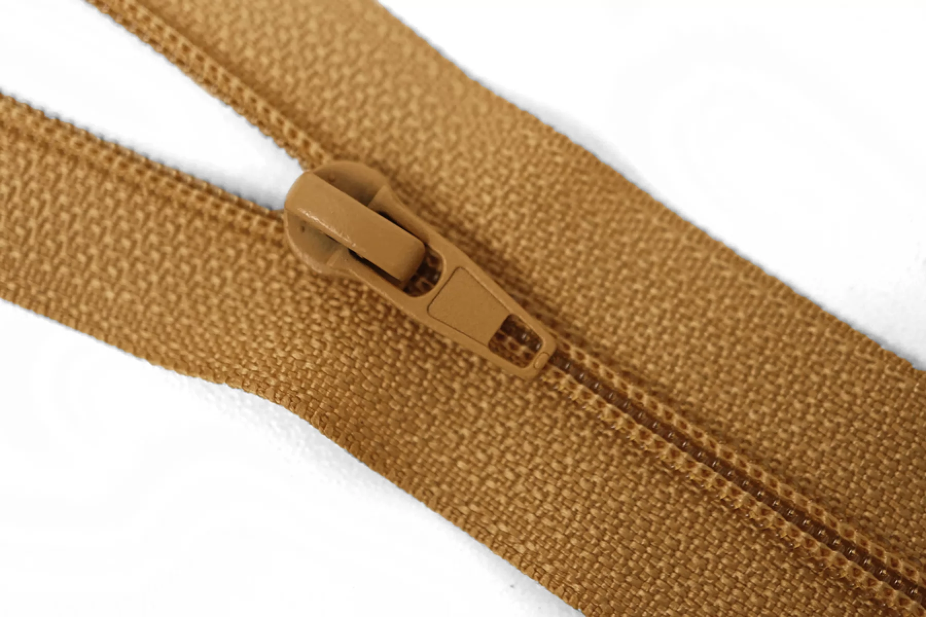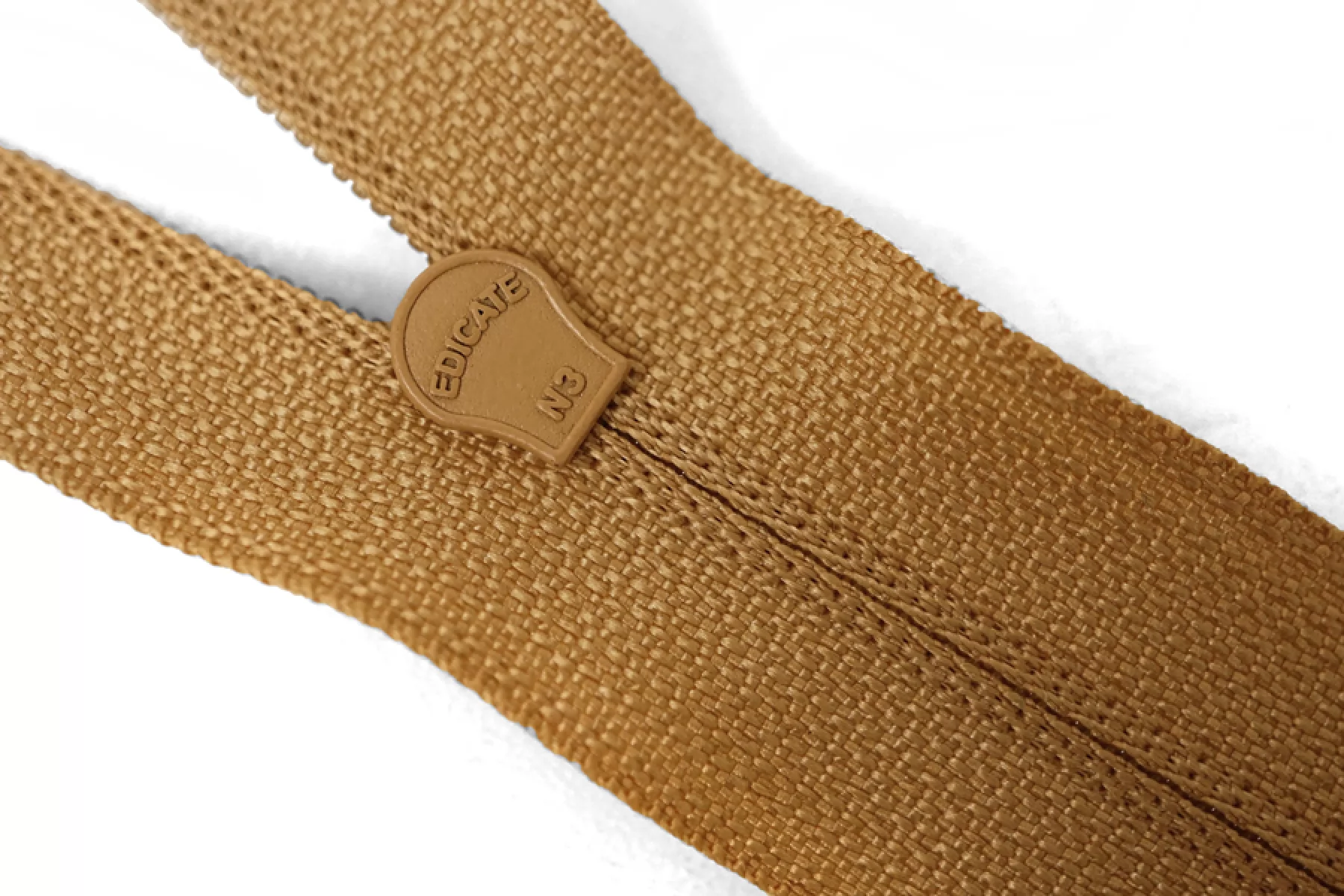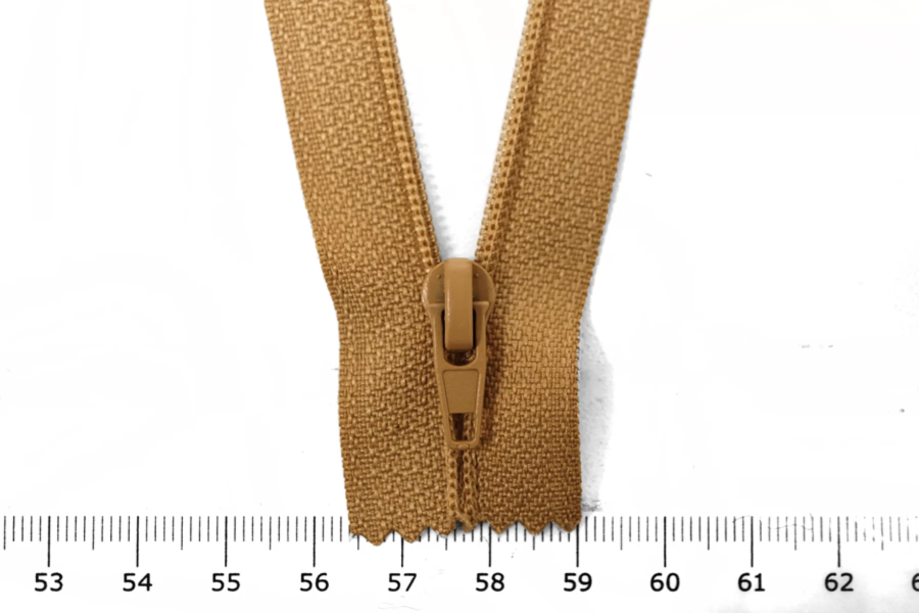 Молния брючная спиральная карамельного оттенка от бренда EDICATE , длина 16 см. Неразъемная. Зубцы пластиковые, слайдер и пуллер - металл. Ширина молнии 2,2 см. Ширина зубцов 4 мм.