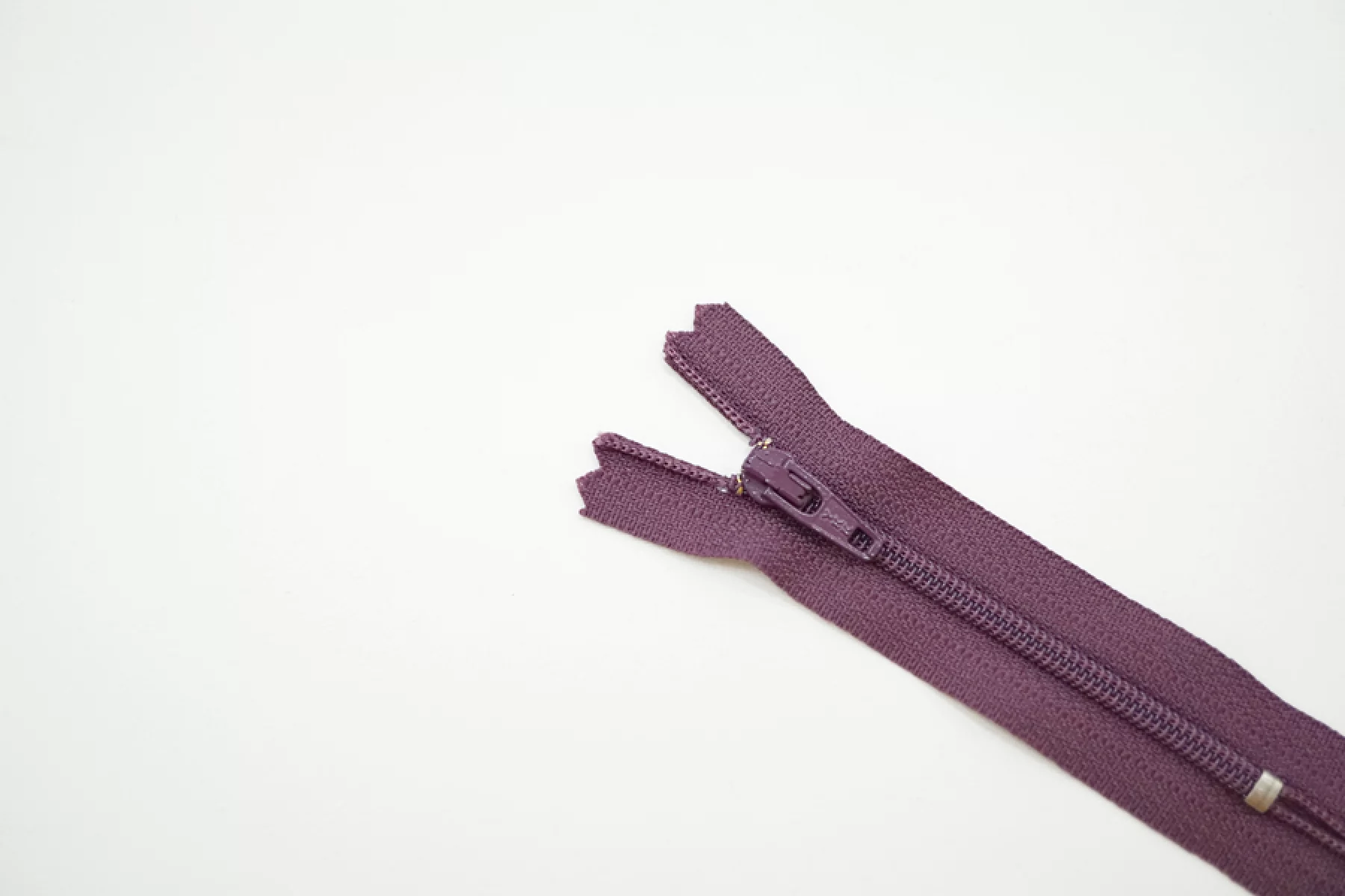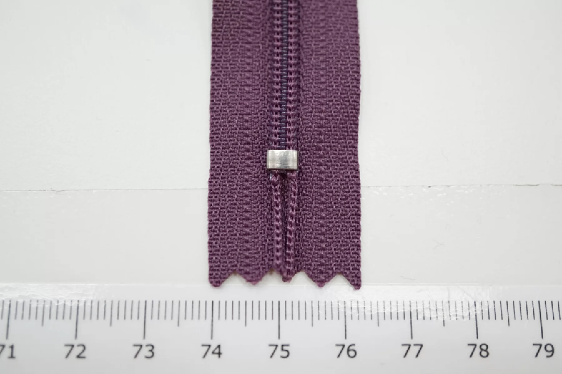 Молния брючная спиральная неразъёмная, однозамковая, цвета баклажан от YKK. Длина 8 см.