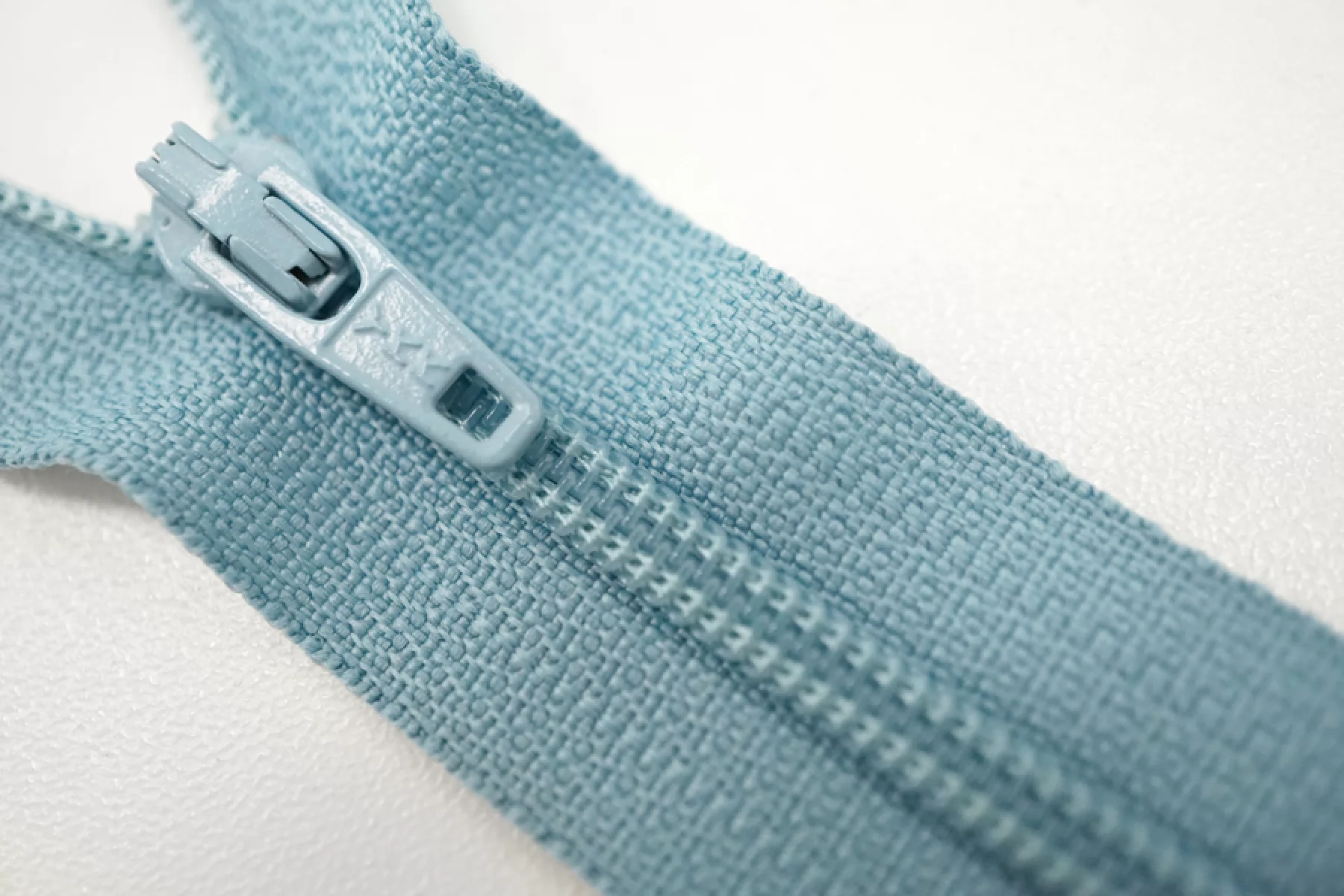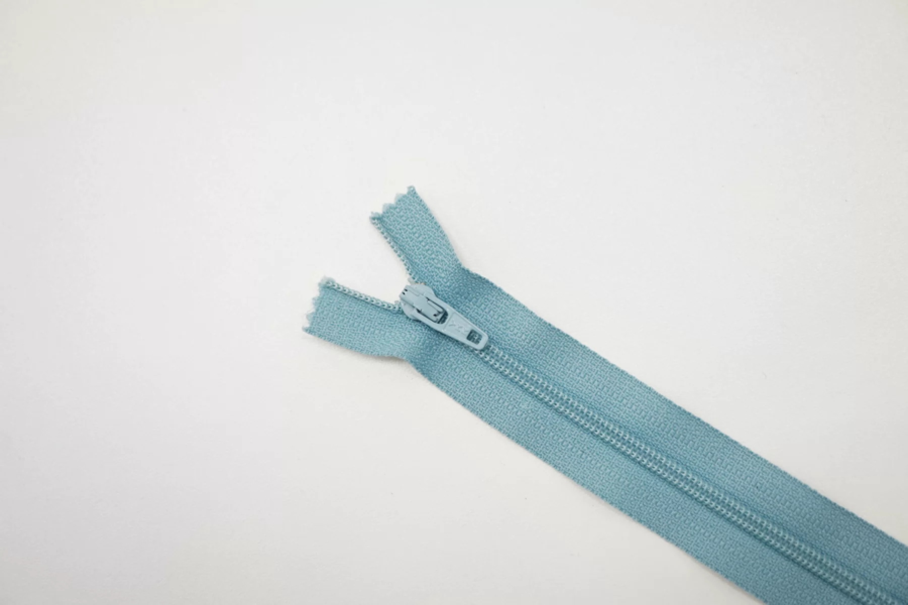 Молния брючная спиральная неразъёмная, однозамковая, голубого цвета от YKK. Длина 28 см.