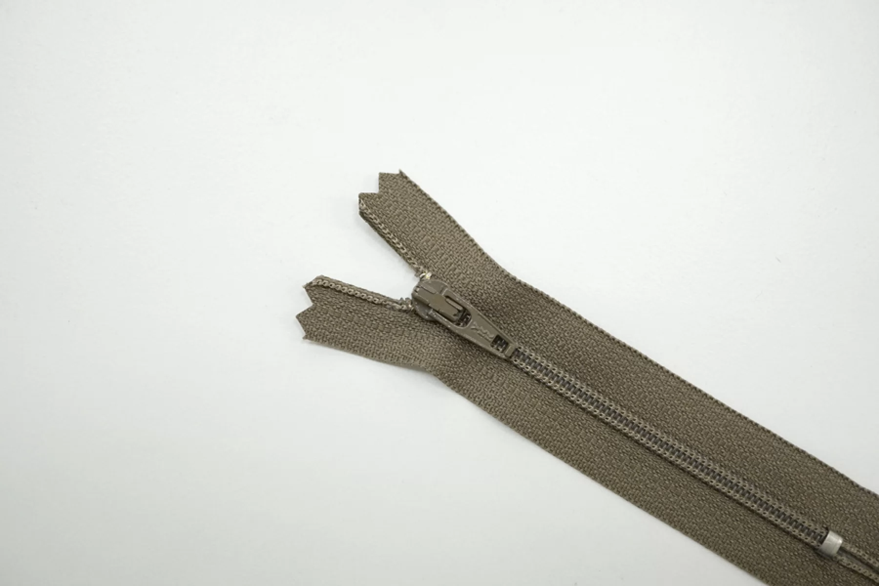 Молния брючная спиральная неразъёмная, однозамковая, цвета хаки от YKK. Длина 9 см.