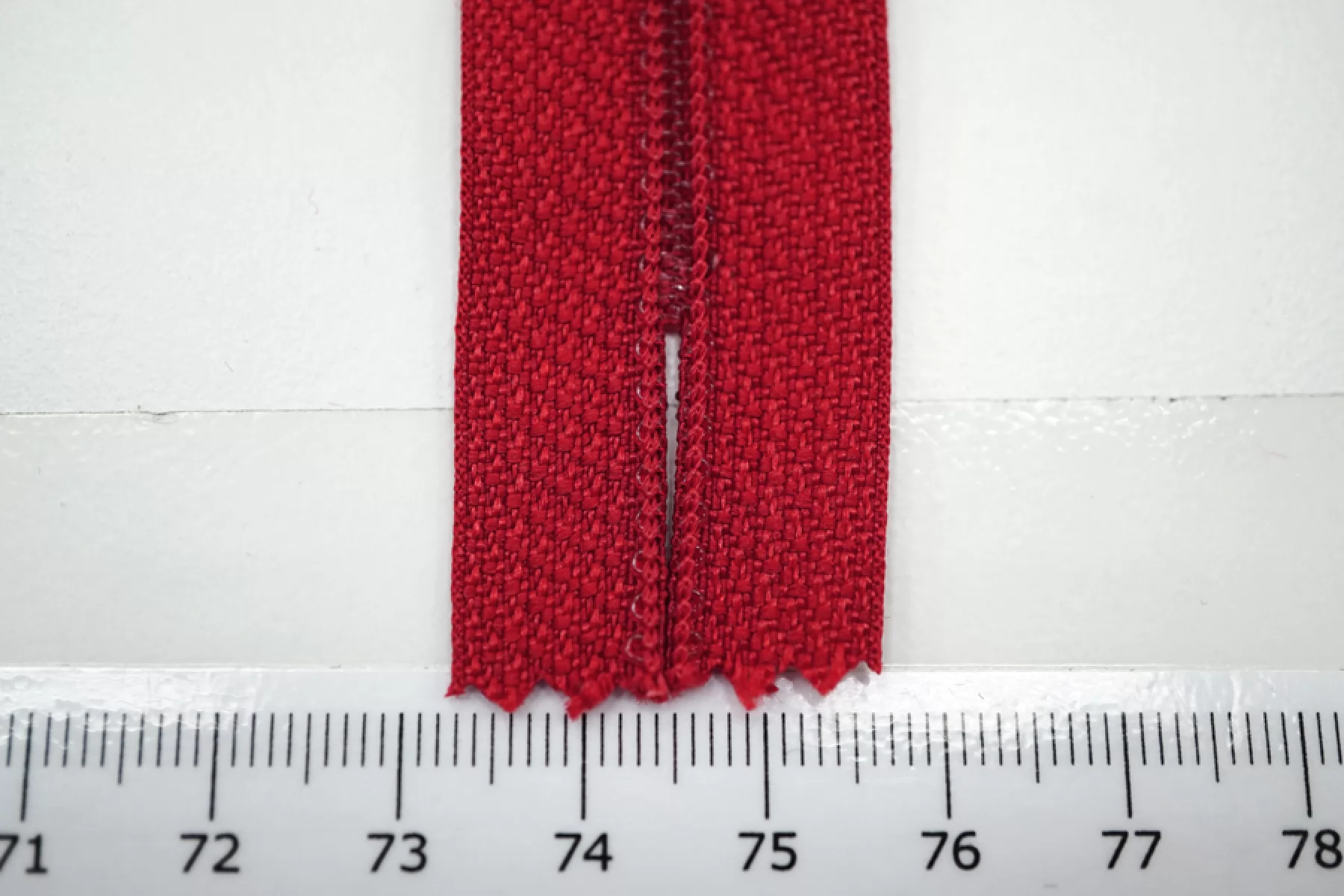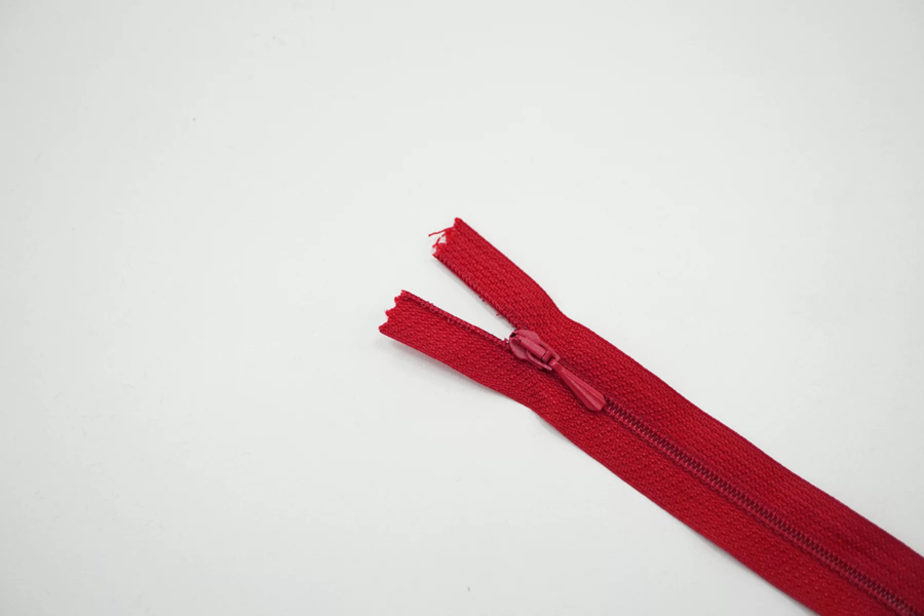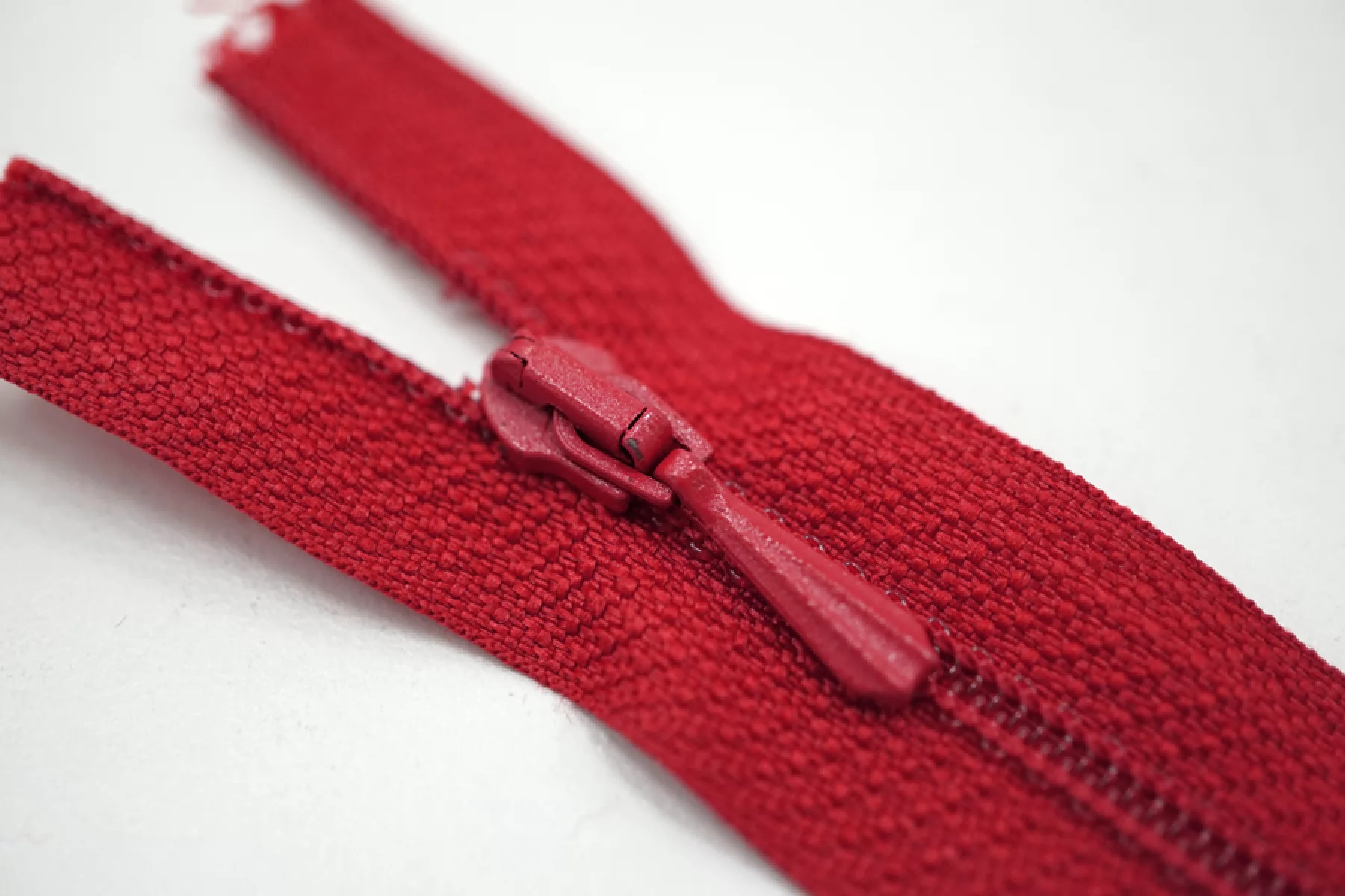 Молния брючная спиральная неразъёмная, однозамковая, красного цвета от Lampo. Длина 11 см.