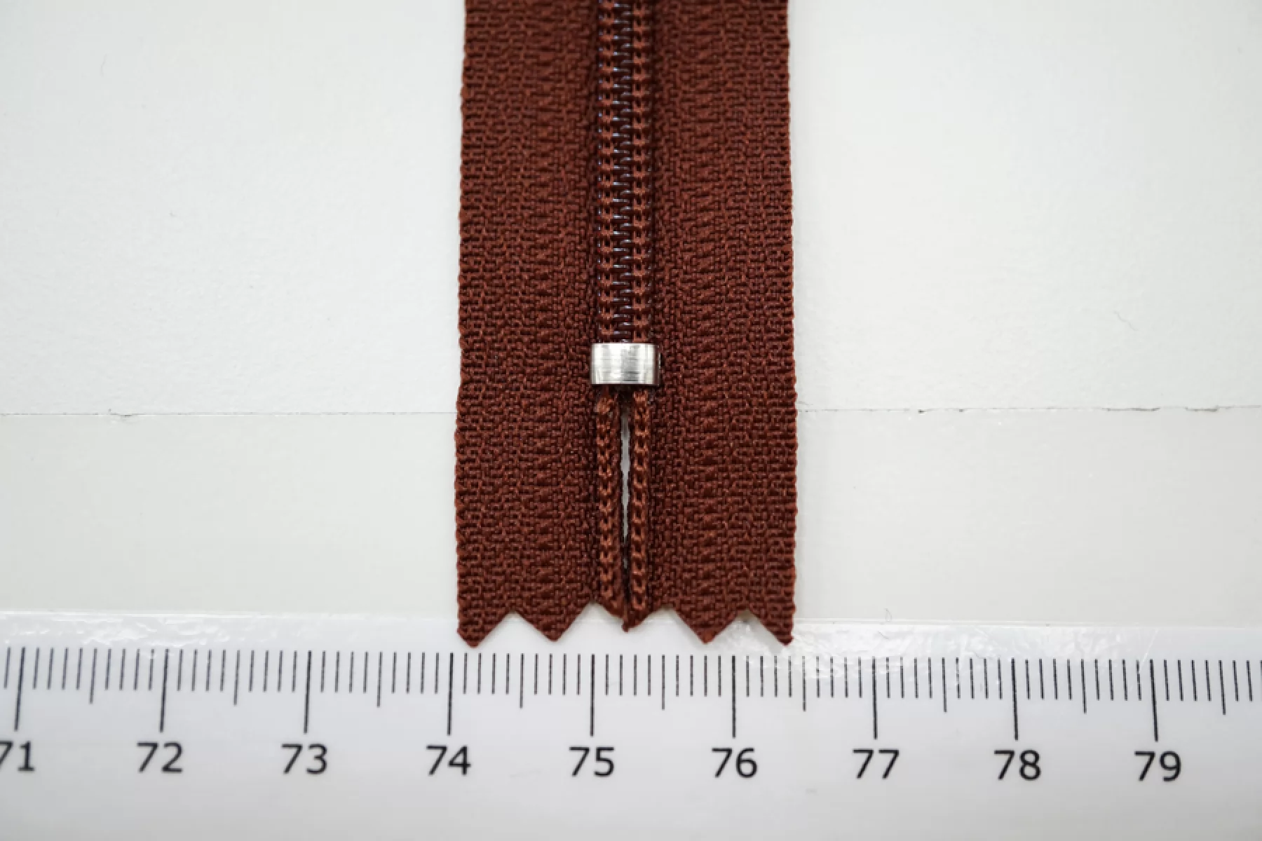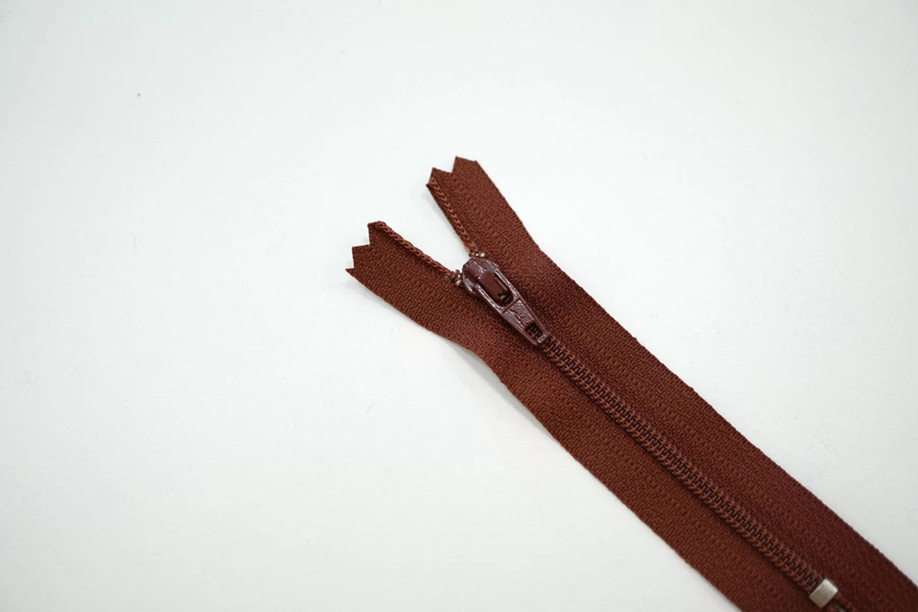 Молния брючная спиральная неразъёмная, однозамковая, красновато-коричневого цвета от YKK. Длина 9 см.