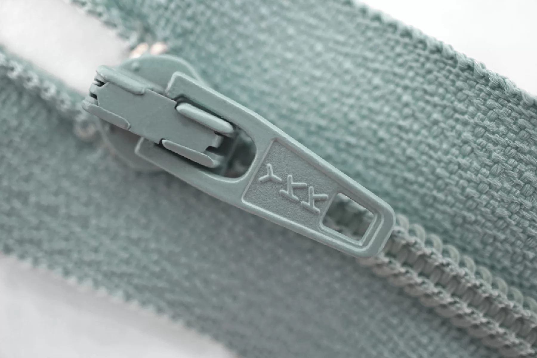 Молния брючная спиральная неразъёмная, однозамковая, небесно-голубого цвета от YKK. Длина 14 см.