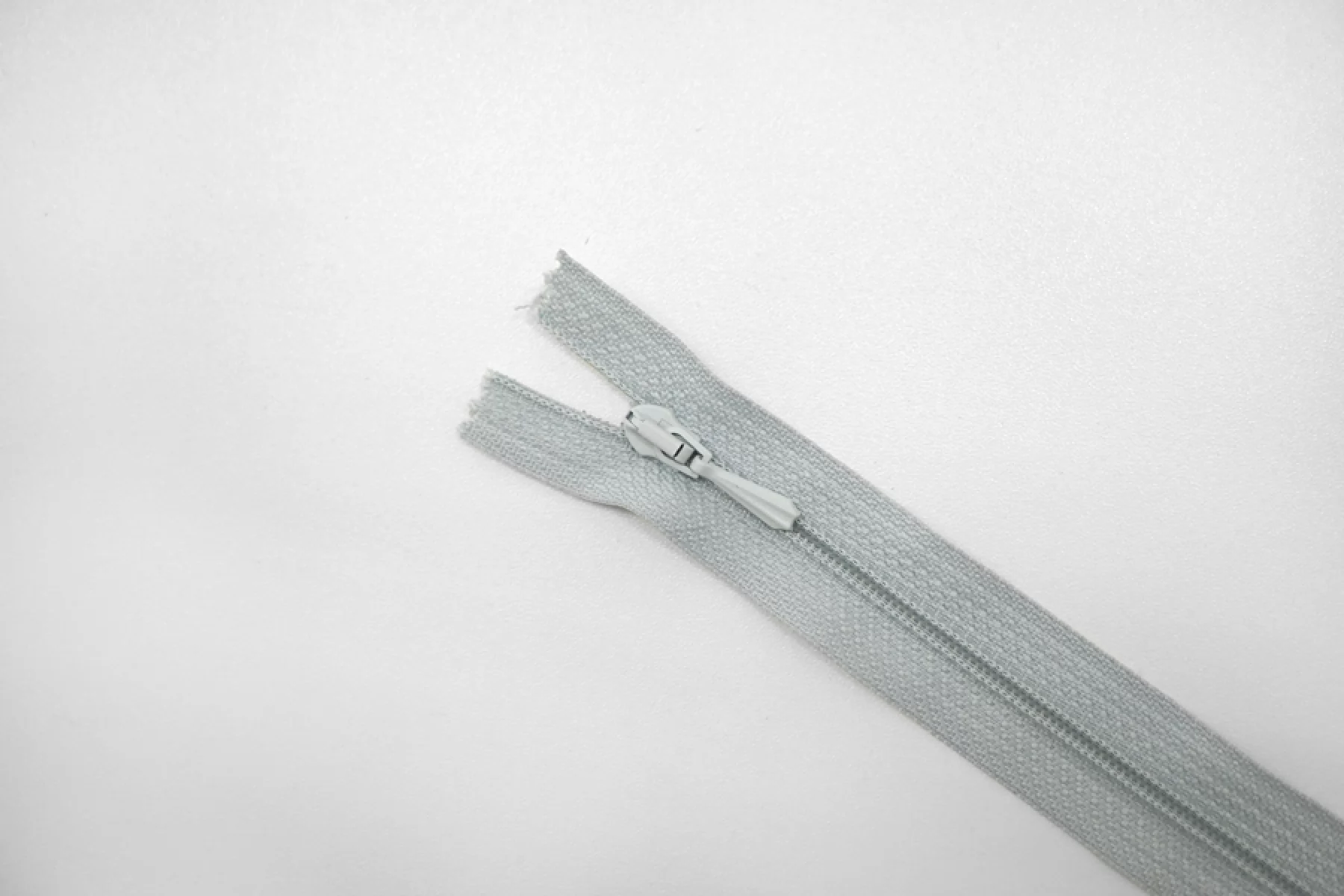Молния брючная спиральная неразъёмная, однозамковая, светло-голубого цвета от Lampo. Длина 15 см.
