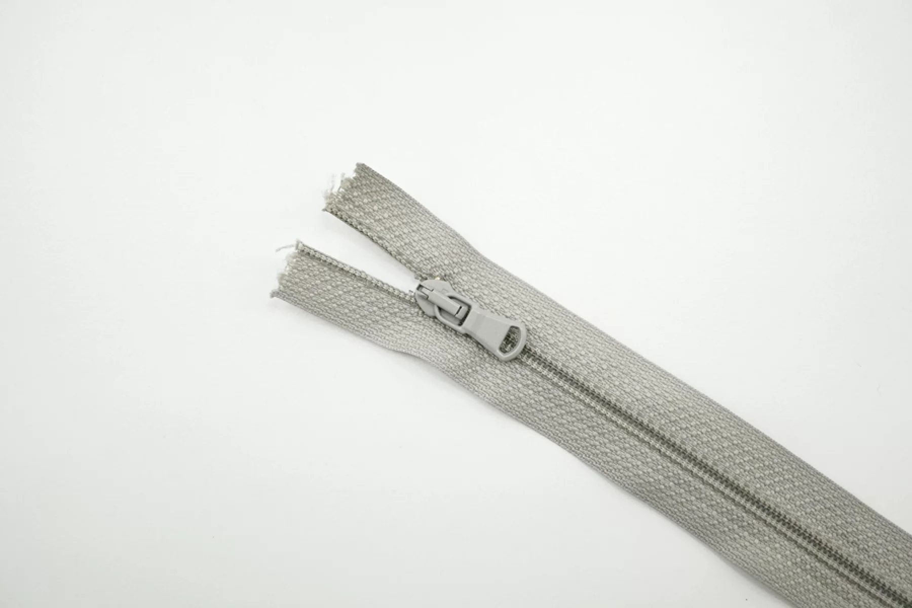 Молния брючная спиральная неразъёмная, однозамковая, теплого серого цвета от Lampo. Длина 15,5 см.