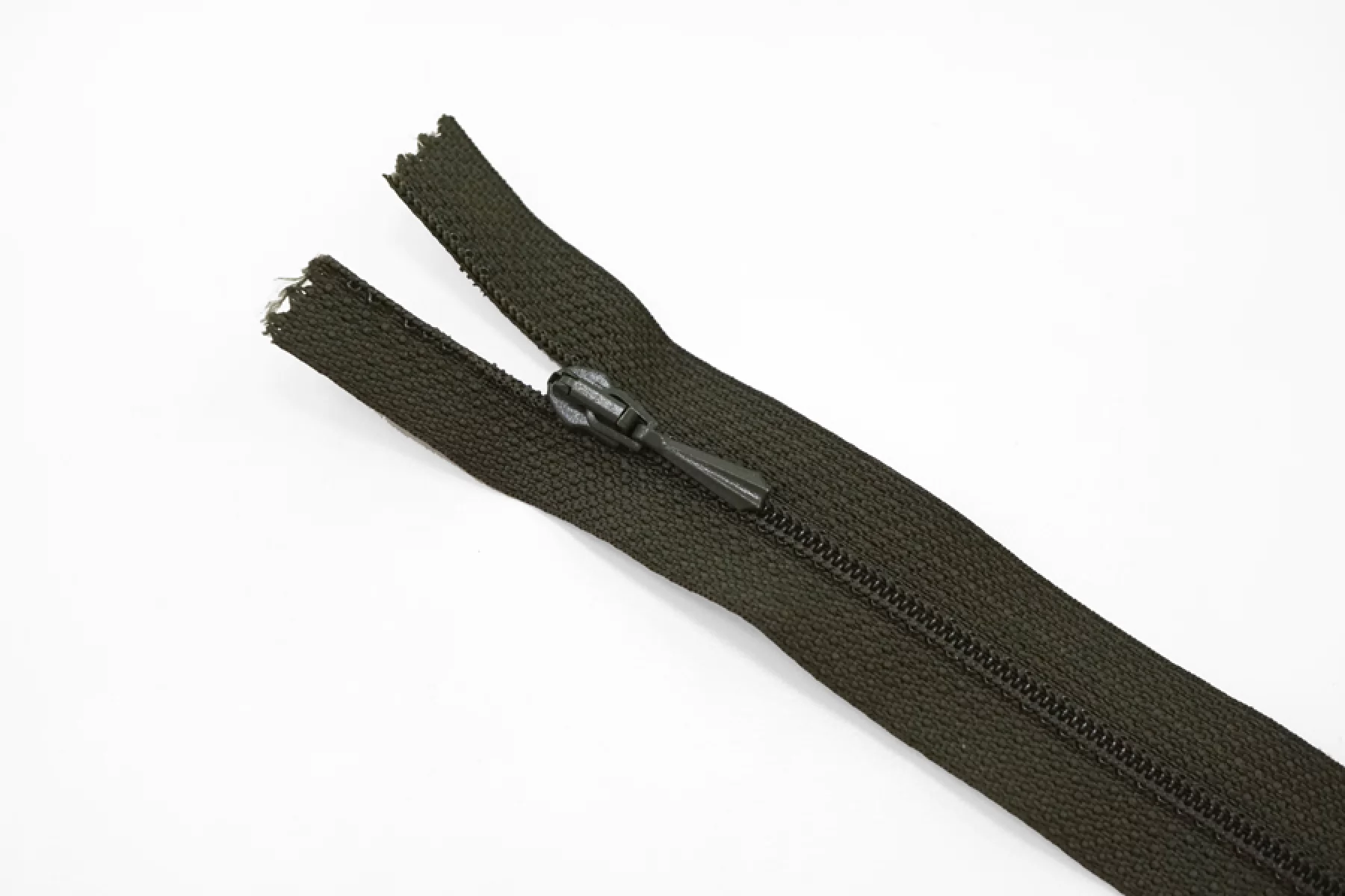 Брючная молния тёмно-зеленого цвета от YKK, длина 16 см.