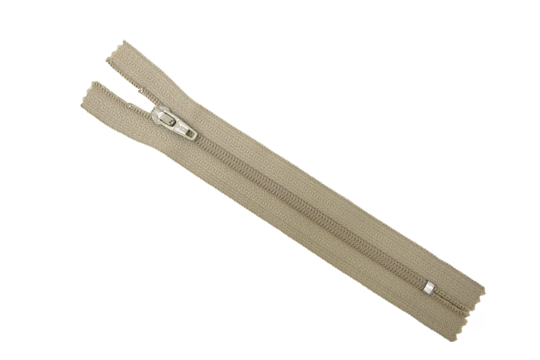 Молния брючная потайная неразъёмная, однозамковая, бежевого цвета, от YKK. Зубцы пластиковые. Пулер металл. Длина 14см. Ширина 2,4см. Ширина зубцов 4мм.