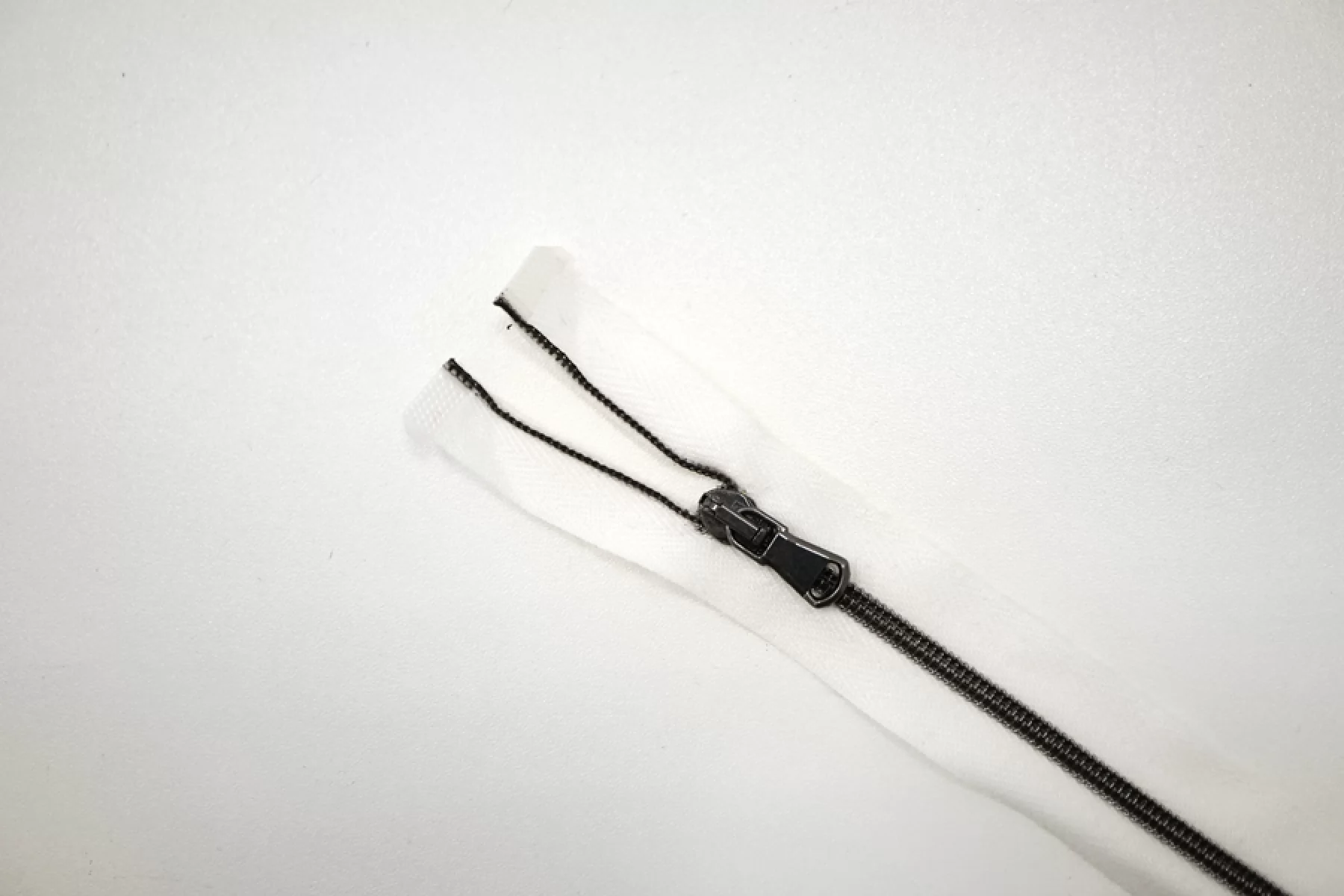 Молния декоративная спиральная разъёмная, двухзамковая, белого цвета с зубцами и пуллером цвета никеля от Lampo. Длина 35 см.