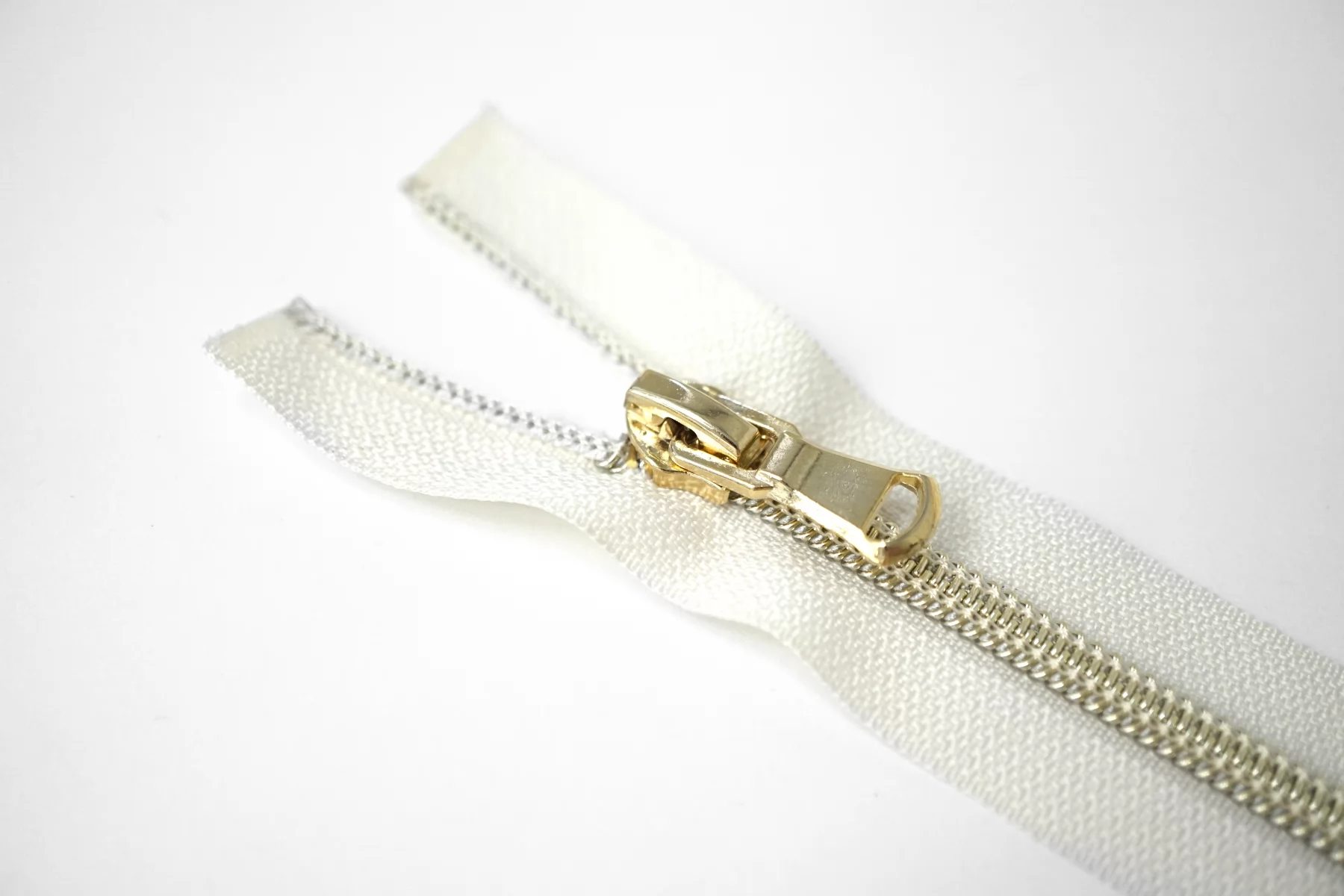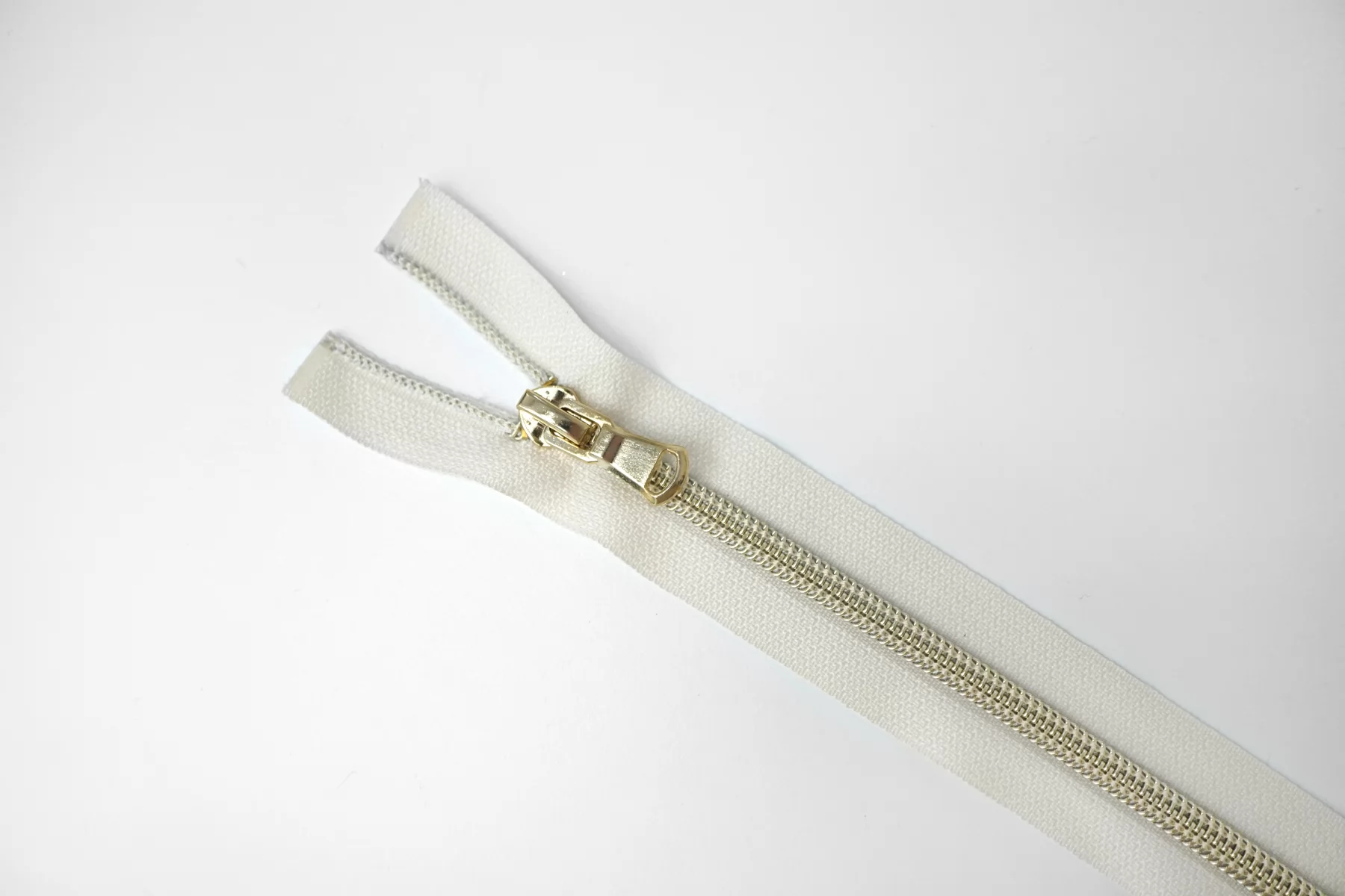 Молния декоративная спиральная разъёмная, однозамковая, молочного цвета, пуллера, слайдер и зубцов серебристый, Lampo. Длина 55 см.