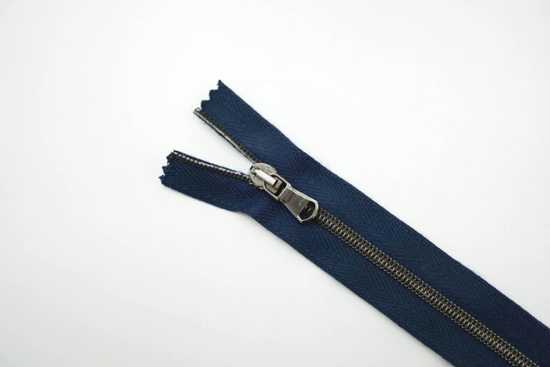Молния декоративная спиральная неразъёмная, однозамковая, темно-синего цвета, зубцы цвета никель от Lampo. Длина 10 см.