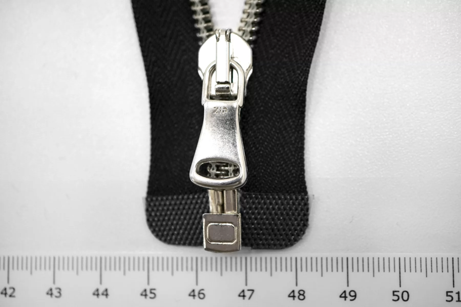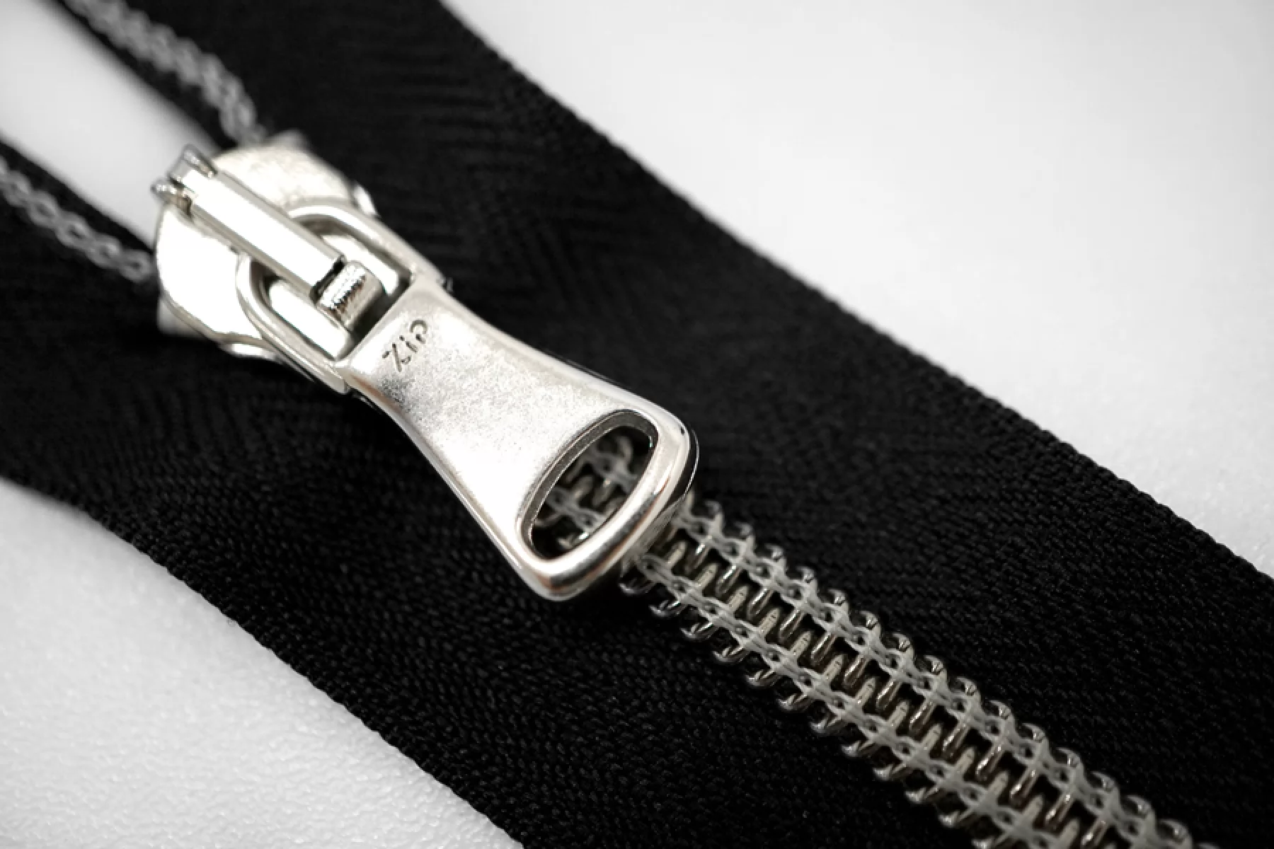 Молния декоративная спиральная разъёмная, однозамковая, черного цвета, зубцы с напылением под никель, и зубцы обрамляет серая нить, Zip. Длина 60 см.