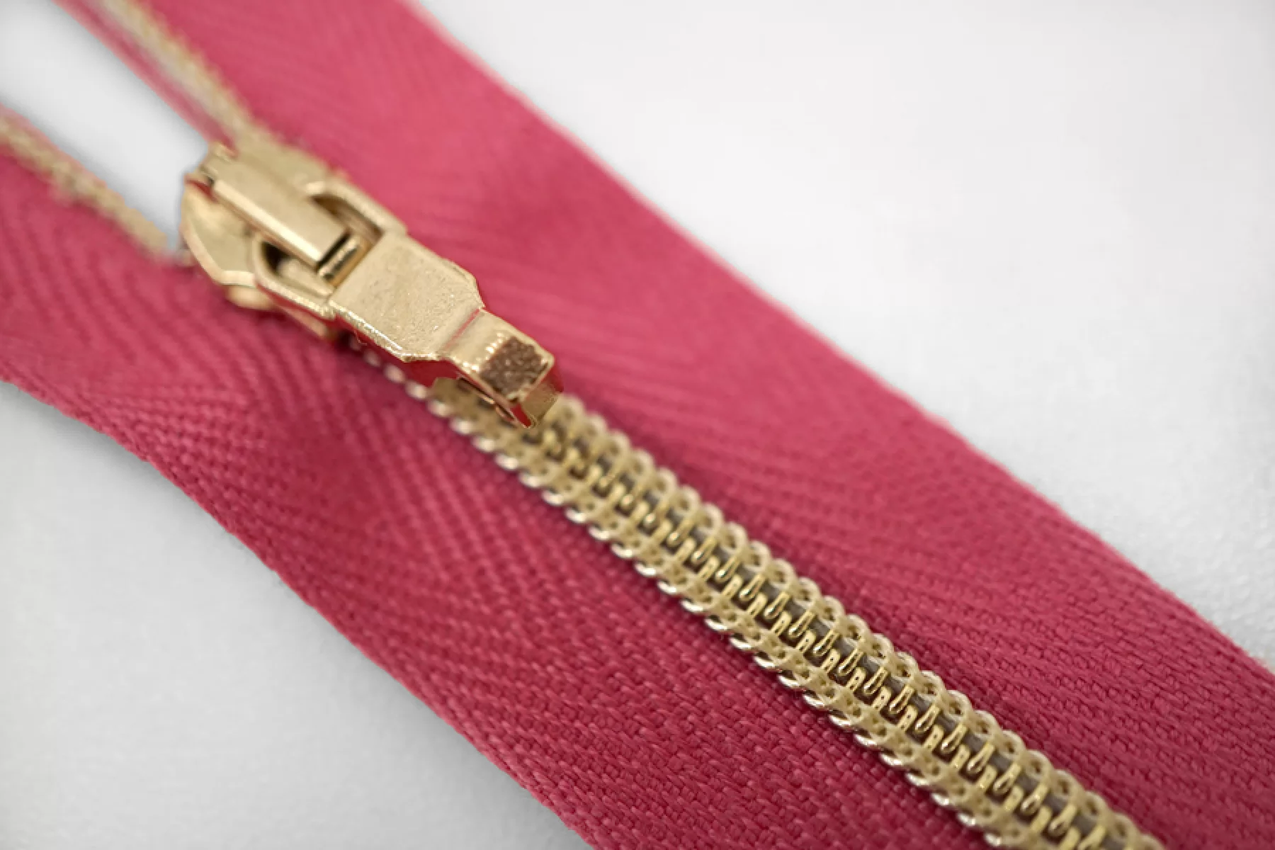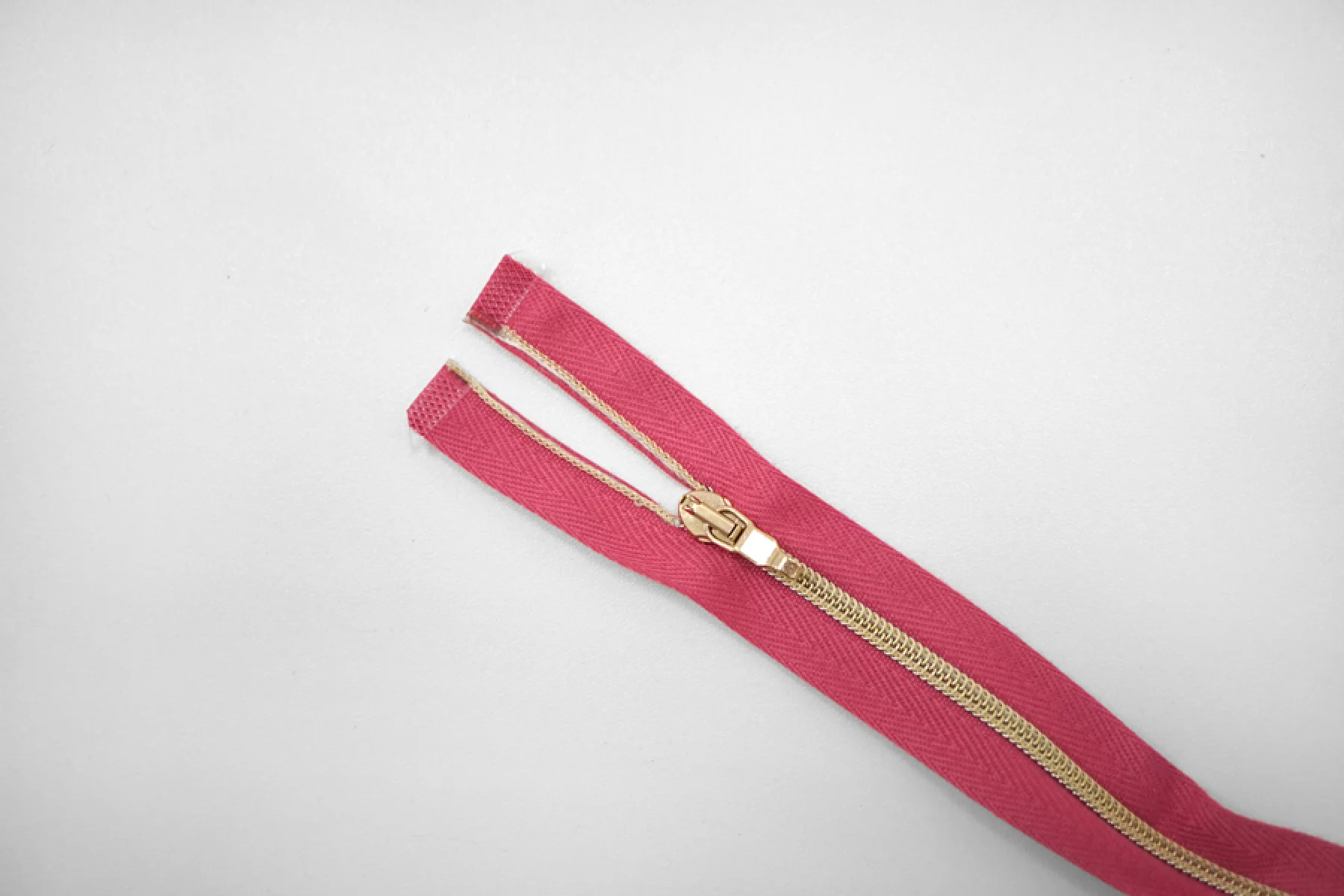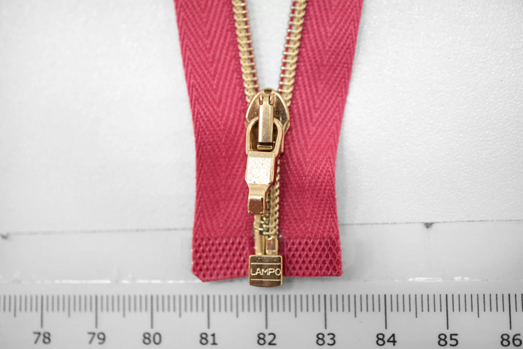 Молния декоративная спиральная разъёмная, однозамковая, розового цвета, пуллер в виде карабина, слайдер и зубцы золотистые от Lampo. Длина 62 см.