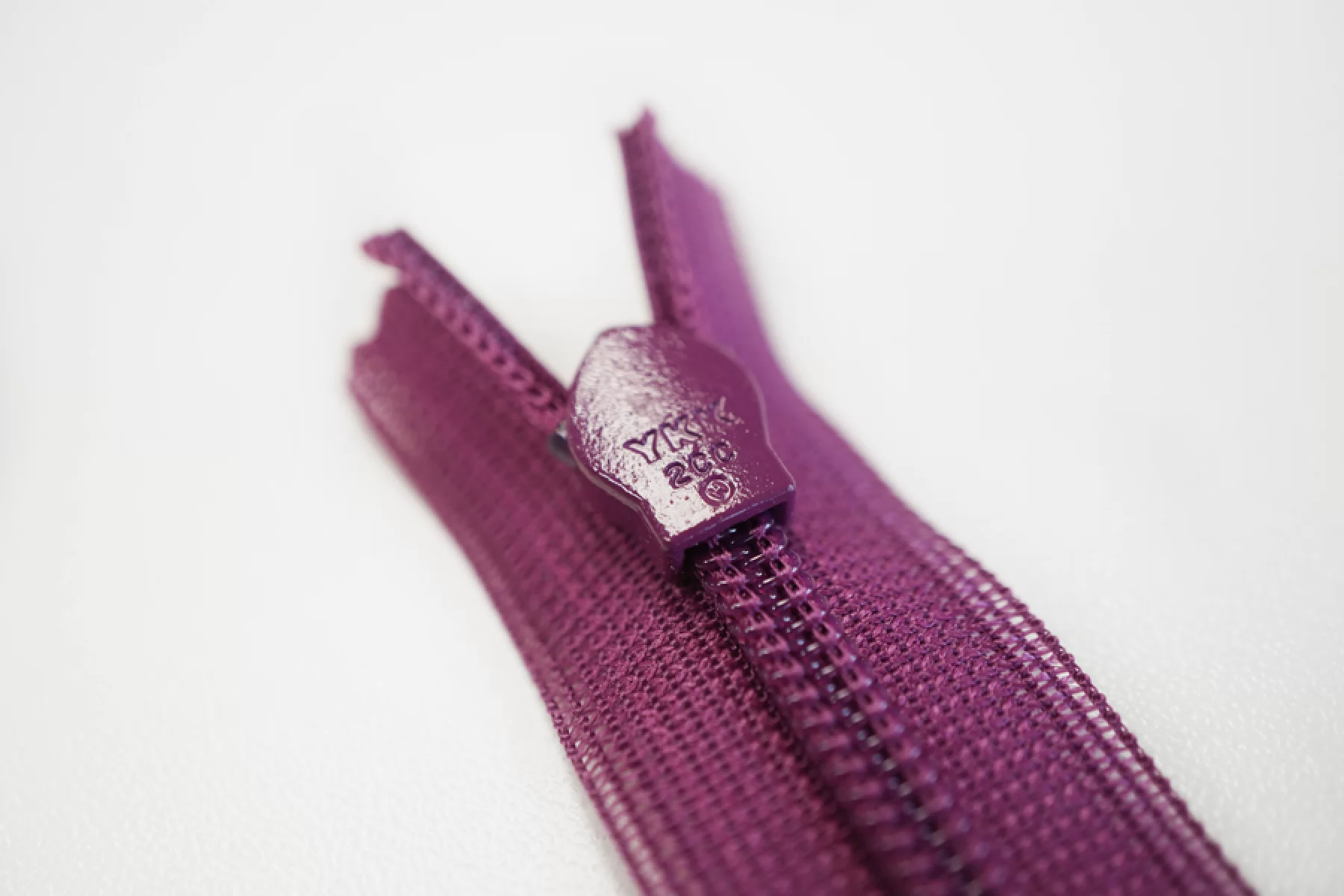 Потайная молния фиолетового цвета от YKK, длина 60 см.