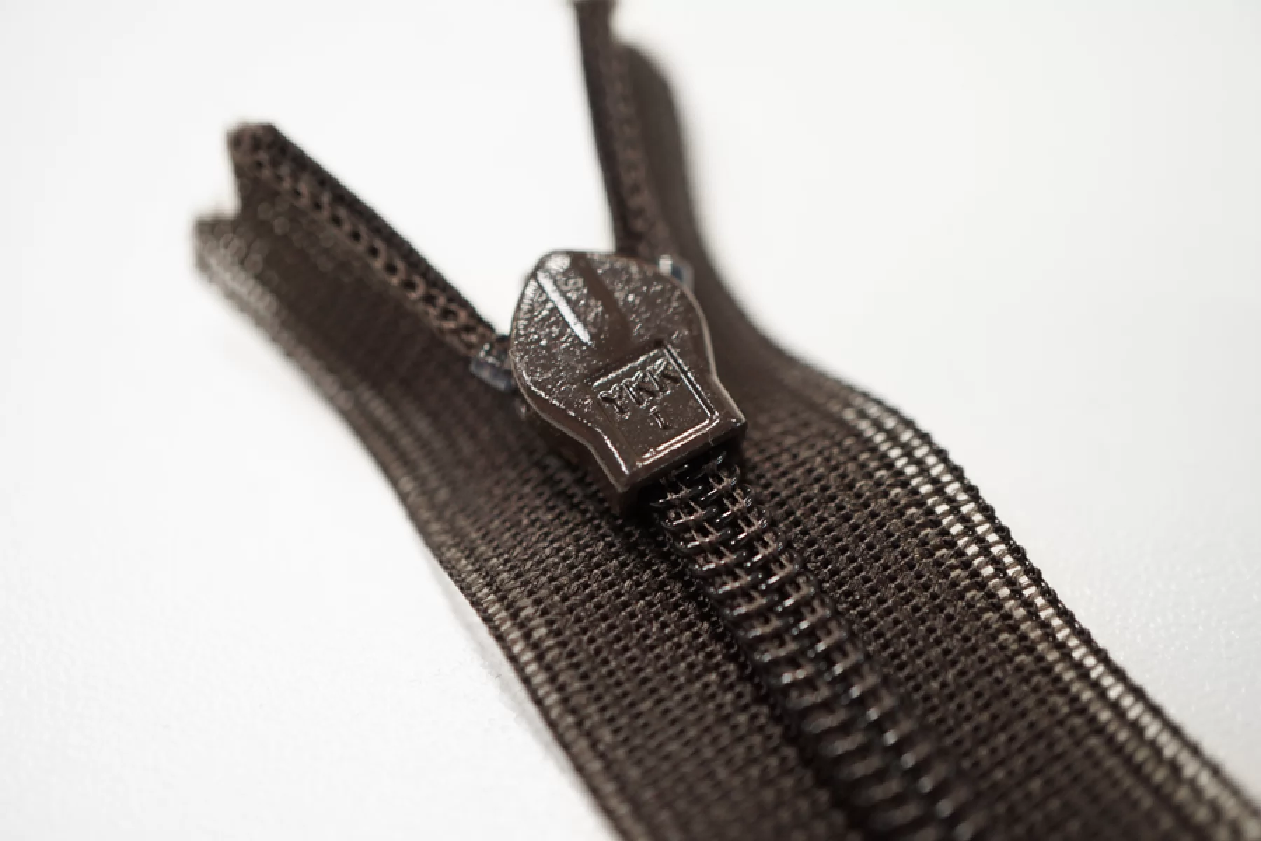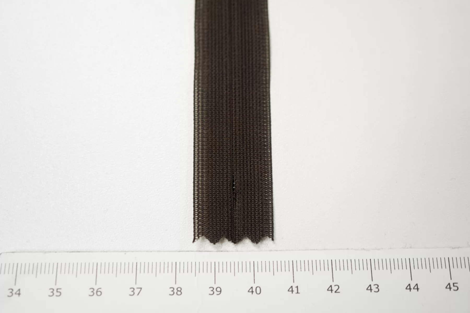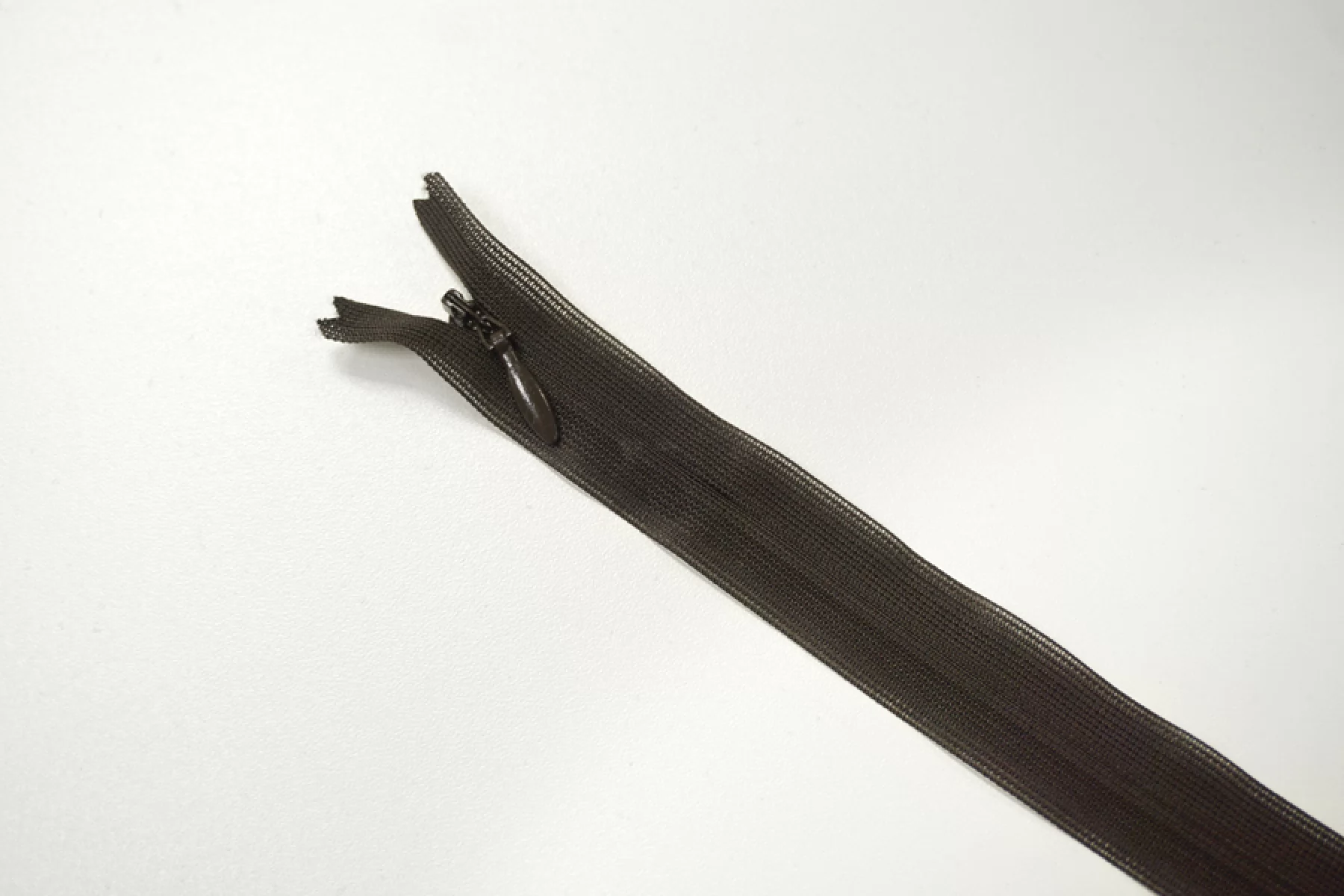 Потайная молния очень темно-коричневого цвета, длина 45 см.