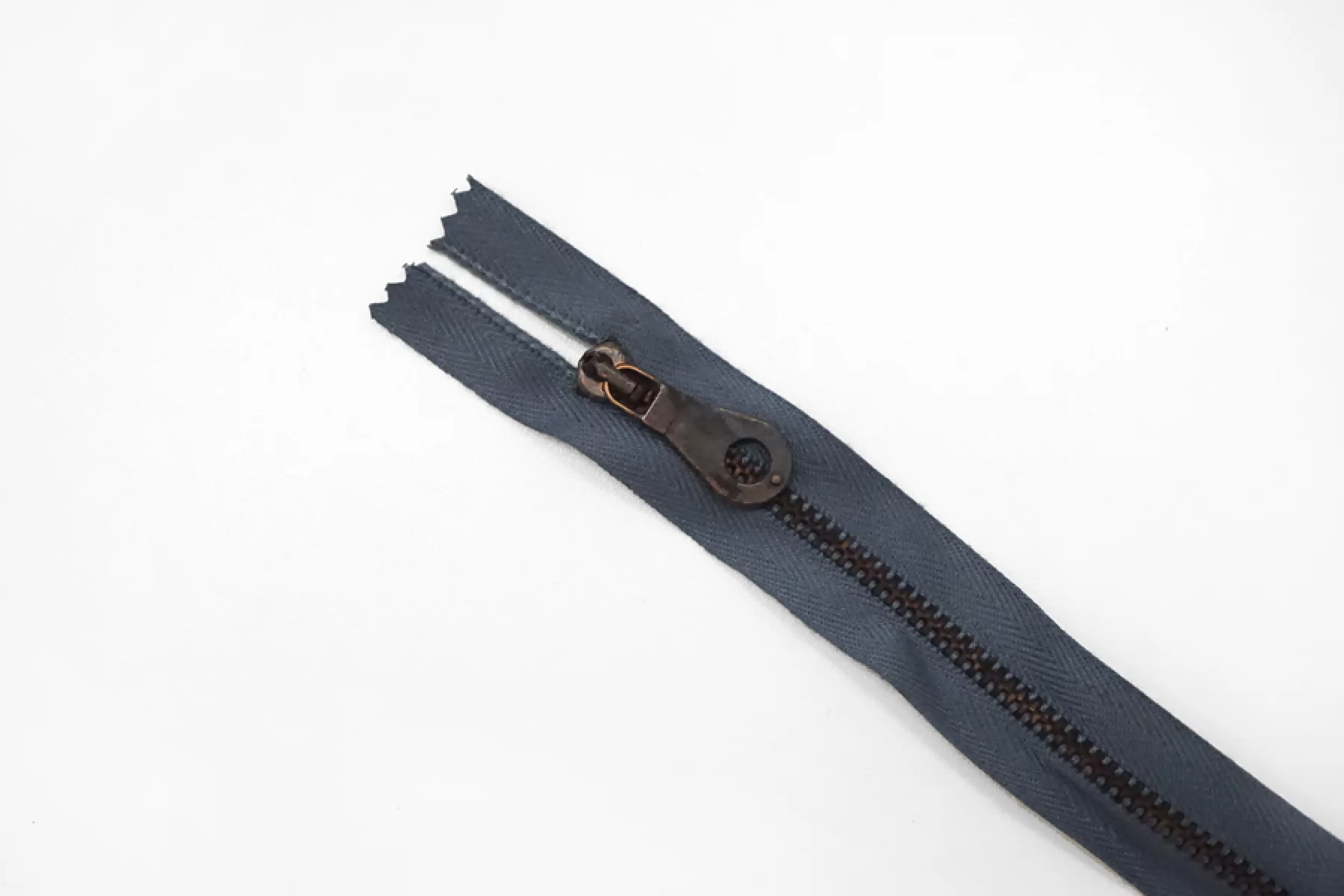 Молния металлическая от "Lampo" неразъемная, серовато-синего цвета, цвет слайдера , пуллера и цвет зубцов бронзовый. Длина 26 см. Внимание, все металлически элементы могут пачкаться.