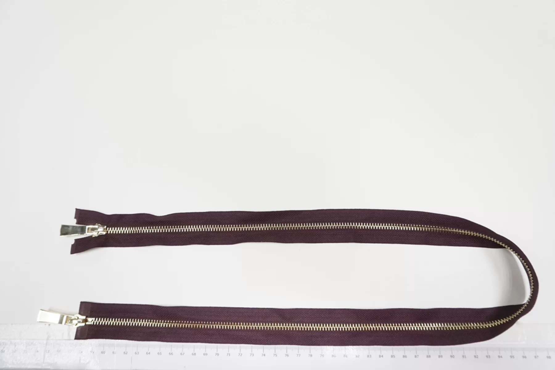 Молния металлическая двухзамковая разъёмная цвета махагон с золотыми зубцами. Длина молнии 80 см, ширина зубьев 6 мм, вес 57 г. Подходит для пальто, курток и пуховиков.