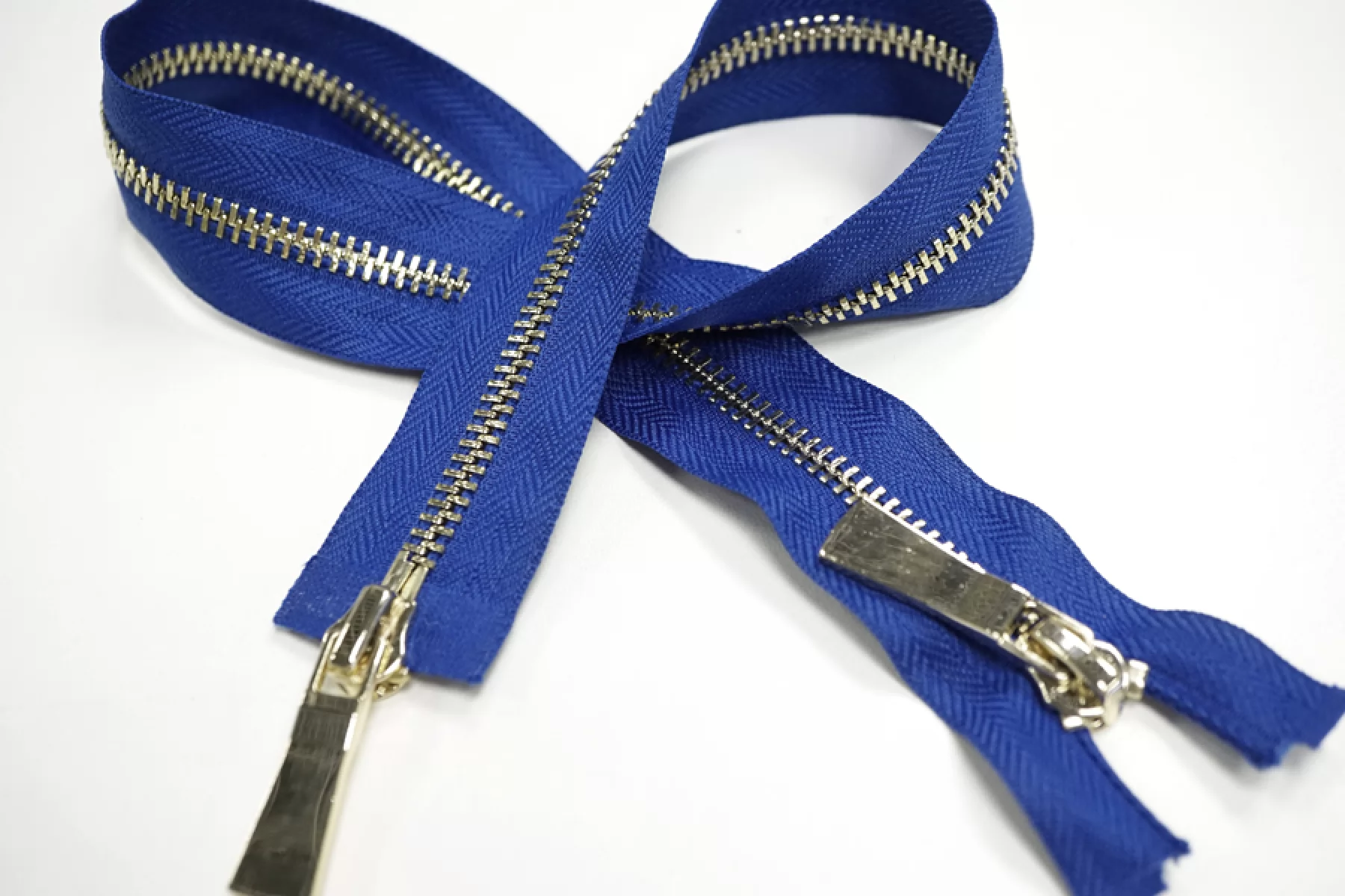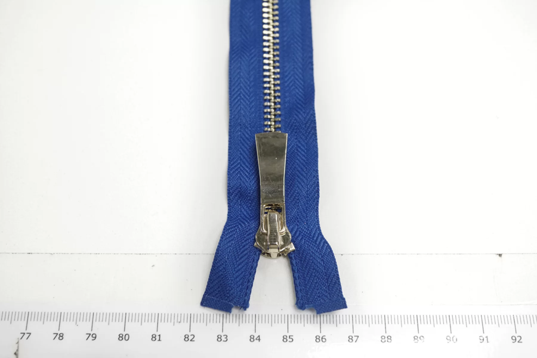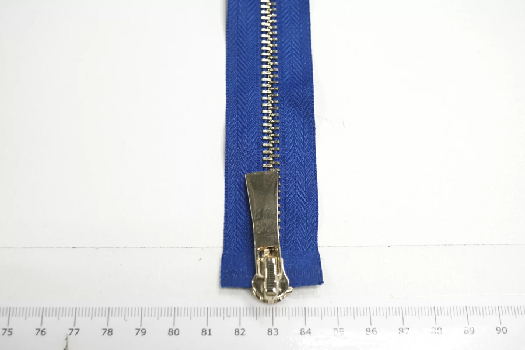 Молния металлическая двухзамковая разъёмная синего цвета с золотыми зубцами. Длина молнии 54 см, ширина зубьев 6 мм, вес 46 г. Подходит для бомберов, курток и пуховиков.