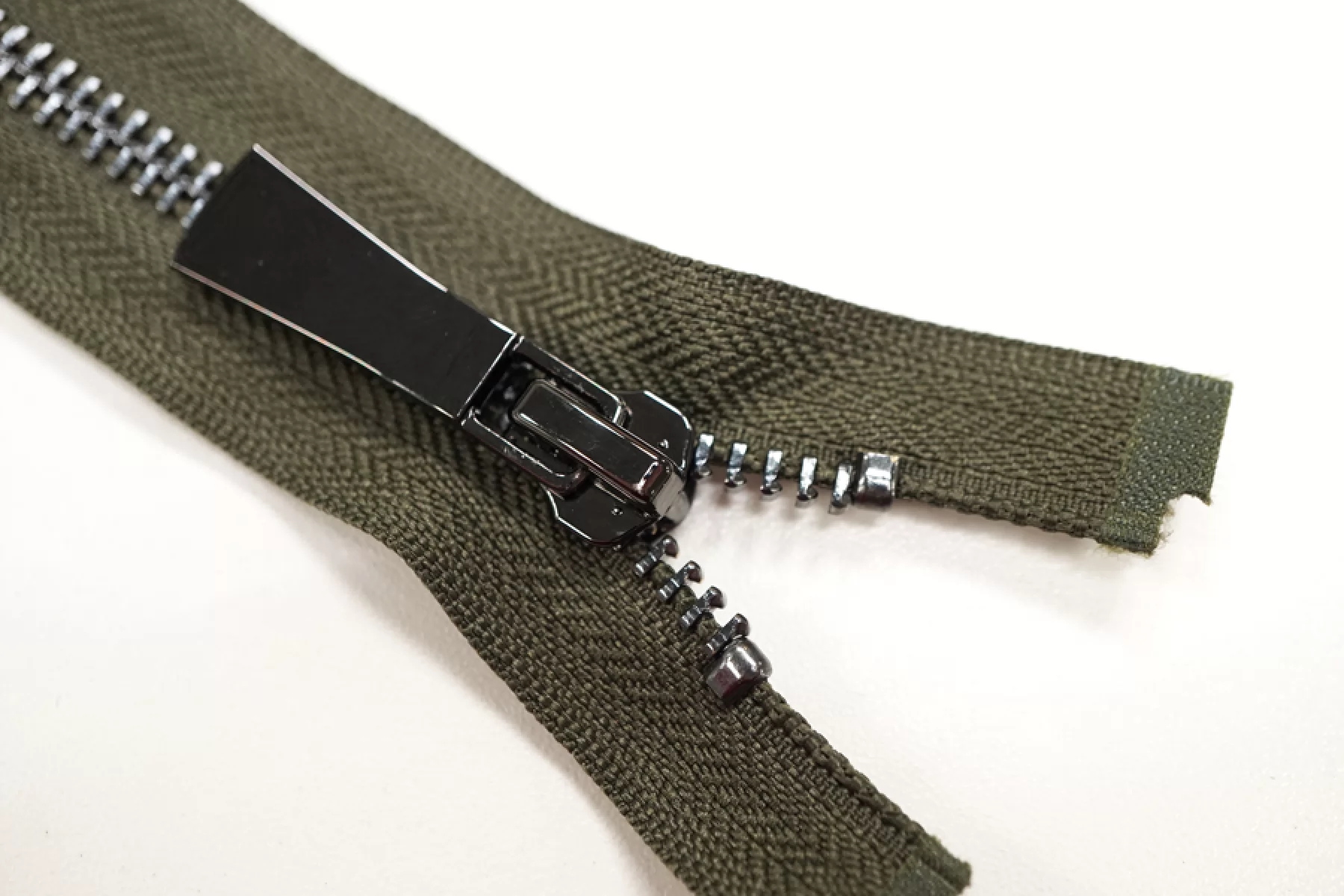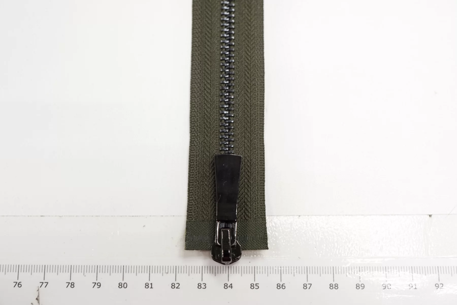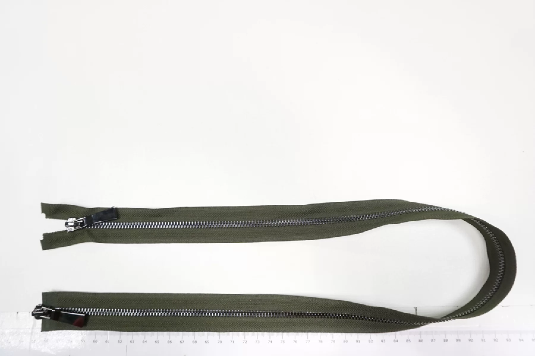 Молния металлическая двухзамковая разъёмная зеленого цвета с зубцами под никель. Длина молнии 75 см, ширина зубьев 5 мм, вес 55 г. Подходит для пальто, курток и пуховиков.