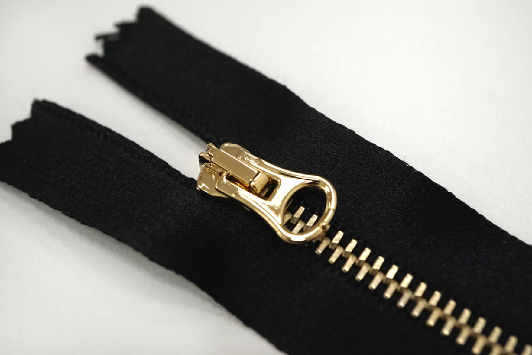Молния от "Lampo" неразъемная, атласная, черная, цвет зубцов золотистый. Длина 12 см.