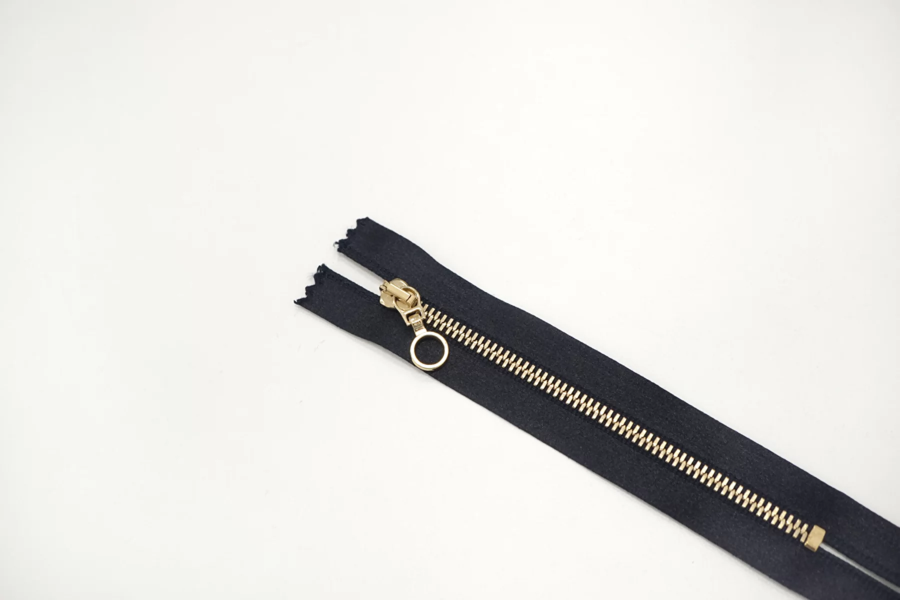 Молния от "Lampo" неразъемная, атласная, темно-синяя, цвет зубцов золотистый. Длина 12 см.